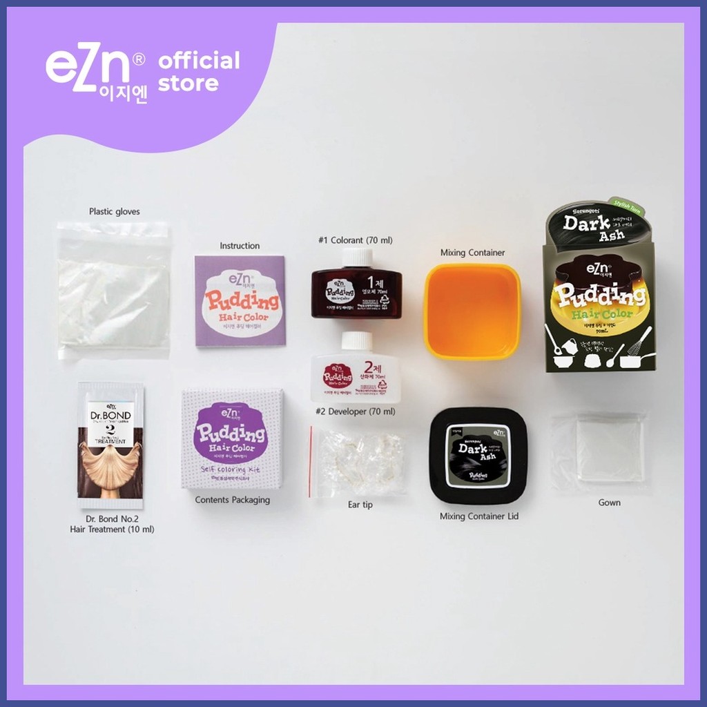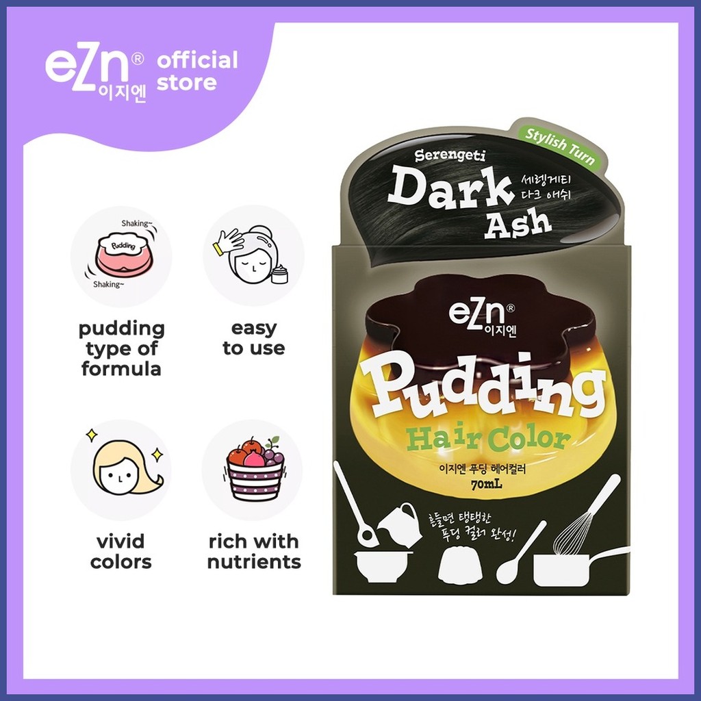 ❥ ◸ eZn Pudding Hair Color Serengeti Dark Ash (70 ml) - Self Hair Dye DIY Kit Made in Korea