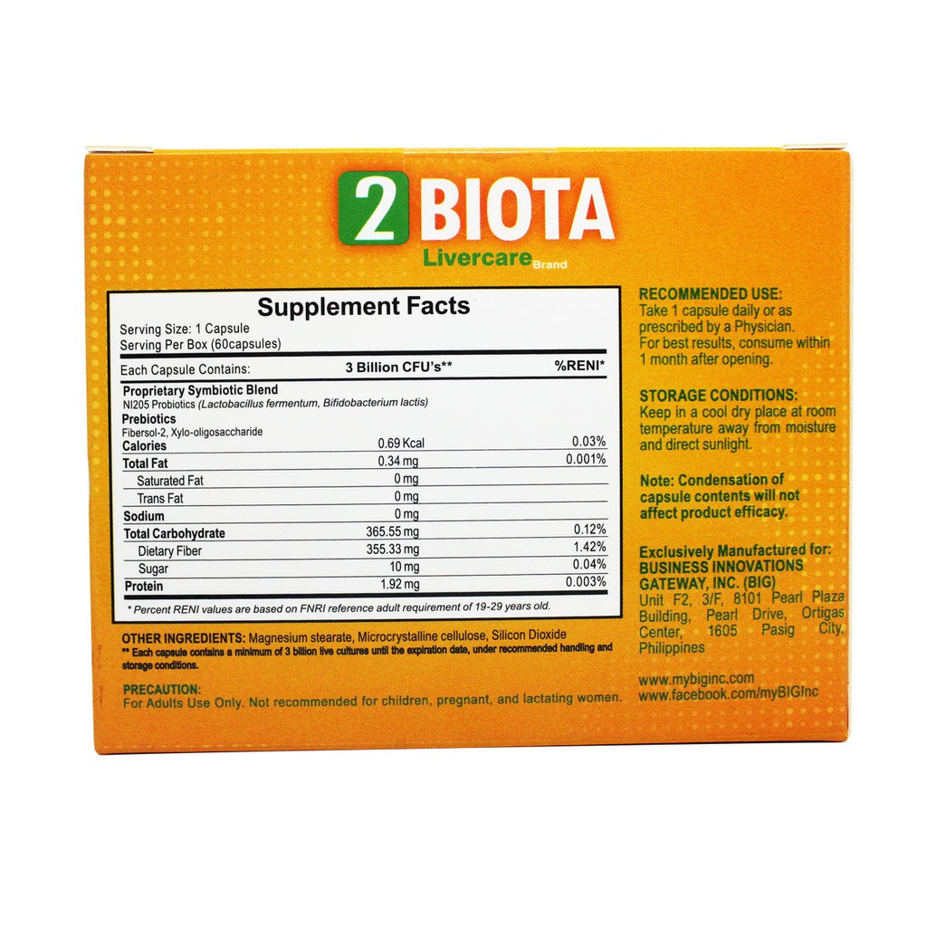 2 Biota Liver Supplement Probiotics - 60 Capsules With 2 Diverse Strains and 3 Billion CFUs