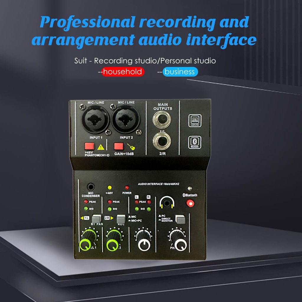 2 Channel Mixer USB Audio Interface Mini Mixer 48V Phantom Power with 3.55m Jack Interface Computer