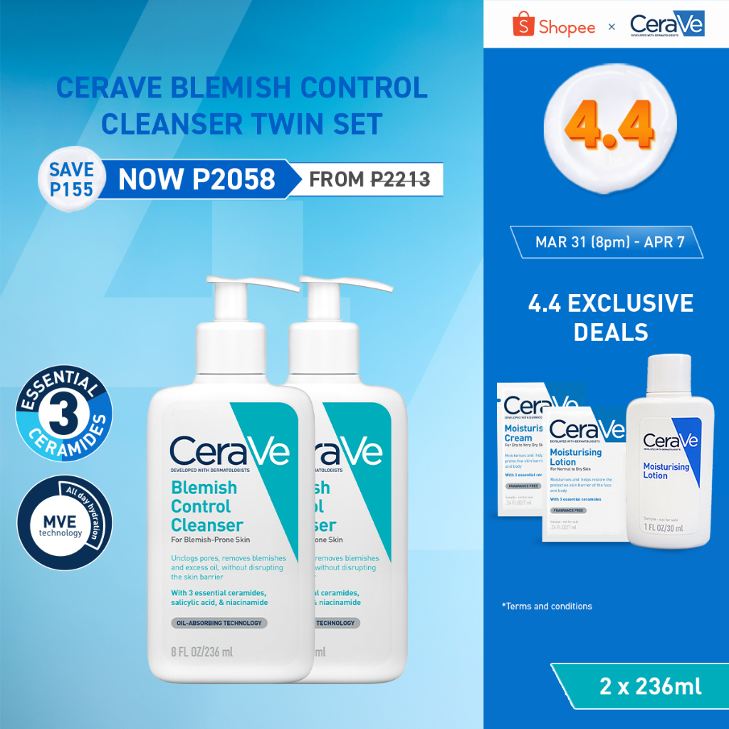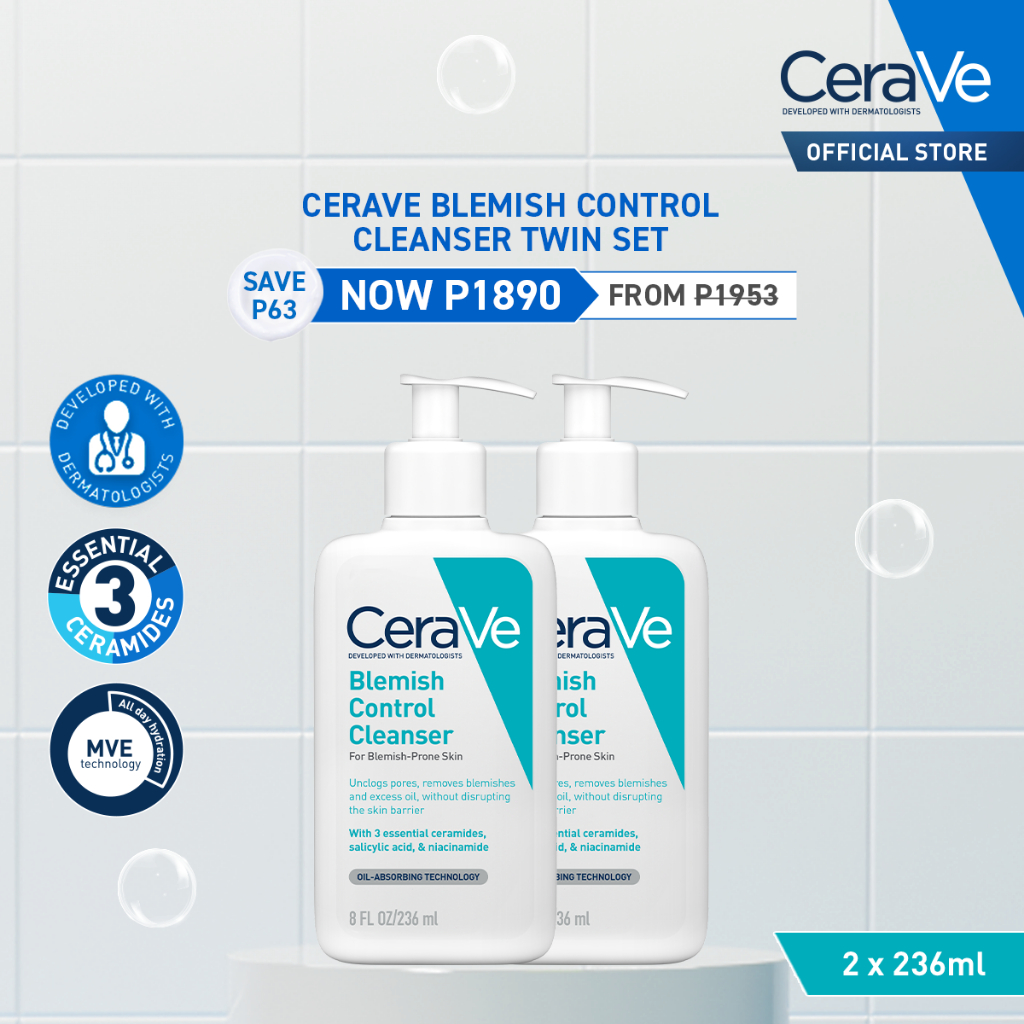 CeraVe Blemish Control Cleanser Twin Set | for blemish-prone skin (236ml) - Bundle of 2