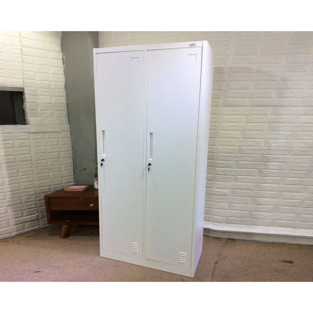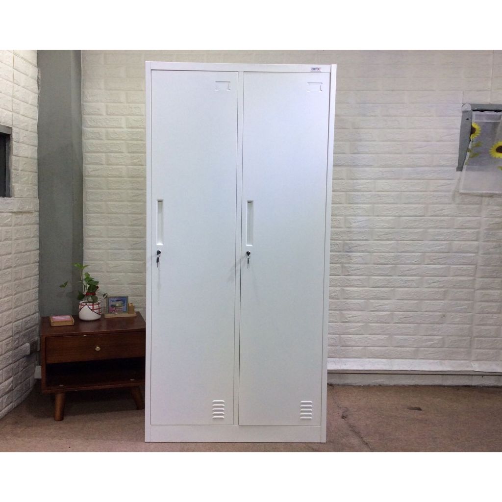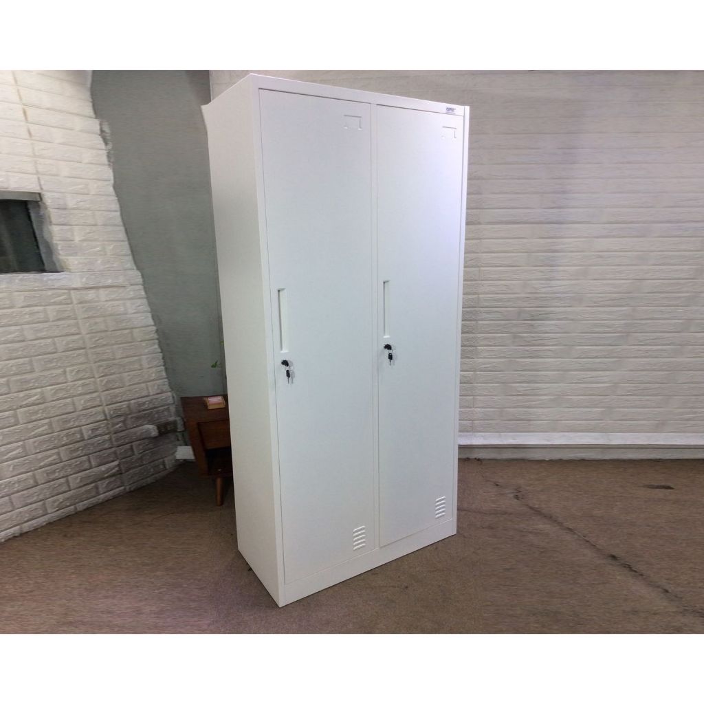 2 Door Steel Clothes Locker with Top & Bottom Shelf Cabinet (White)