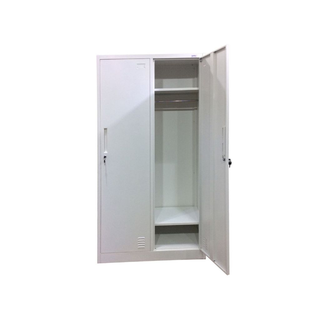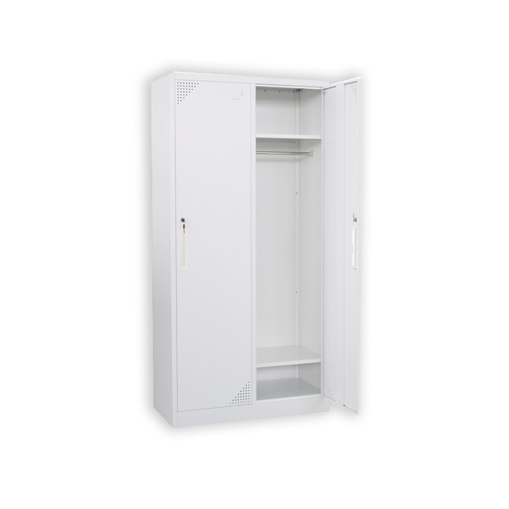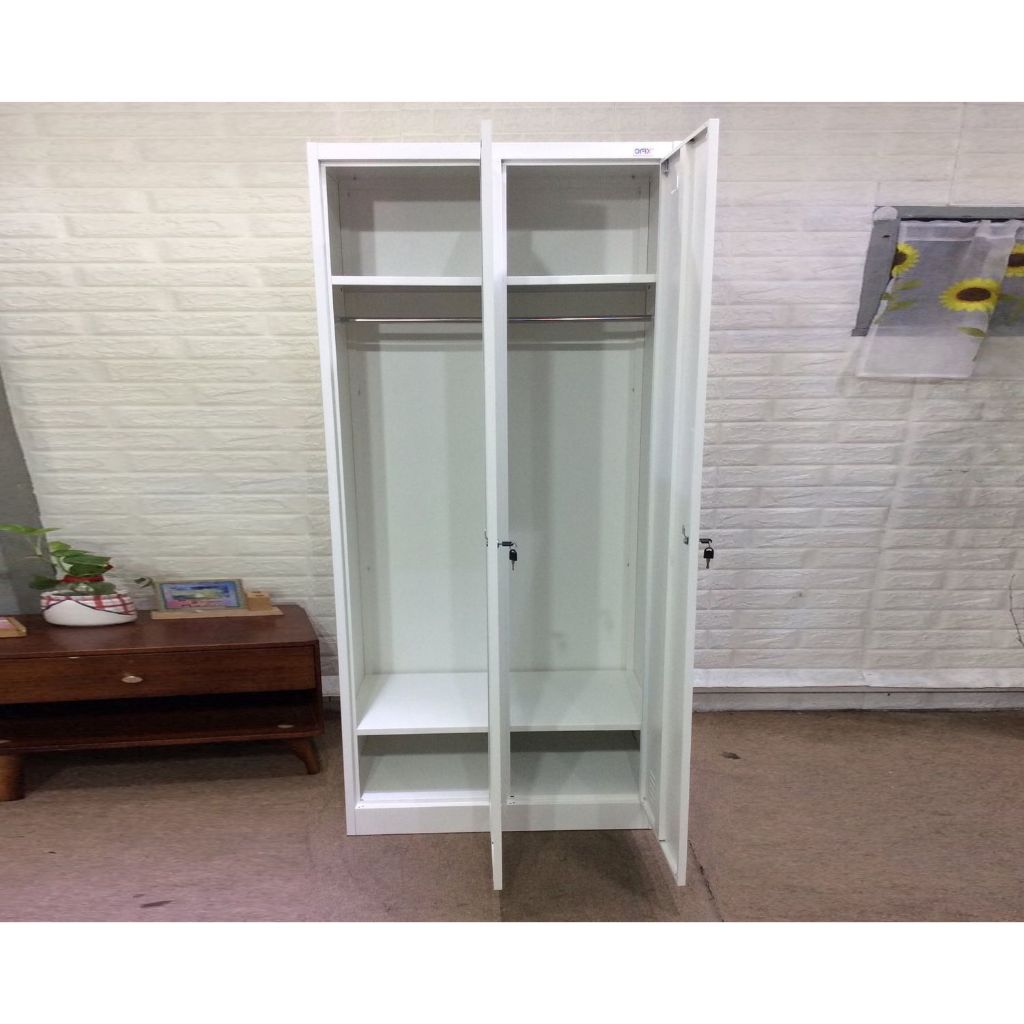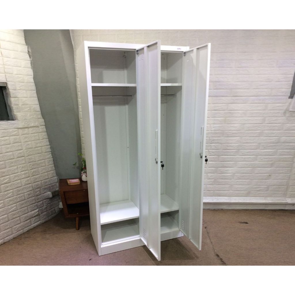 2 Door Steel Clothes Locker with Top & Bottom Shelf Cabinet (White)