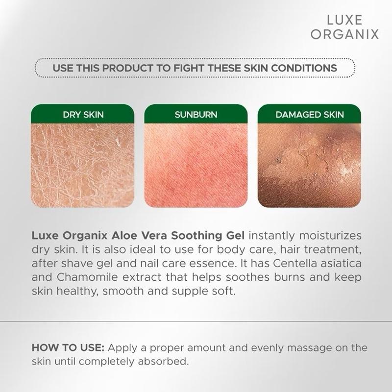 LUXE ORGANIX Aloe Vera Soothing Gel Moisturizer Arginine Chamomile Extract Centella Asiatica 100m