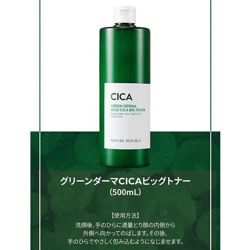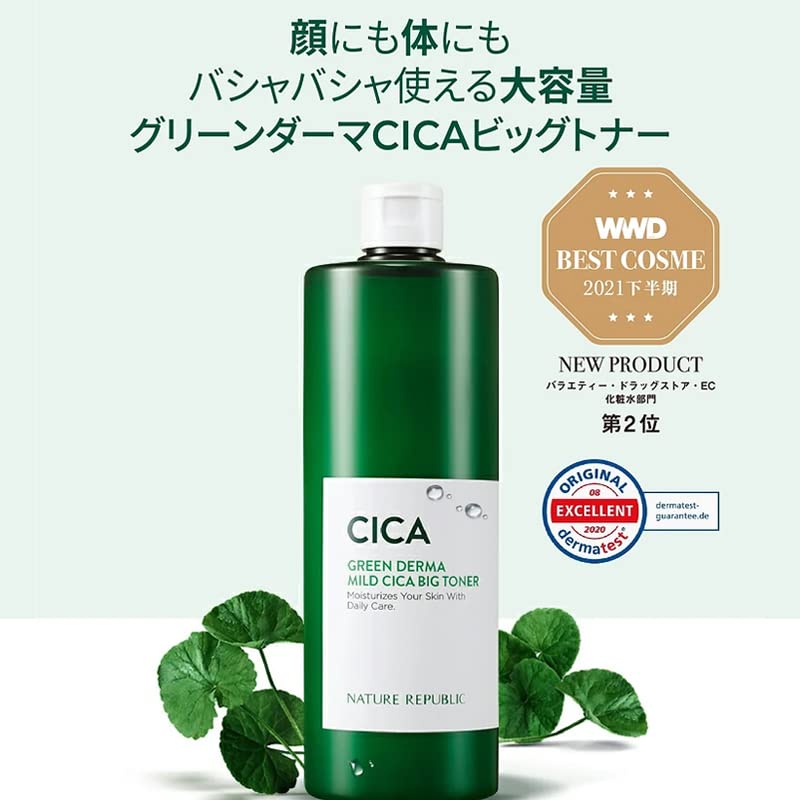 [Japan Quality Lotion] [NATURE REPUBLIC OFFICIAL] GREEN DERMA CICA BIG TONER 1 PC LARGE CAPACITY TONER DERMA CARE SERIES SKIN SOOTHING PROBLEM SKIN CARE SOOTHING CICA INGREDIENT KOREAN COSMETICS DERMA COSMETICS ASIATICA EXTRACT SOOTHING SENSITIVE