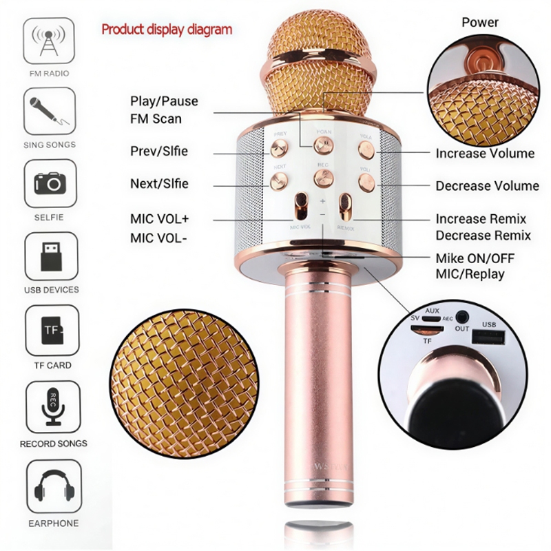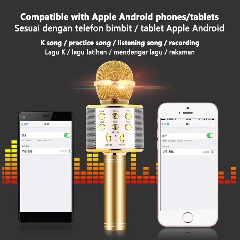 Wireless Bluetooth Microphone KTV Karaoke Handheld Mic HIFI Speaker WS 858