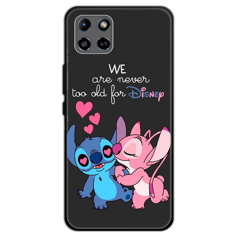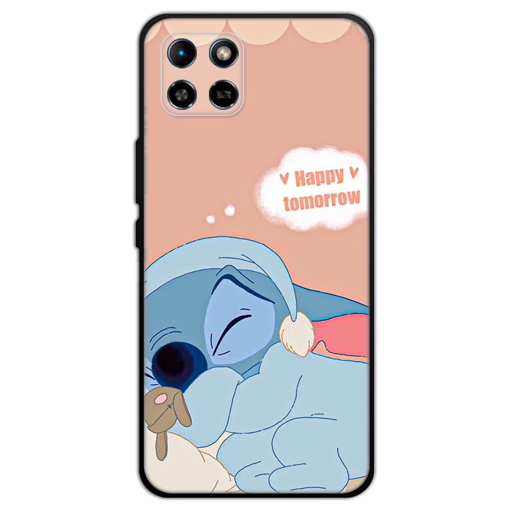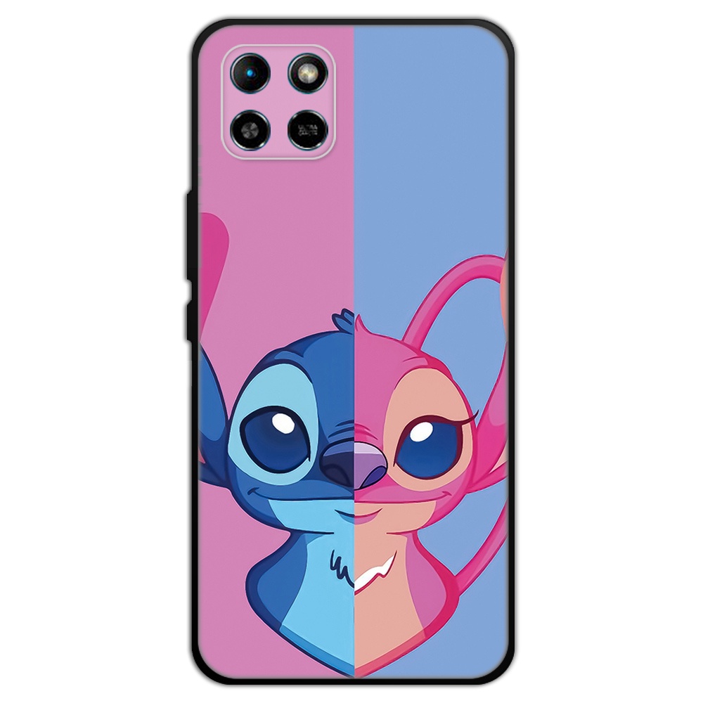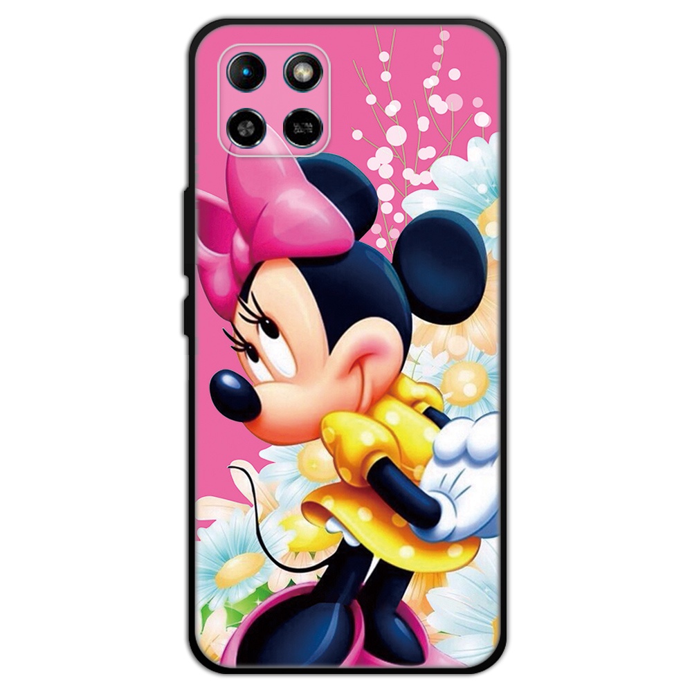 2 IN 1 Case Infinix Smart 6 HD Case with Tempered Glass Curved Ceramic Screen Protector Stich and Minnie Design