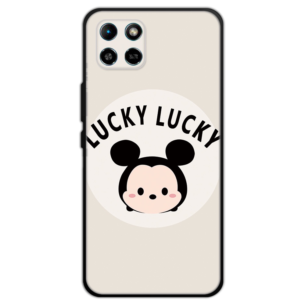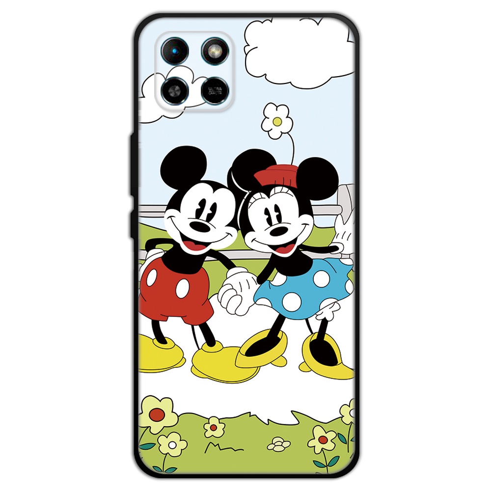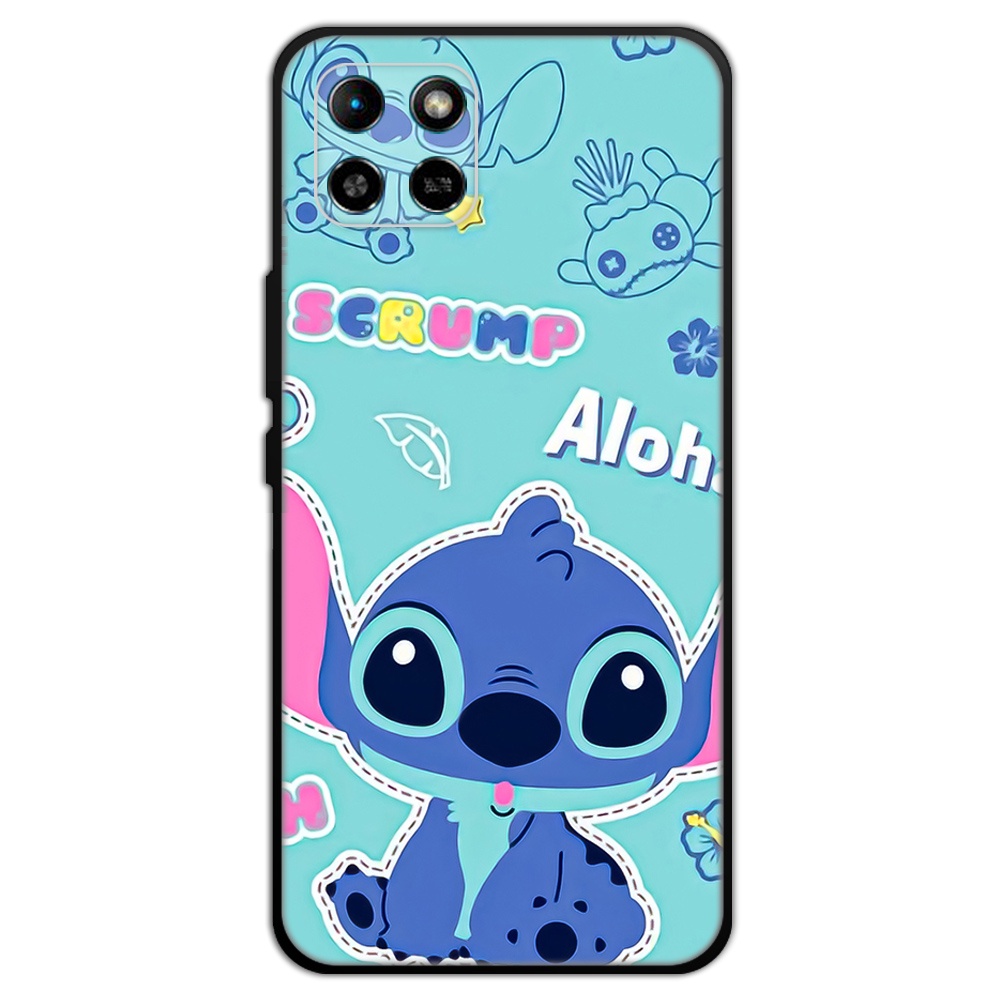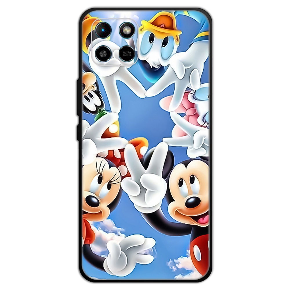2 IN 1 Case Infinix Smart 6 HD Case with Tempered Glass Curved Ceramic Screen Protector Stich and Minnie Design
