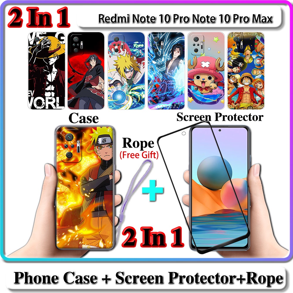 2 IN 1 Case Redmi Note 10 Pro Note 10 Pro Max Case with Tempered Glass Curved Ceramic Screen Protector Naruto and One Piece Design