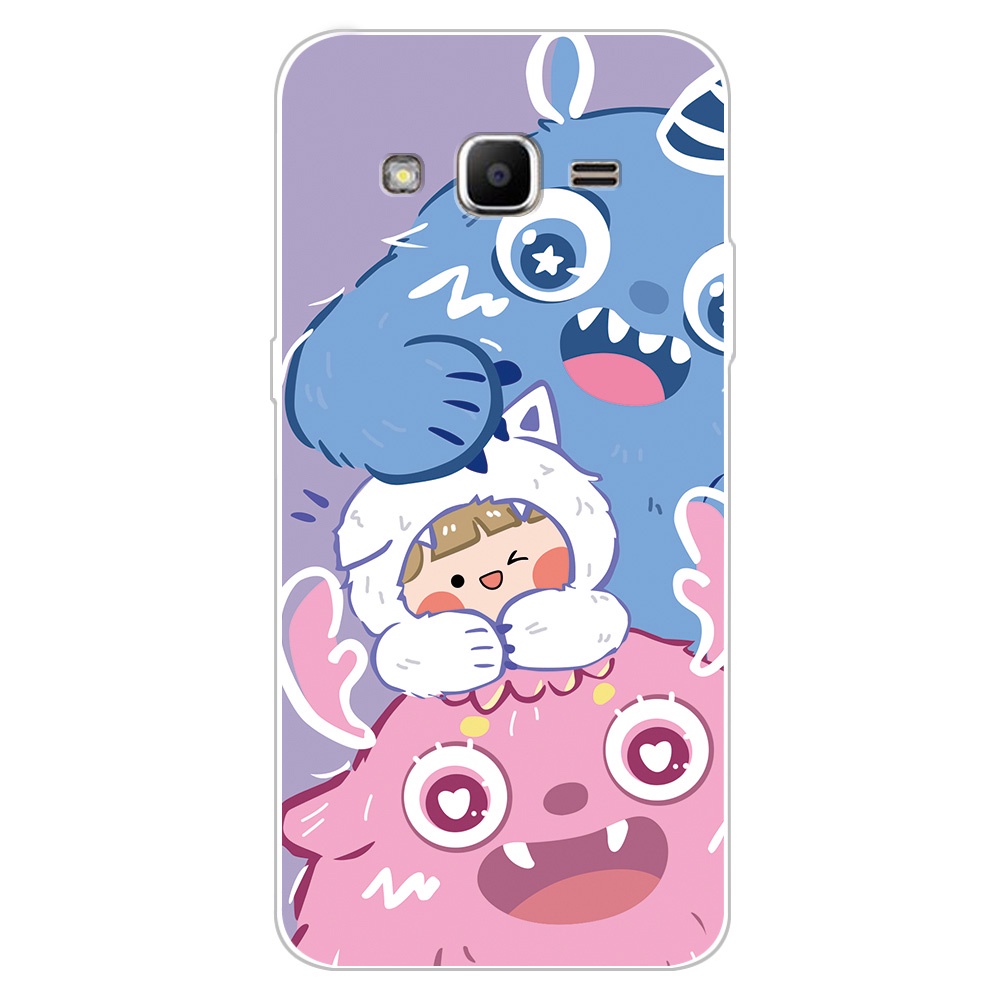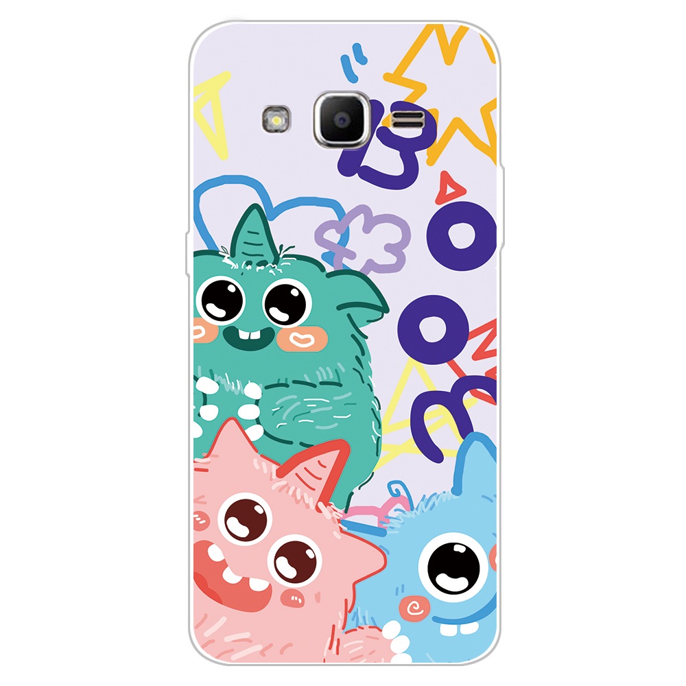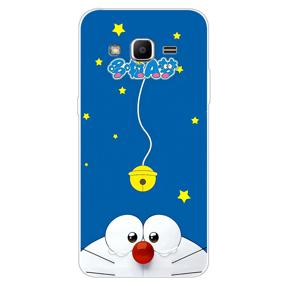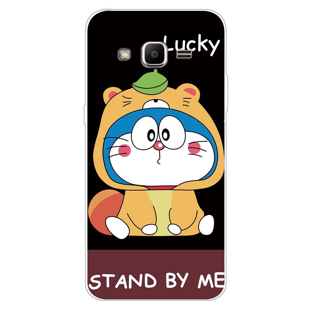 2 IN 1 Case Samsung J2 Prime Case with Tempered Glass Curved Ceramic Screen Protector Cat and Doraemon