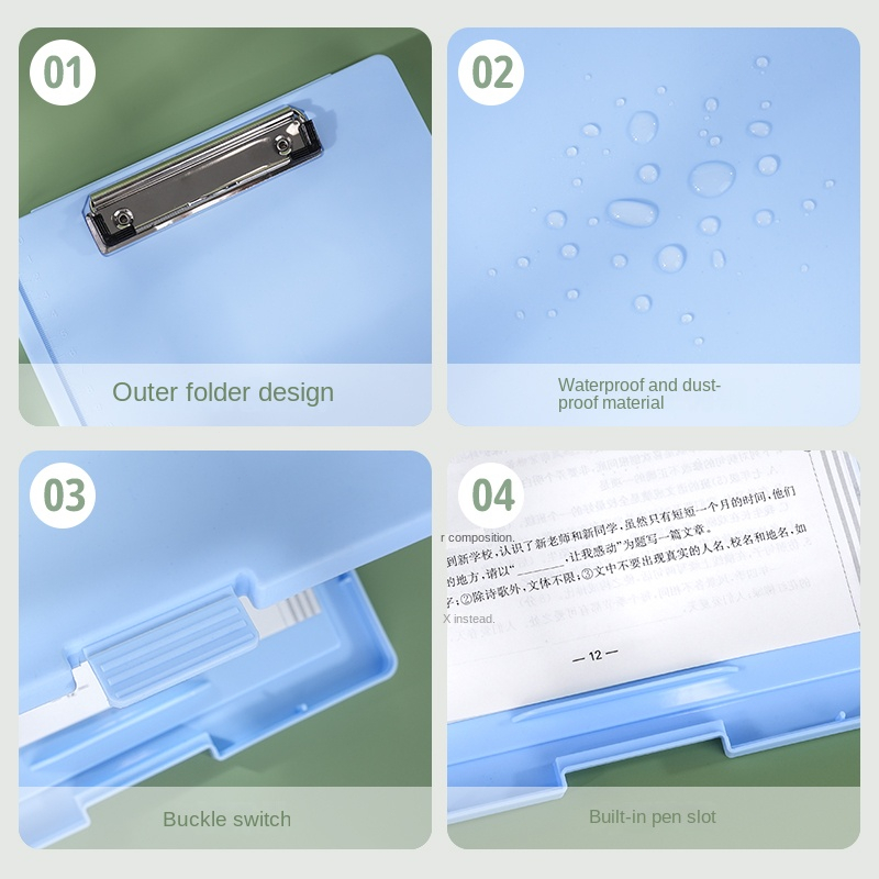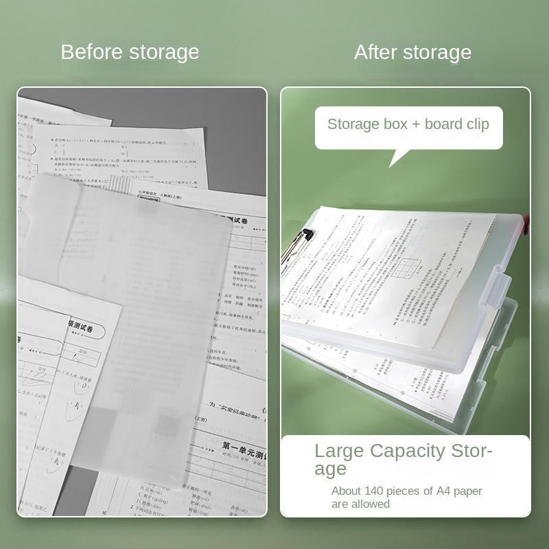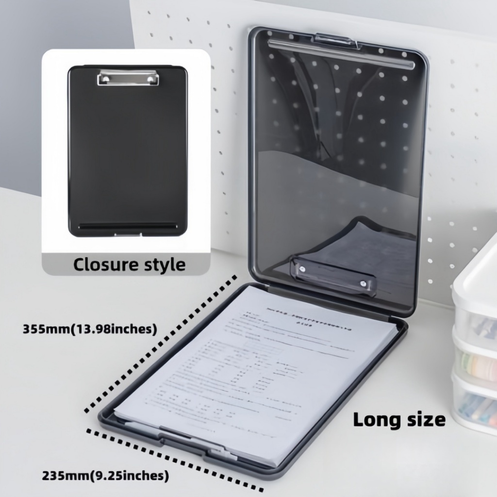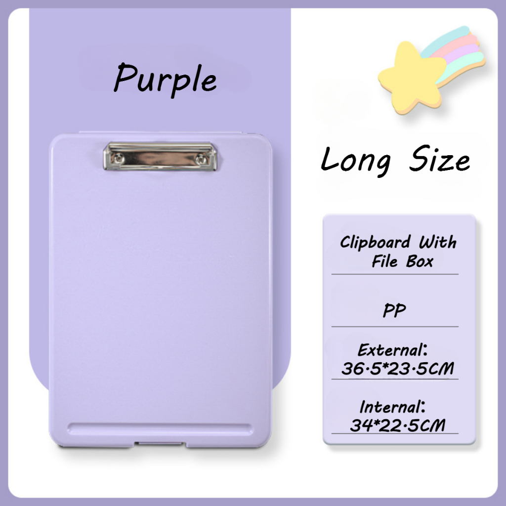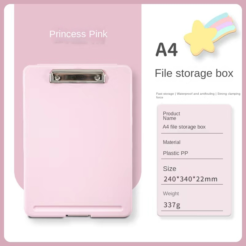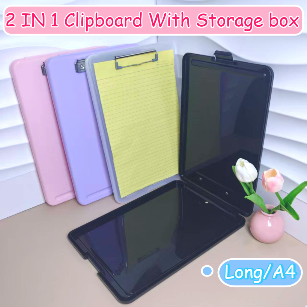 2 IN 1 Clipboard With Storage A4/Long File Organizer Folder PP File Box School Office Supplies Pink
