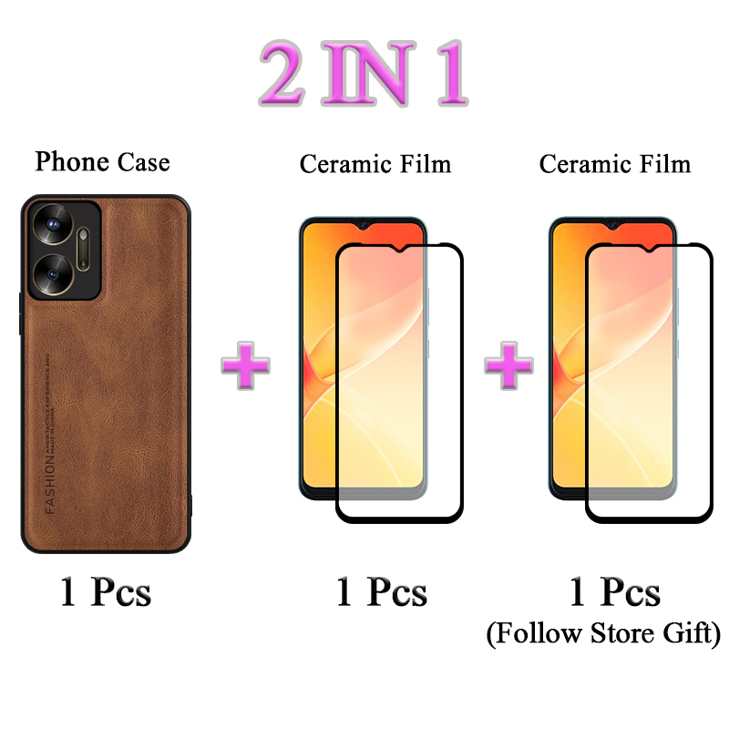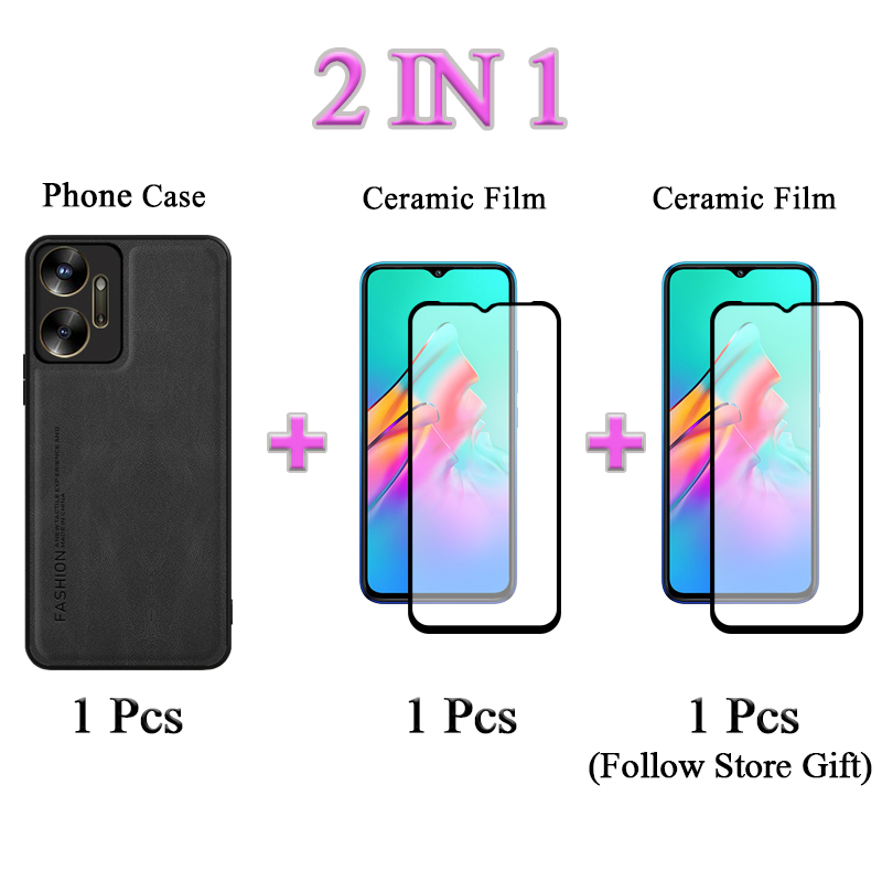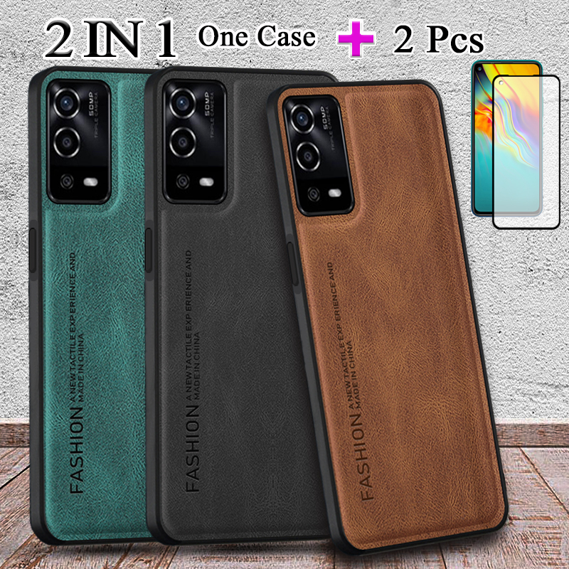 2 IN 1 For OPPO A55 4G A55 5G Case Luxury Leather Casing With Ceramic Film Protector Screen Curved Ceramic Film