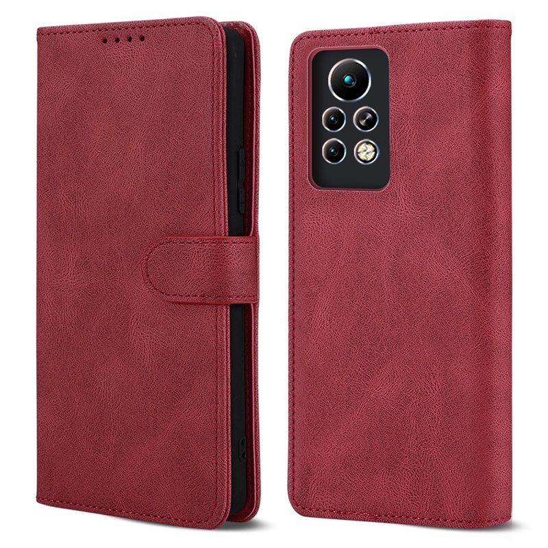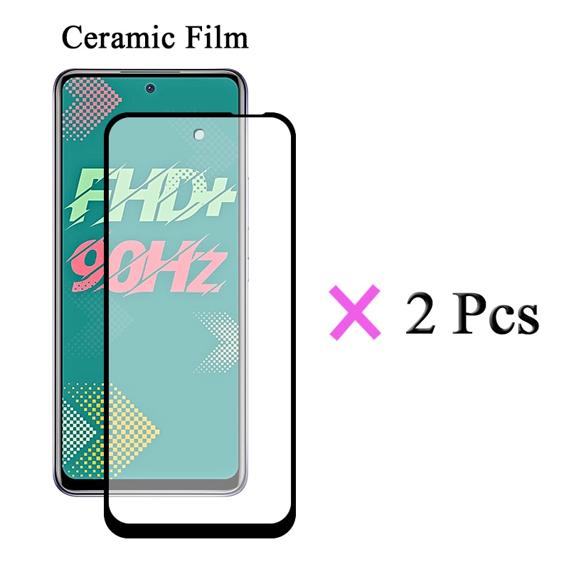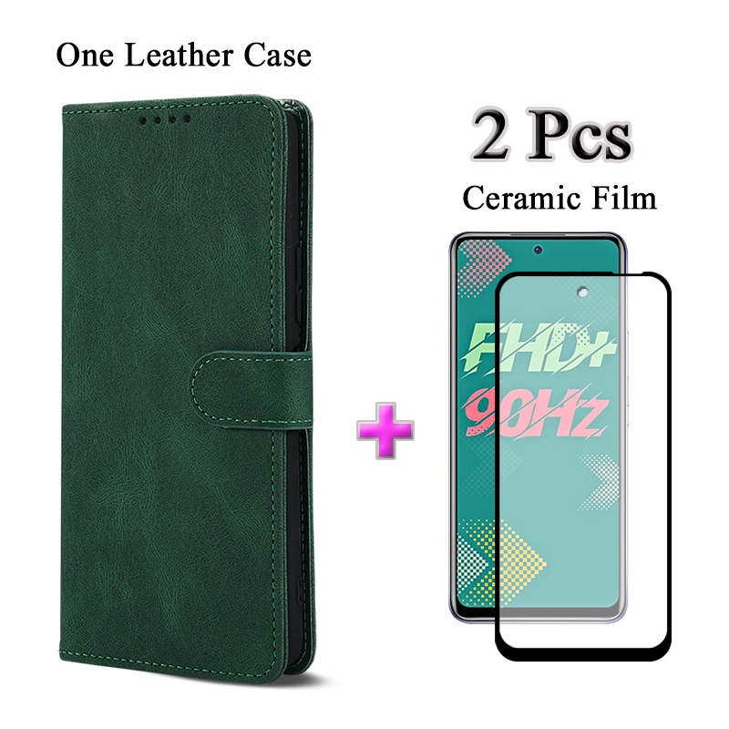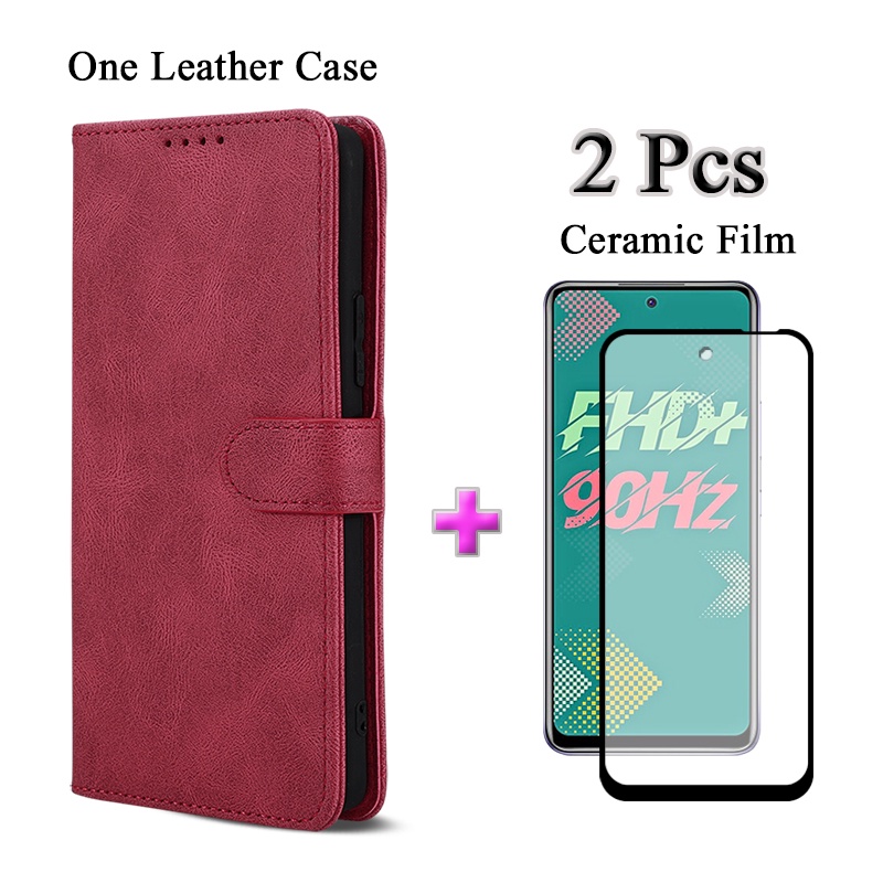 2 IN 1 Infinix Hot 11S X6812 X6812B Solid Color Flip Cover Simple Leather Phone Case With Ceramic Protector Screen Curved Tempered Film