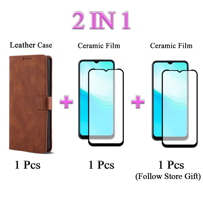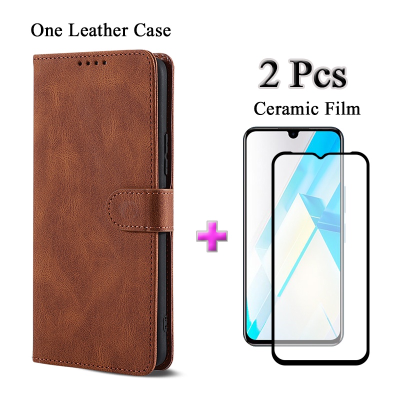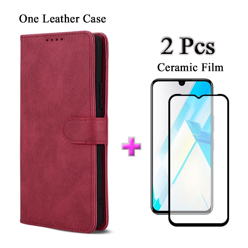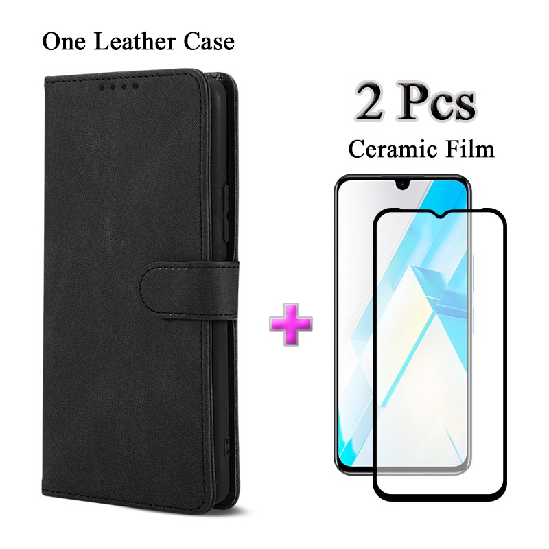 2 IN 1 Infinix Note 12 G96 Wallet Leather Case Flip Phone Case With Tempered Glass Curved Ceramic Screen Protector