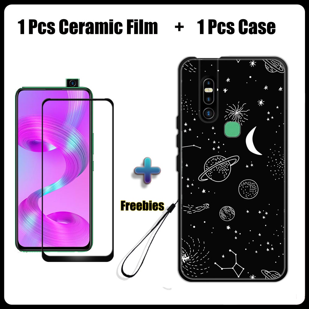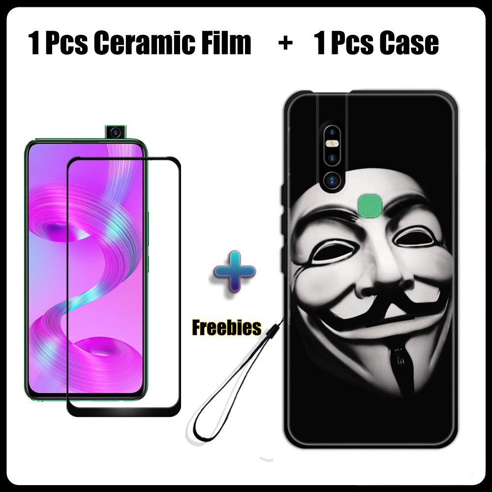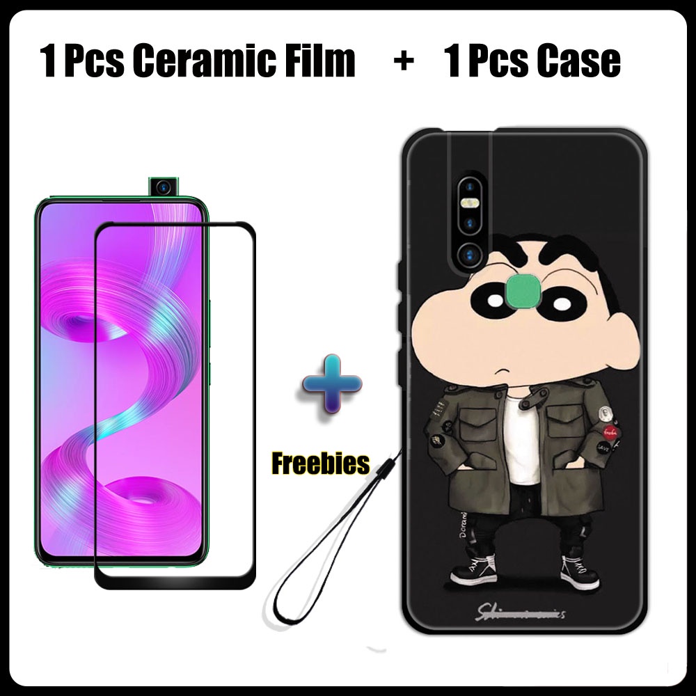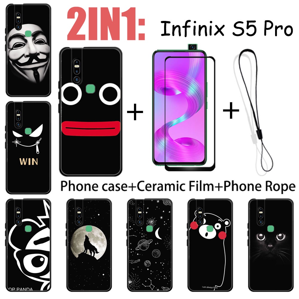 2 IN 1 Infinix S5 Pro Case with Tempered Glass Ceramic Film Screen Protector Black Colour Series