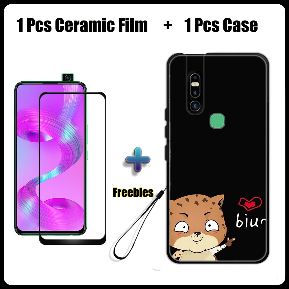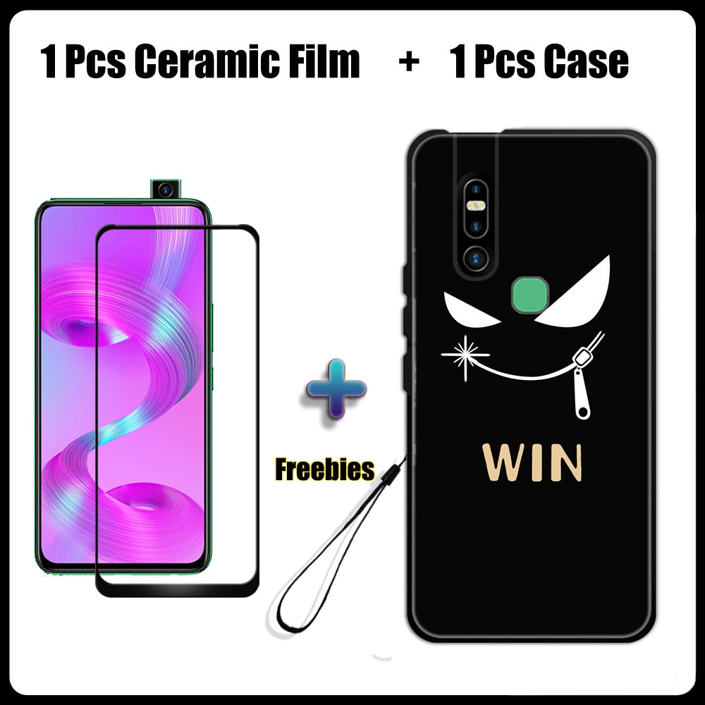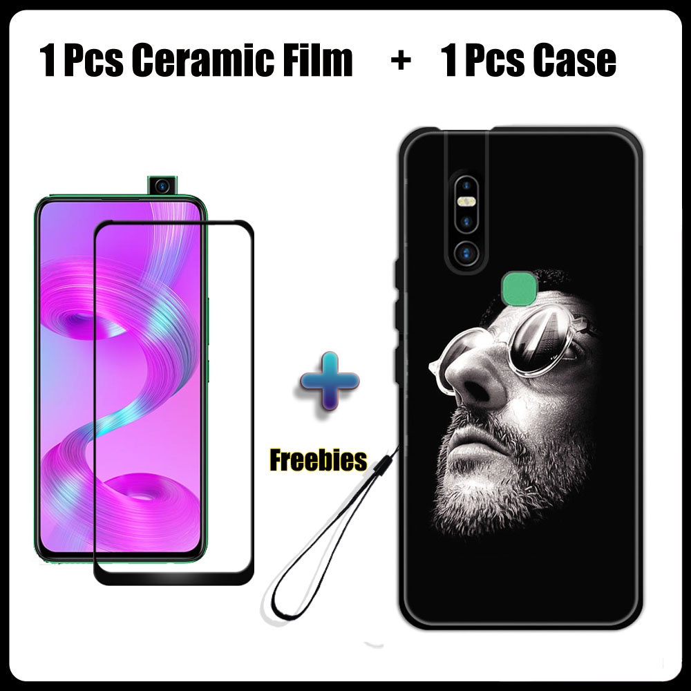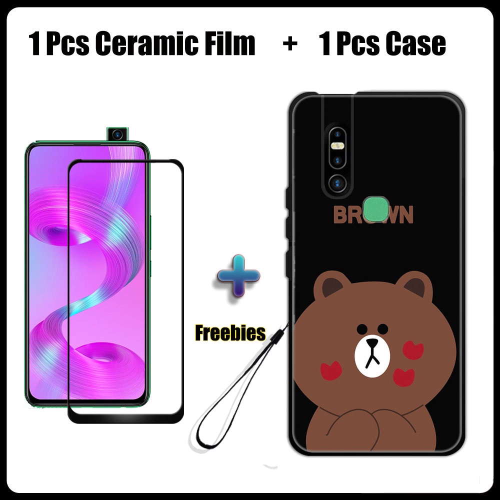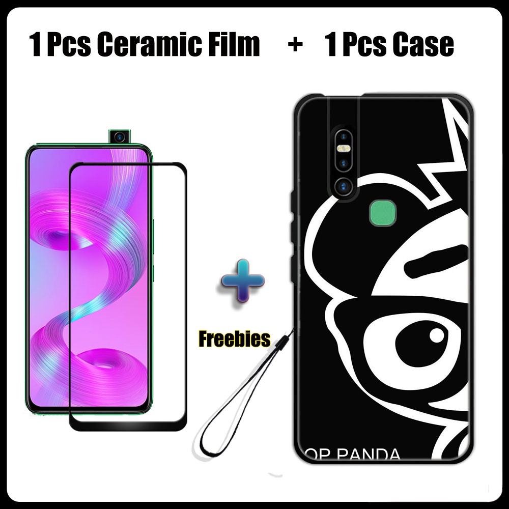 2 IN 1 Infinix S5 Pro Case with Tempered Glass Ceramic Film Screen Protector Black Colour Series