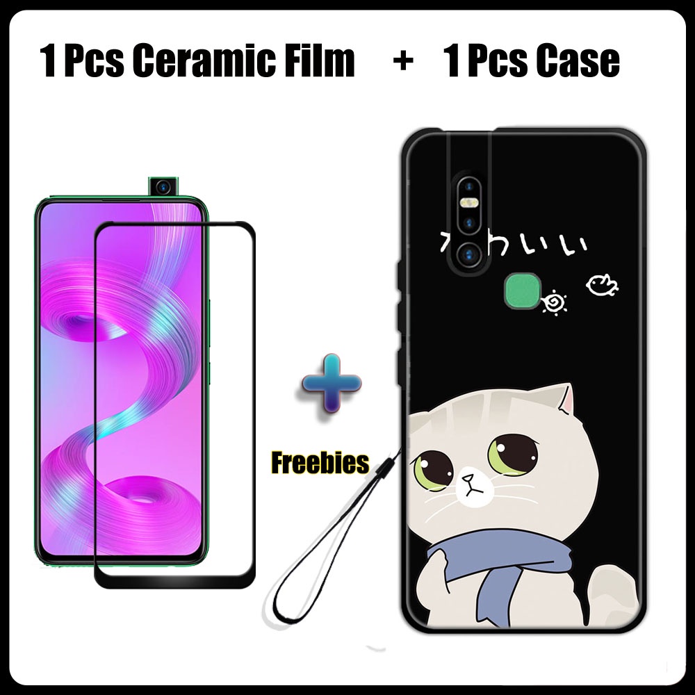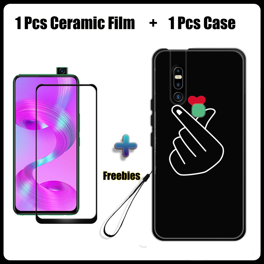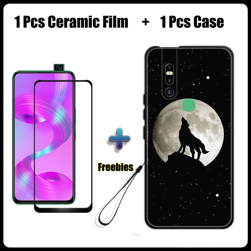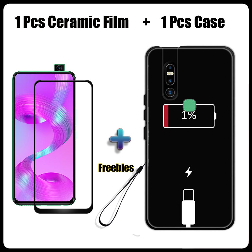 2 IN 1 Infinix S5 Pro Case with Tempered Glass Ceramic Film Screen Protector Black Colour Series