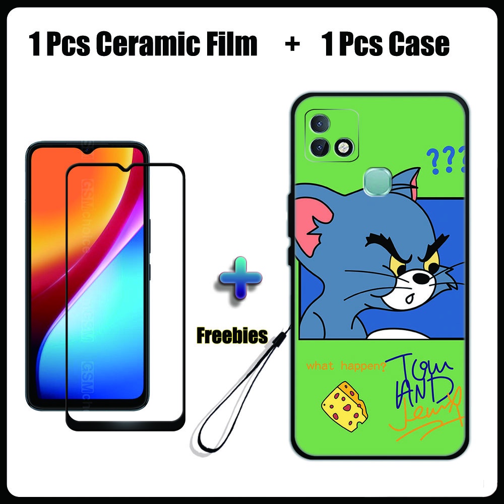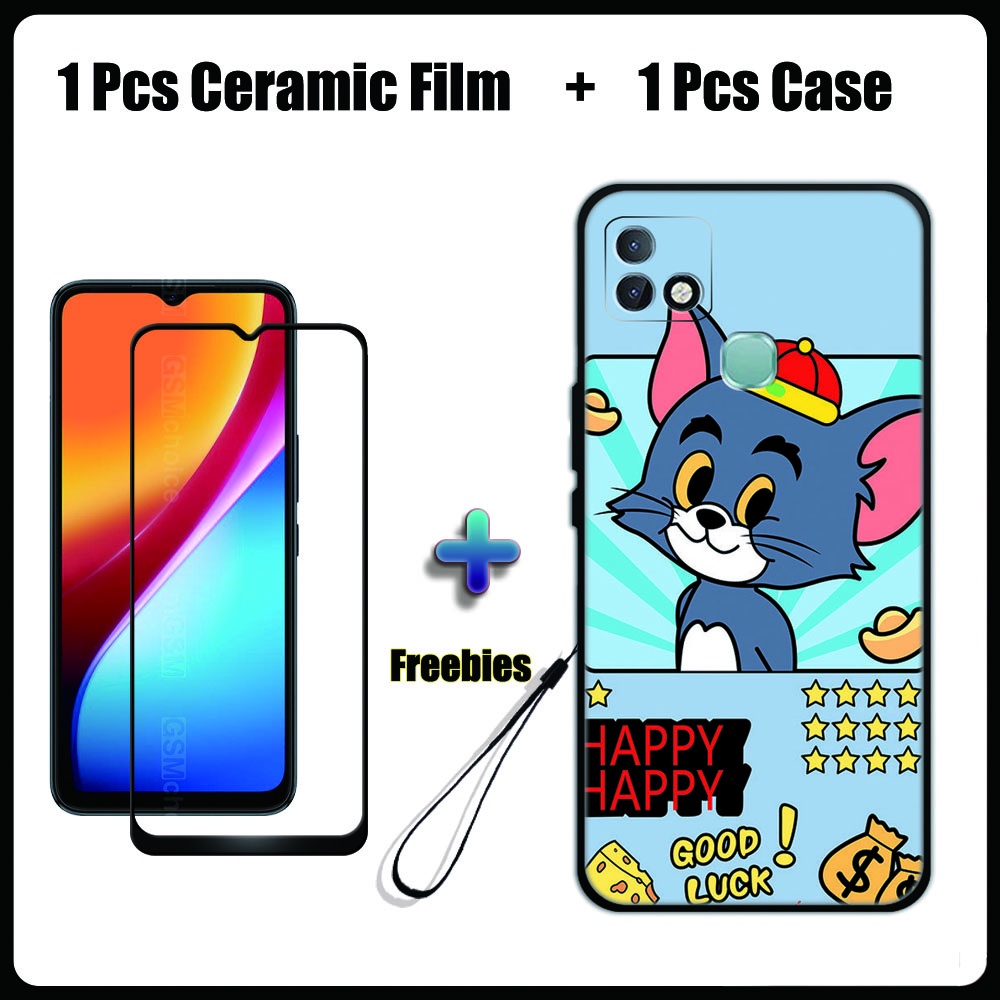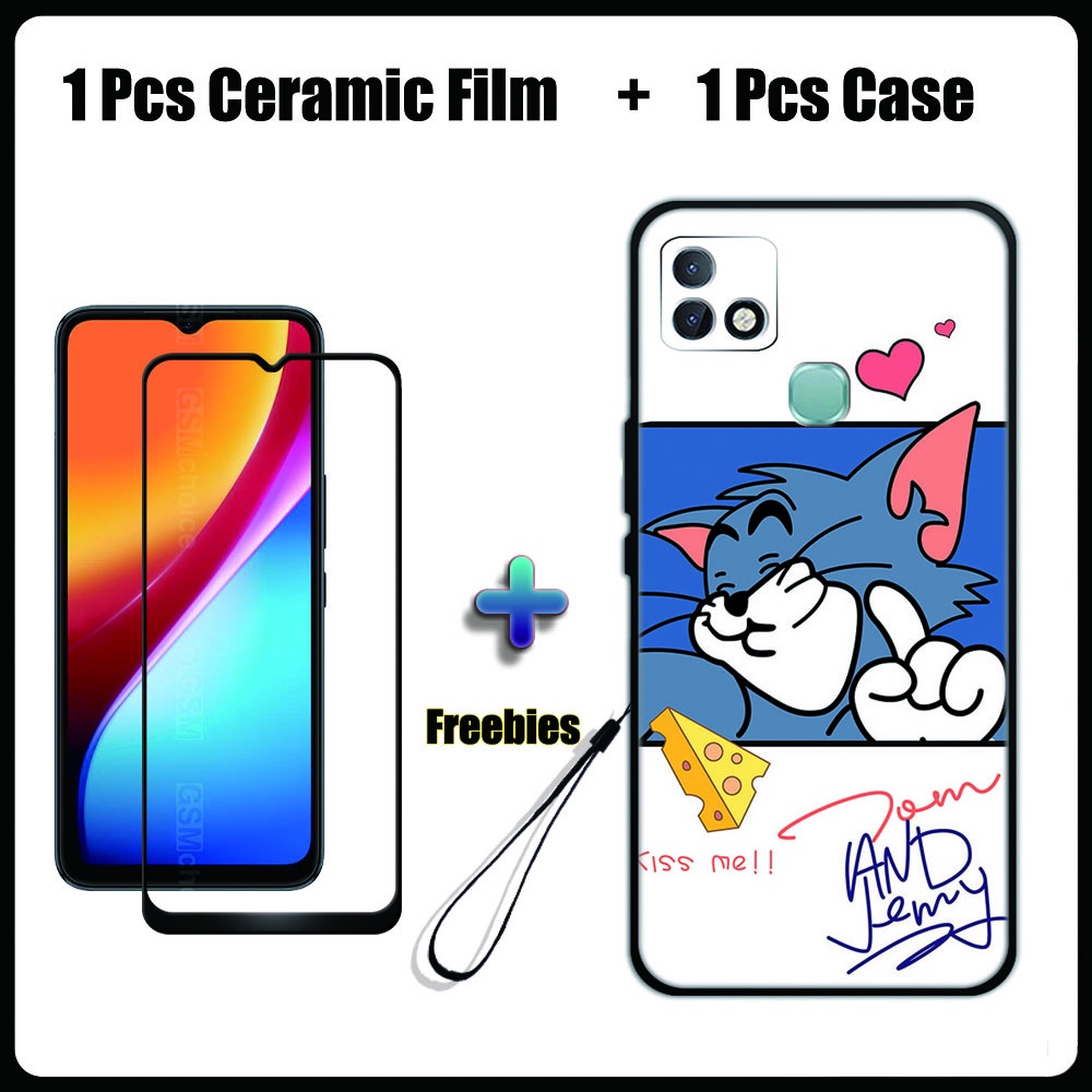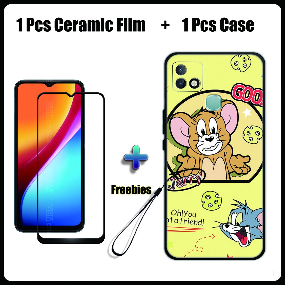 2 IN 1 Infinix Smart 5 Pro Case with Tempered Glass Ceramic Film Screen Protector Cute Tom and Jerry Series
