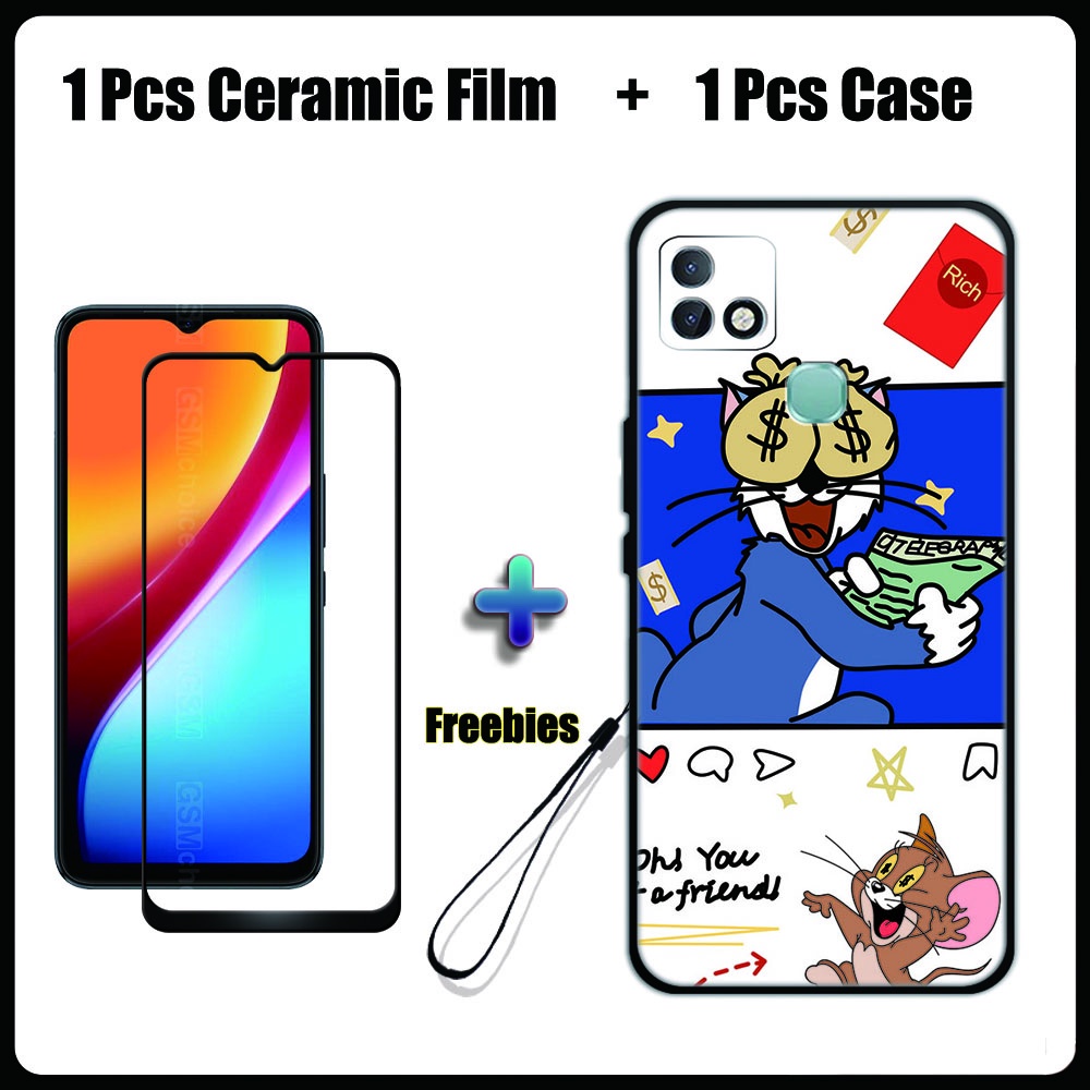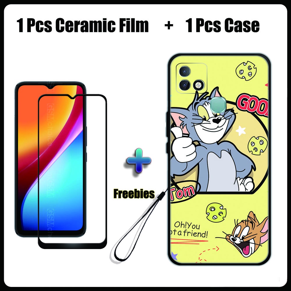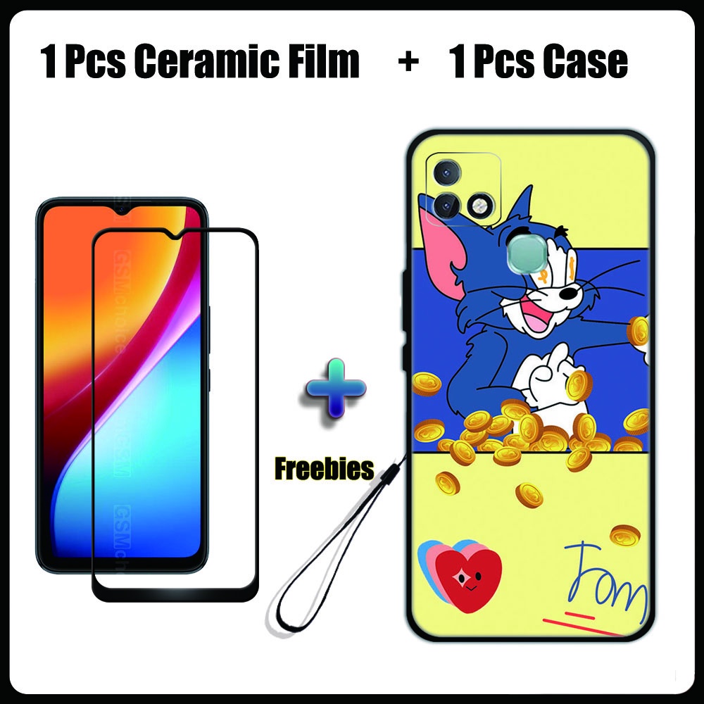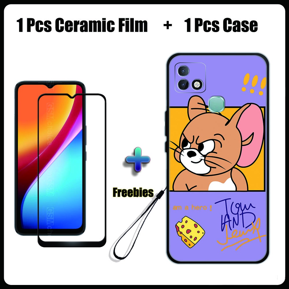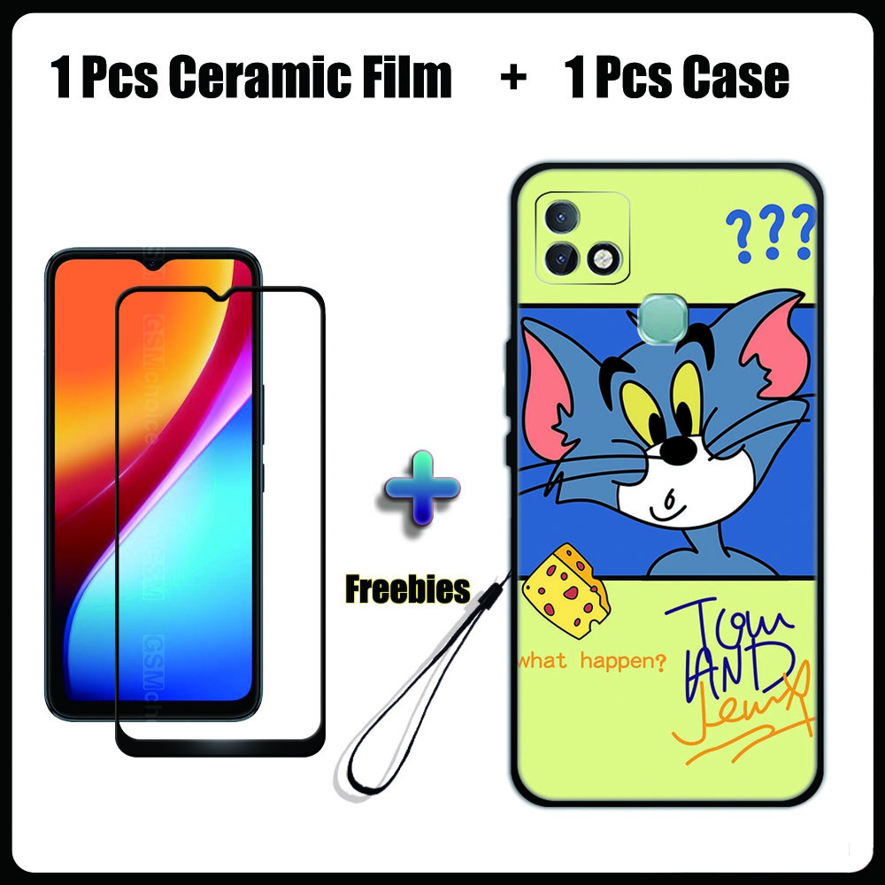 2 IN 1 Infinix Smart 5 Pro Case with Tempered Glass Ceramic Film Screen Protector Cute Tom and Jerry Series