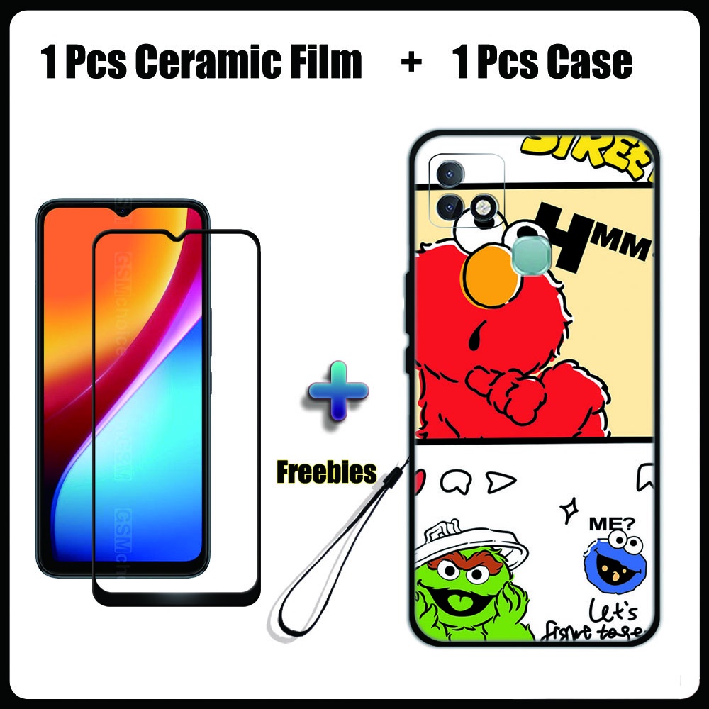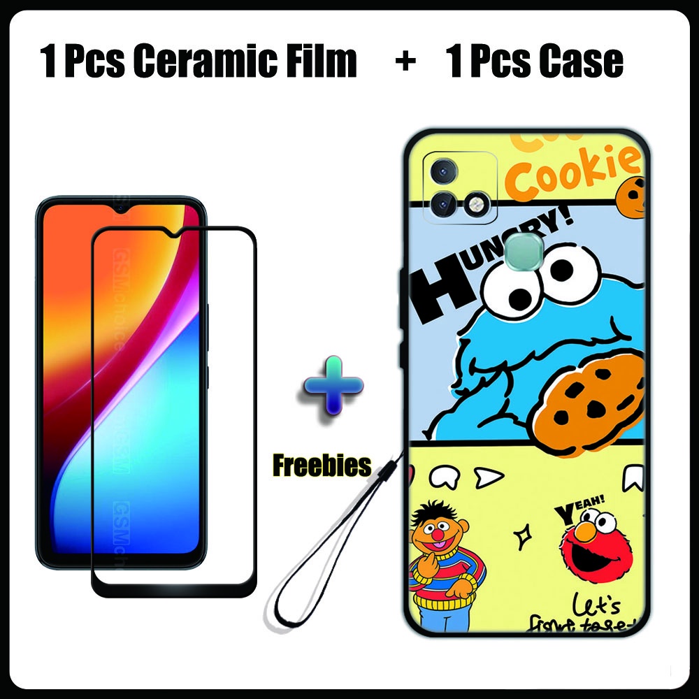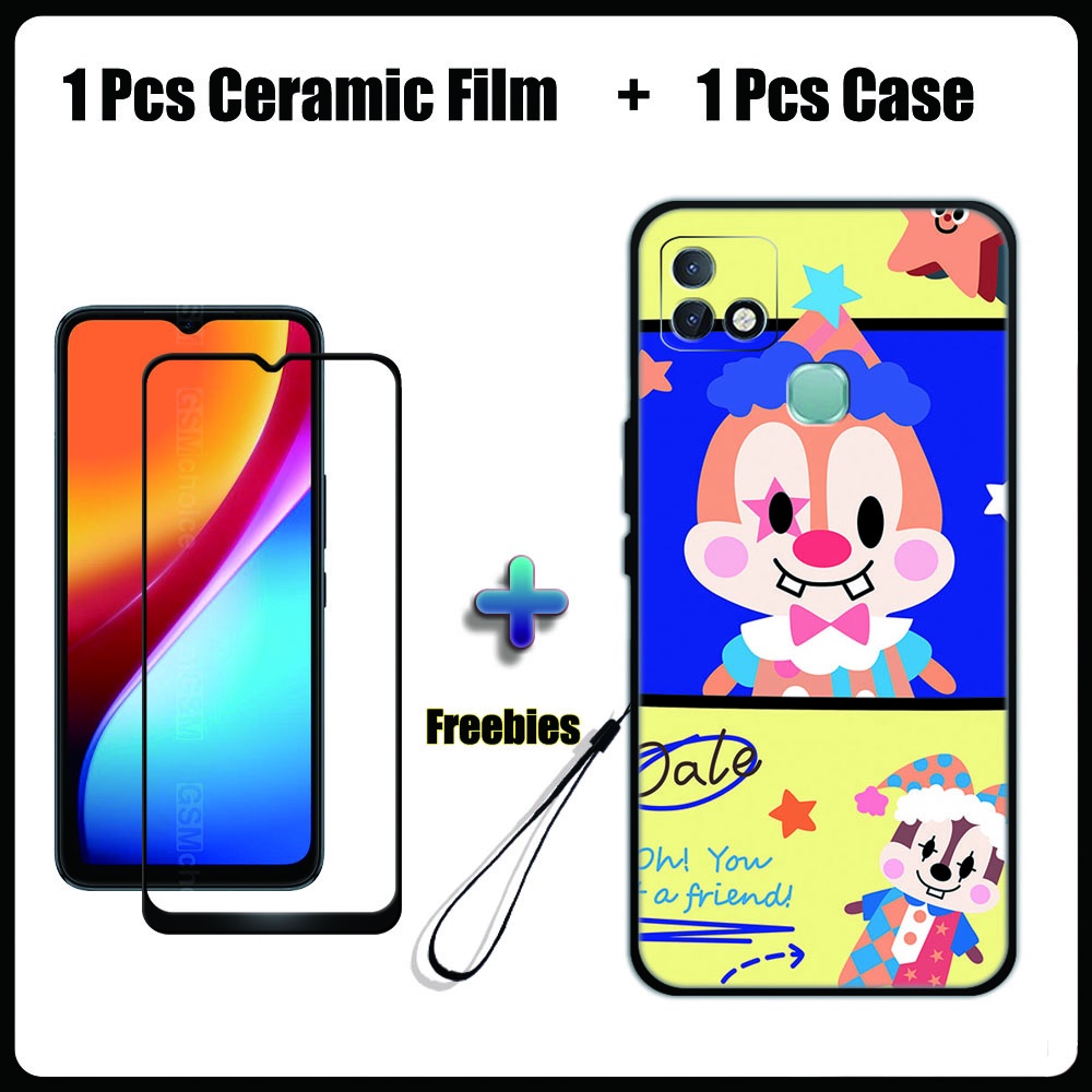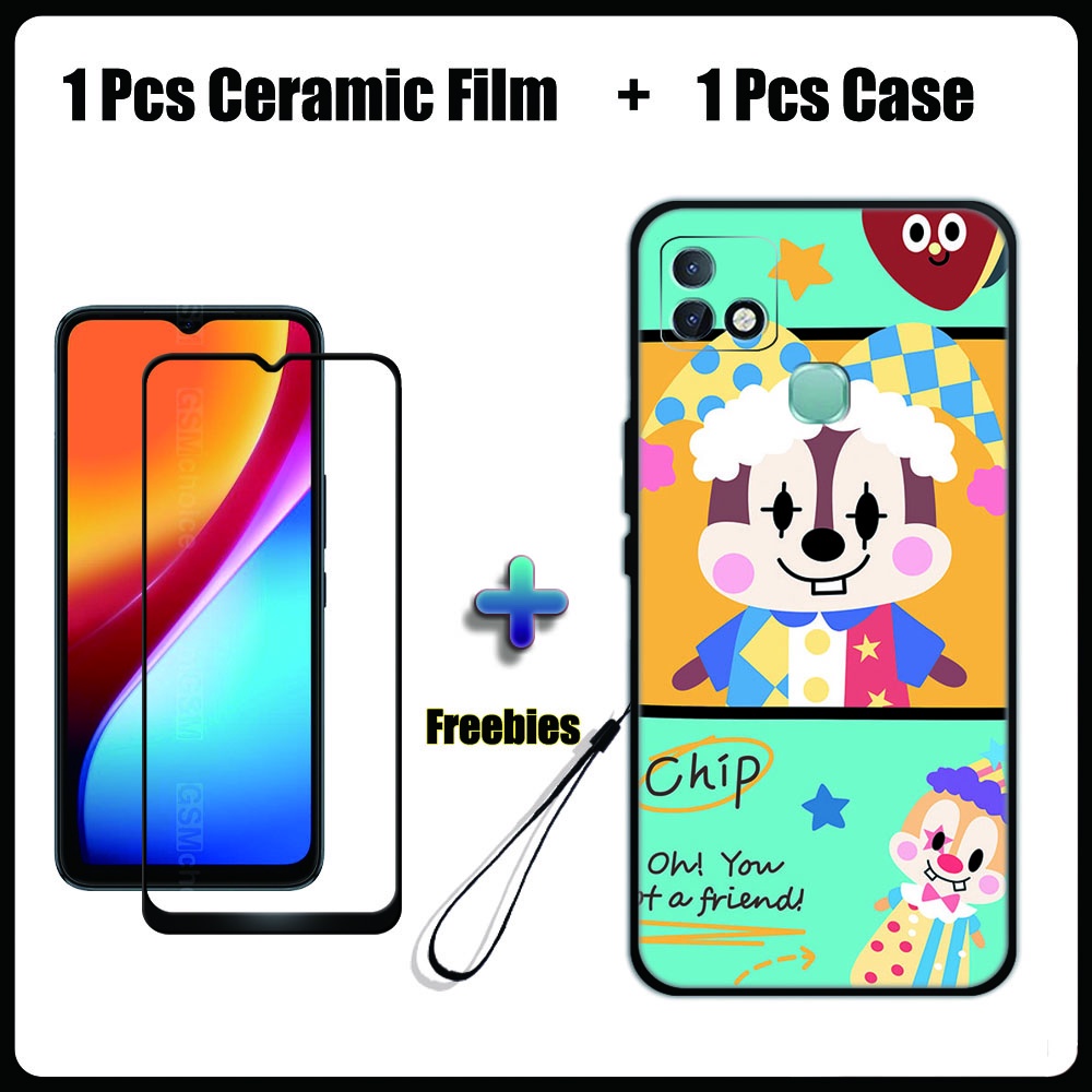 2 IN 1 Infinix Smart 5 Pro Case with Tempered Glass Ceramic Film Screen Protector Cute Tom and Jerry Series
