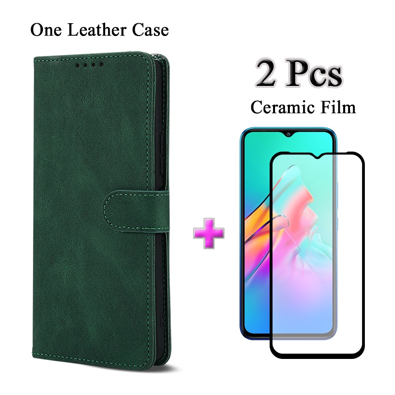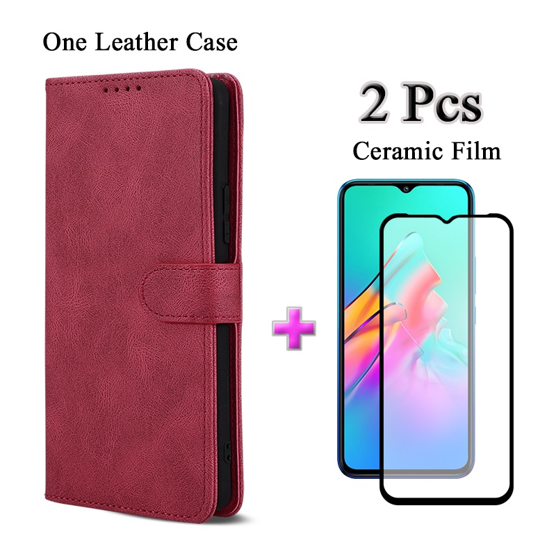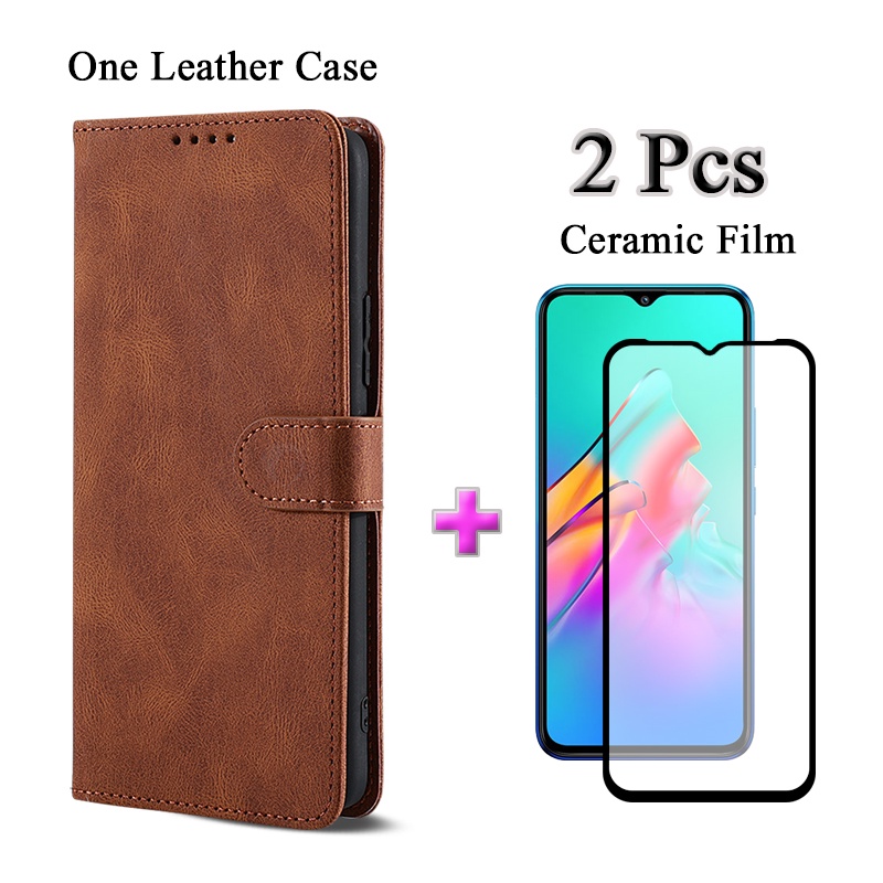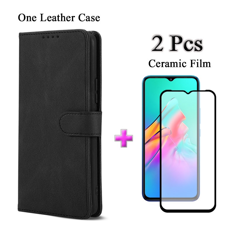 2 IN 1 Infinix Smart 5 X657 X657C Wallet Leather Case Casing With Ceramic Protector Screen Curved Tempered Film