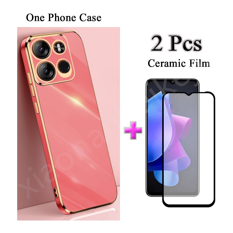 2 IN 1 Infinix Smart 7 X6515 Plating Casing With Two Piece Tempered Glass Curved Ceramic Screen