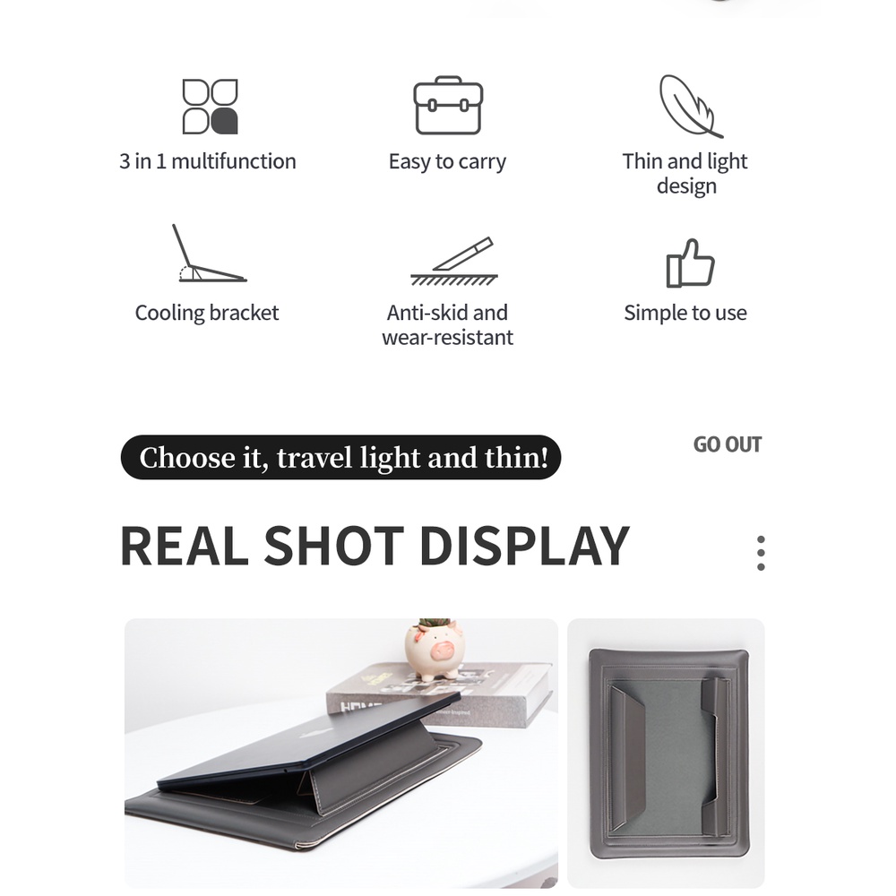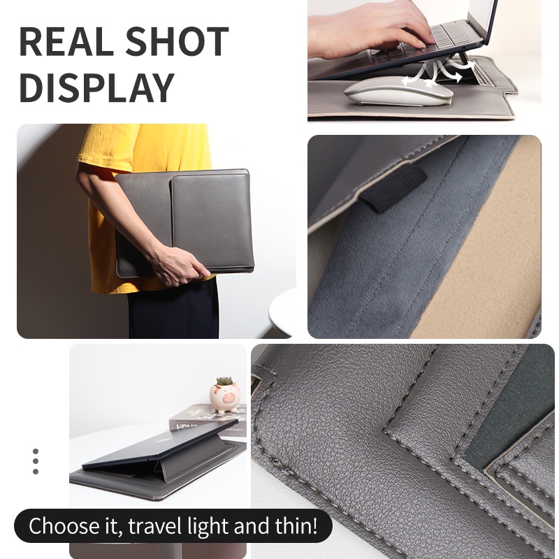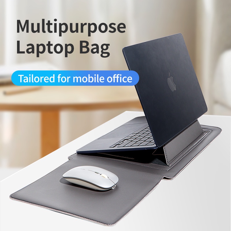 2 IN 1 Laptop Bag Stand with Phone Holder Portable Foldable Adjustable Holder Computer Accessories Laptop Sleeve Case Compatible with MacBook Air 11 12 13 Pro 13.3 14 15 16 Inch