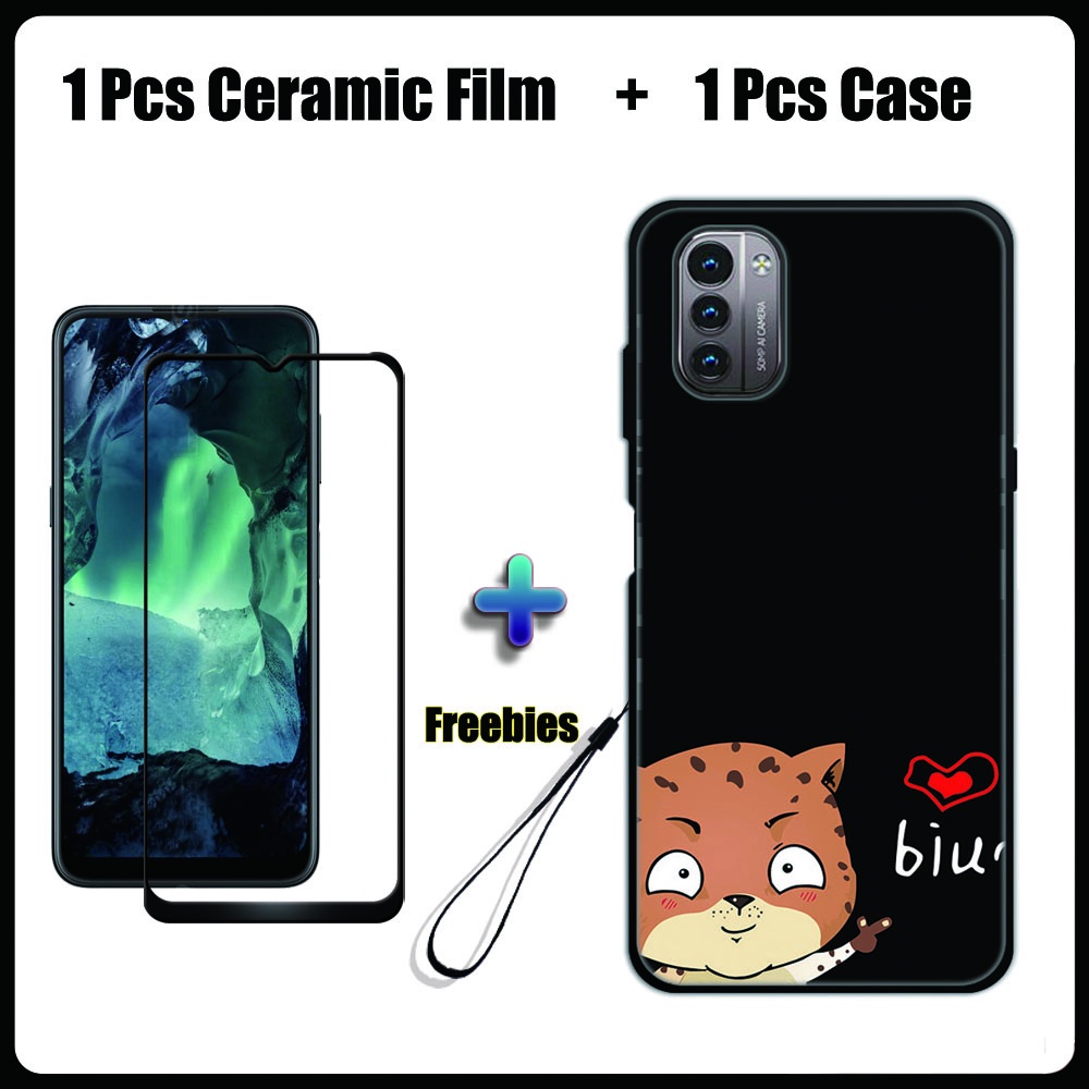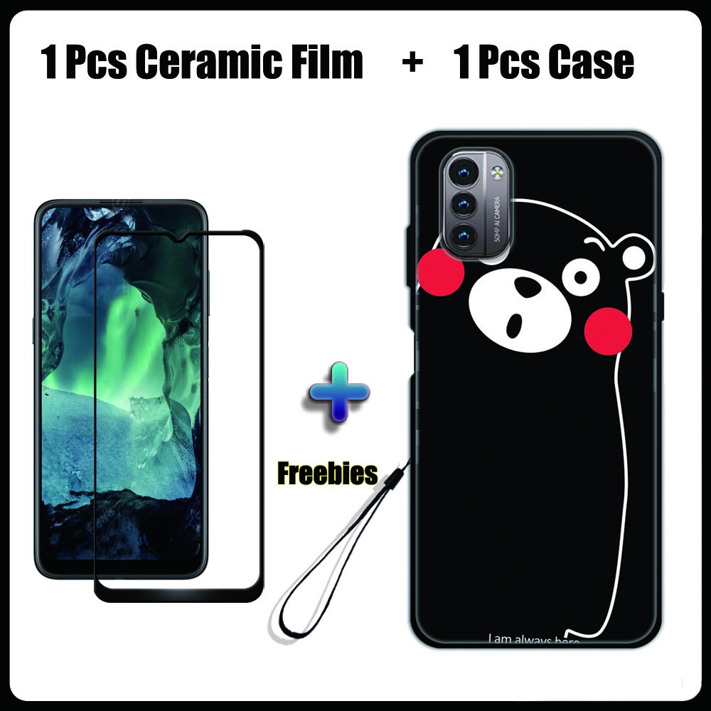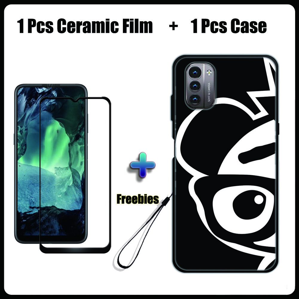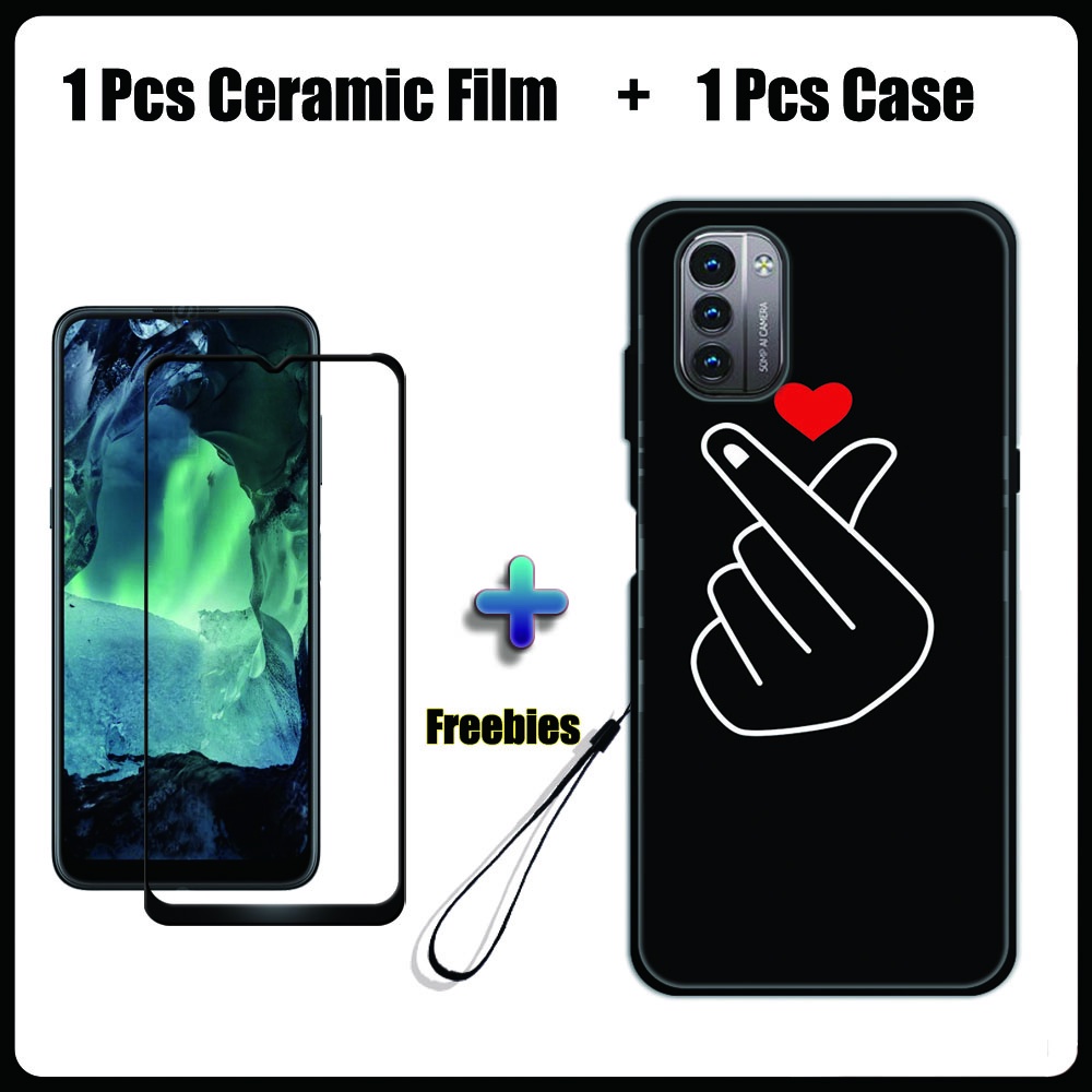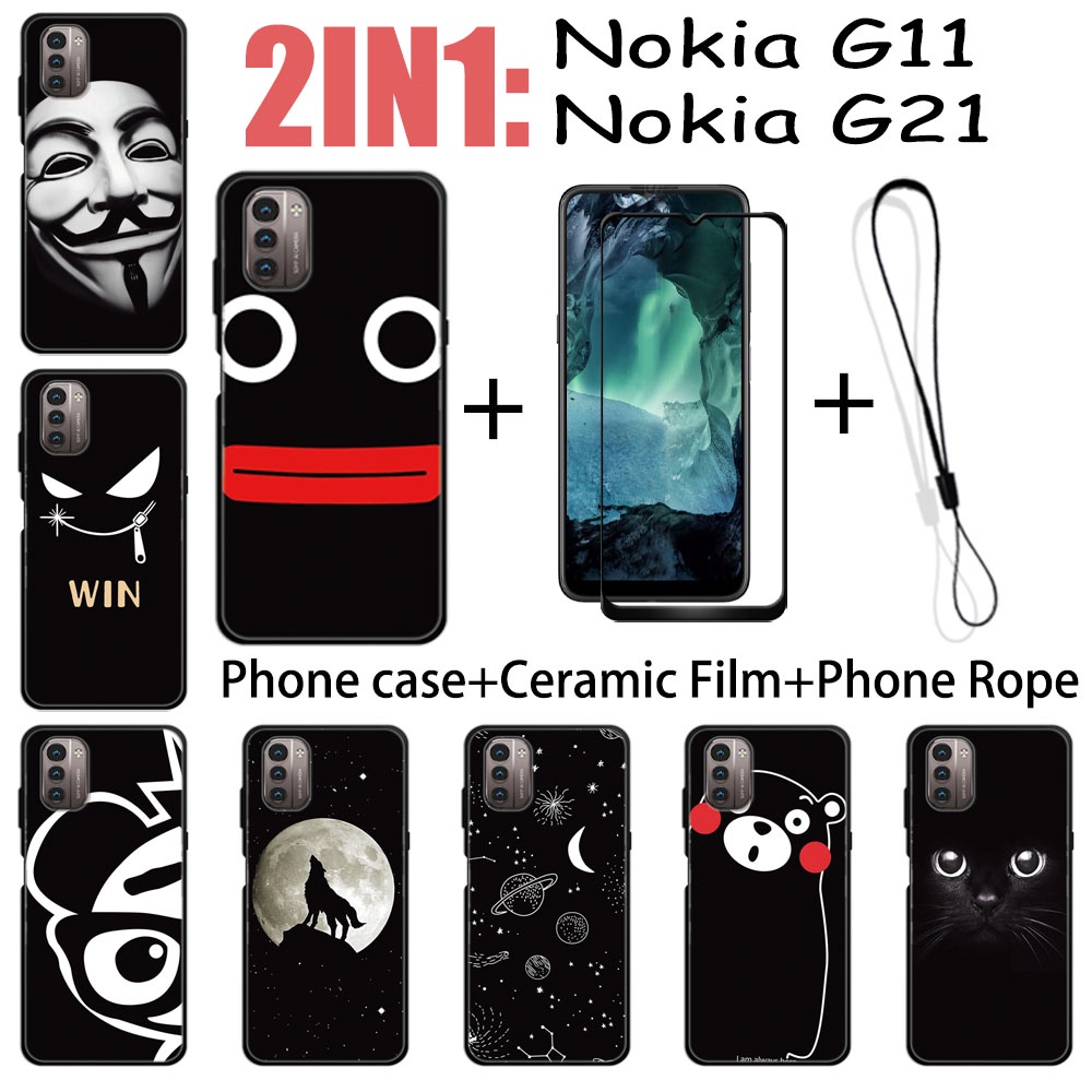 2 IN 1 Nokia G11 G21 Case with Tempered Glass Ceramic Film Screen Protector Black Colour Series