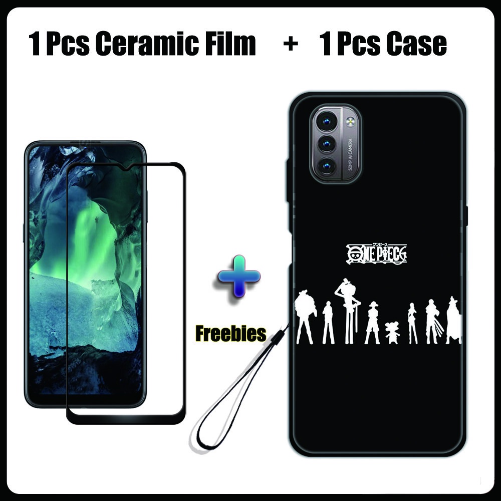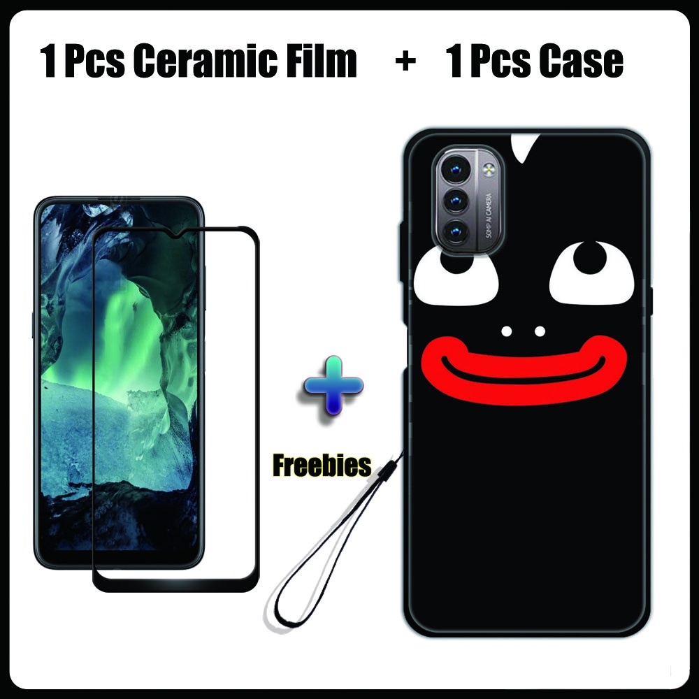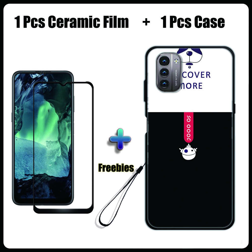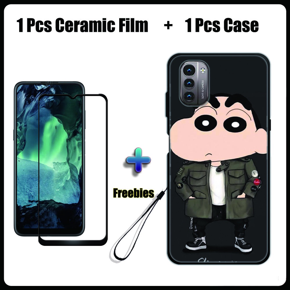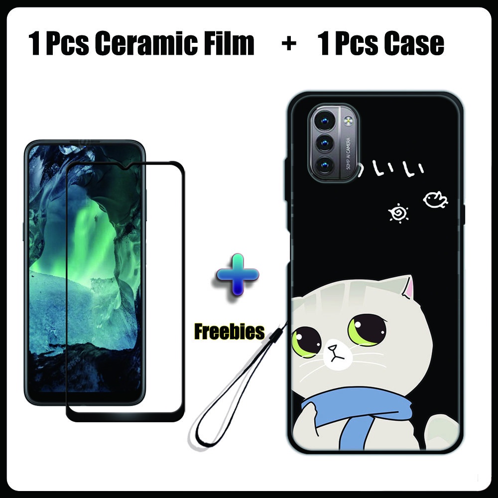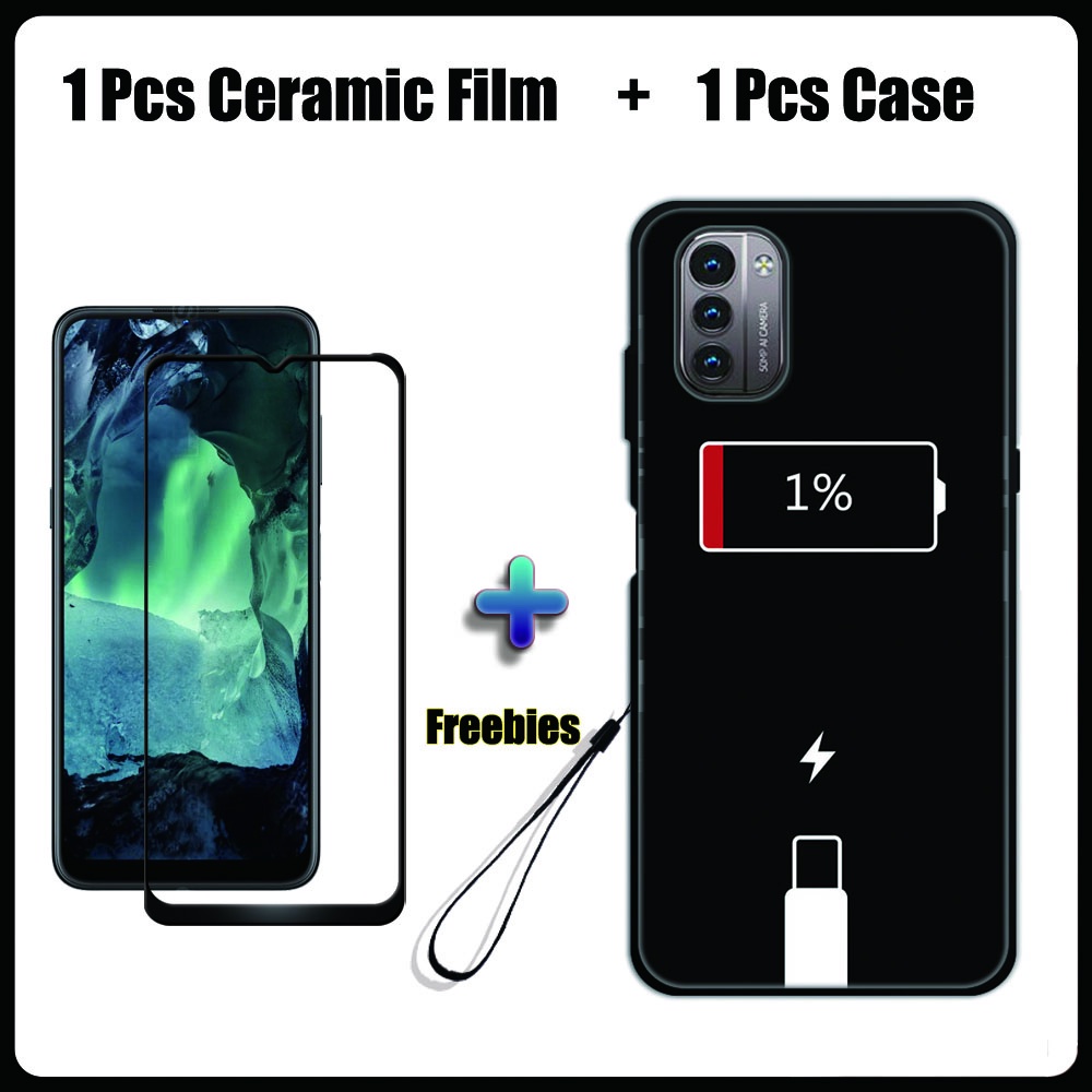 2 IN 1 Nokia G11 G21 Case with Tempered Glass Ceramic Film Screen Protector Black Colour Series