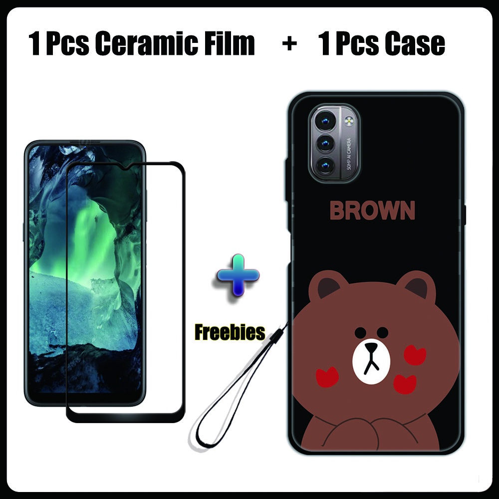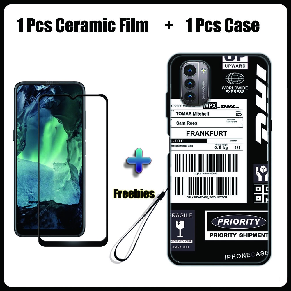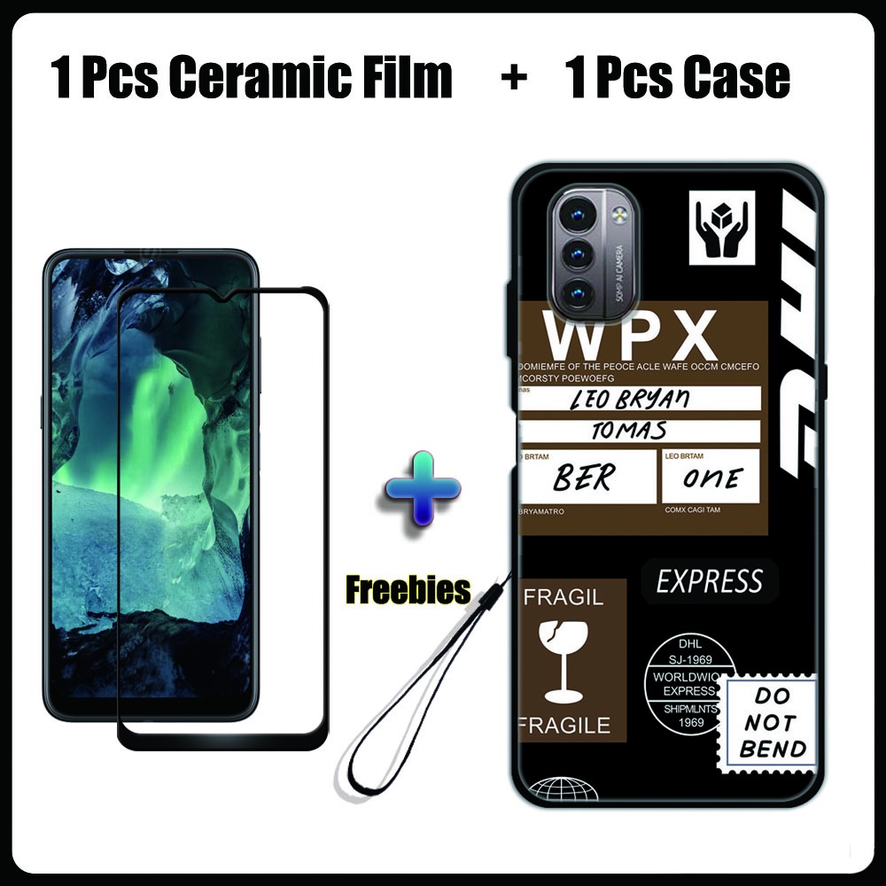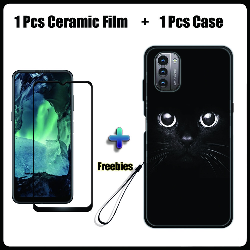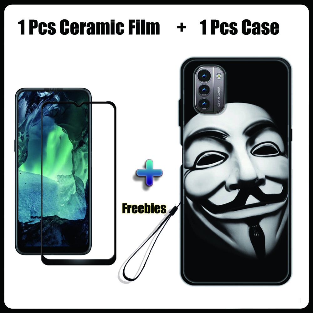 2 IN 1 Nokia G11 G21 Case with Tempered Glass Ceramic Film Screen Protector Black Colour Series