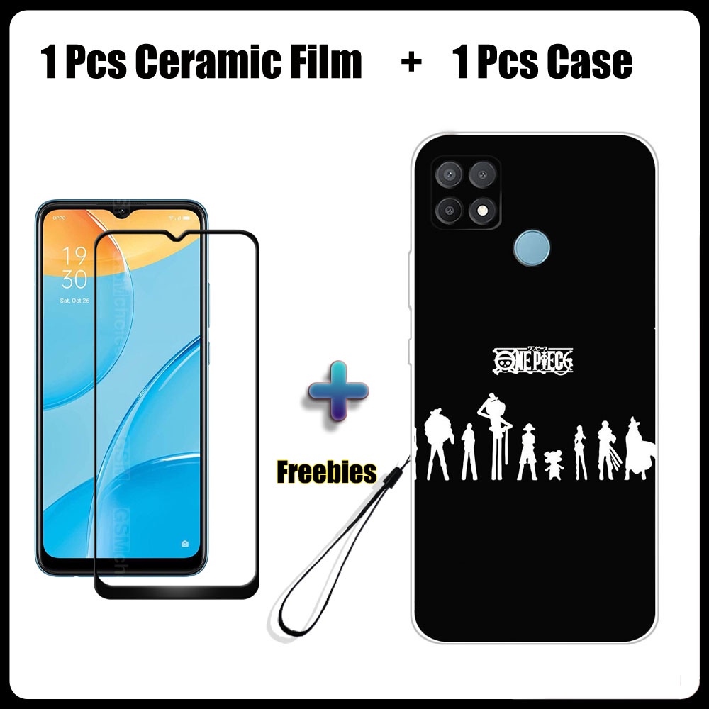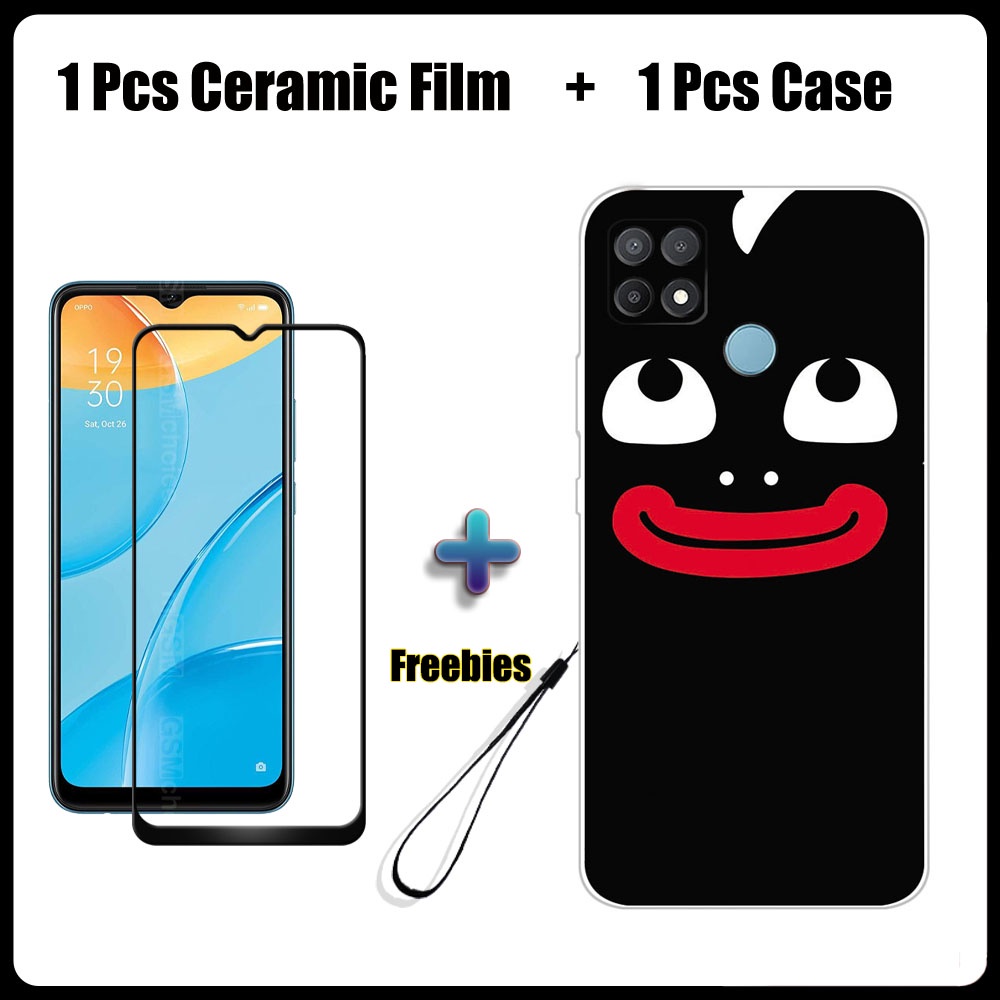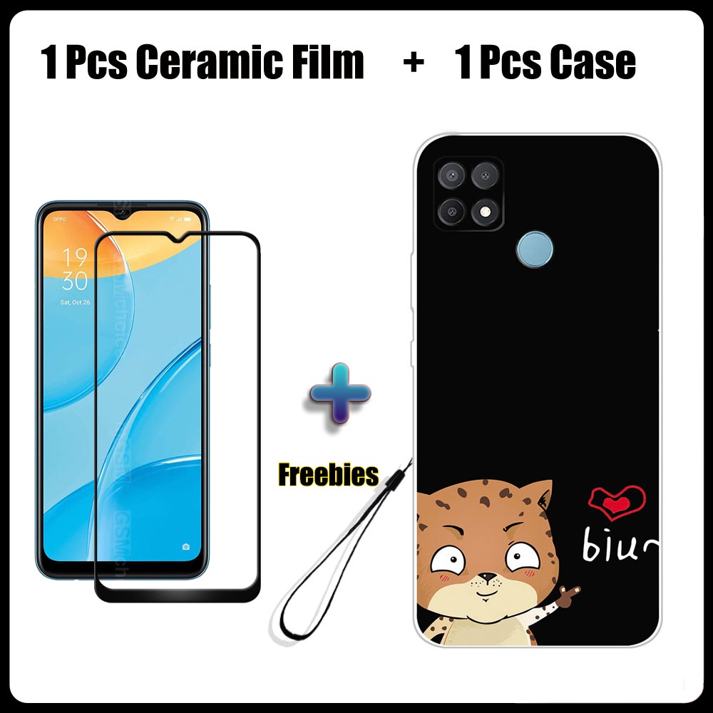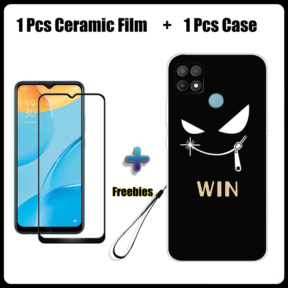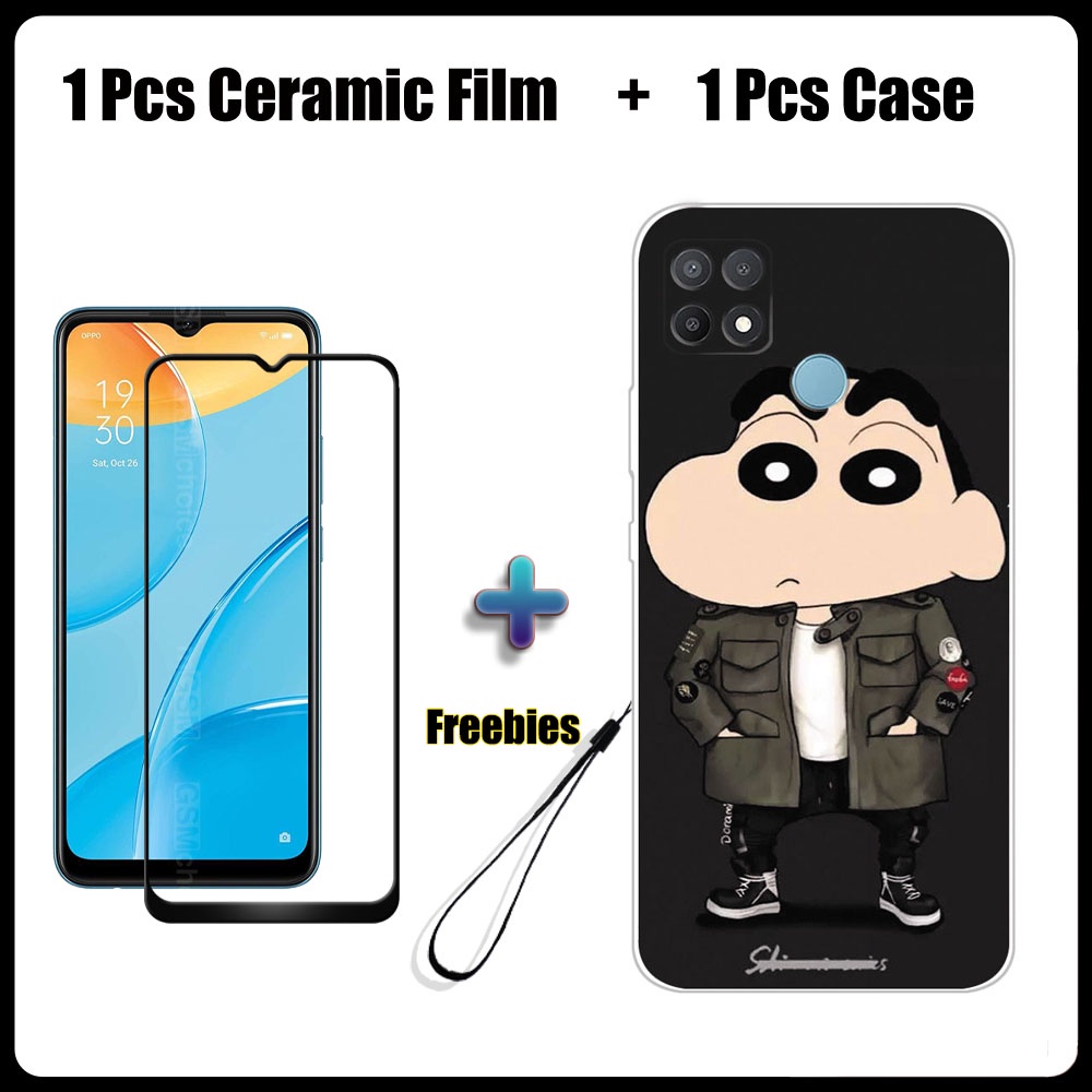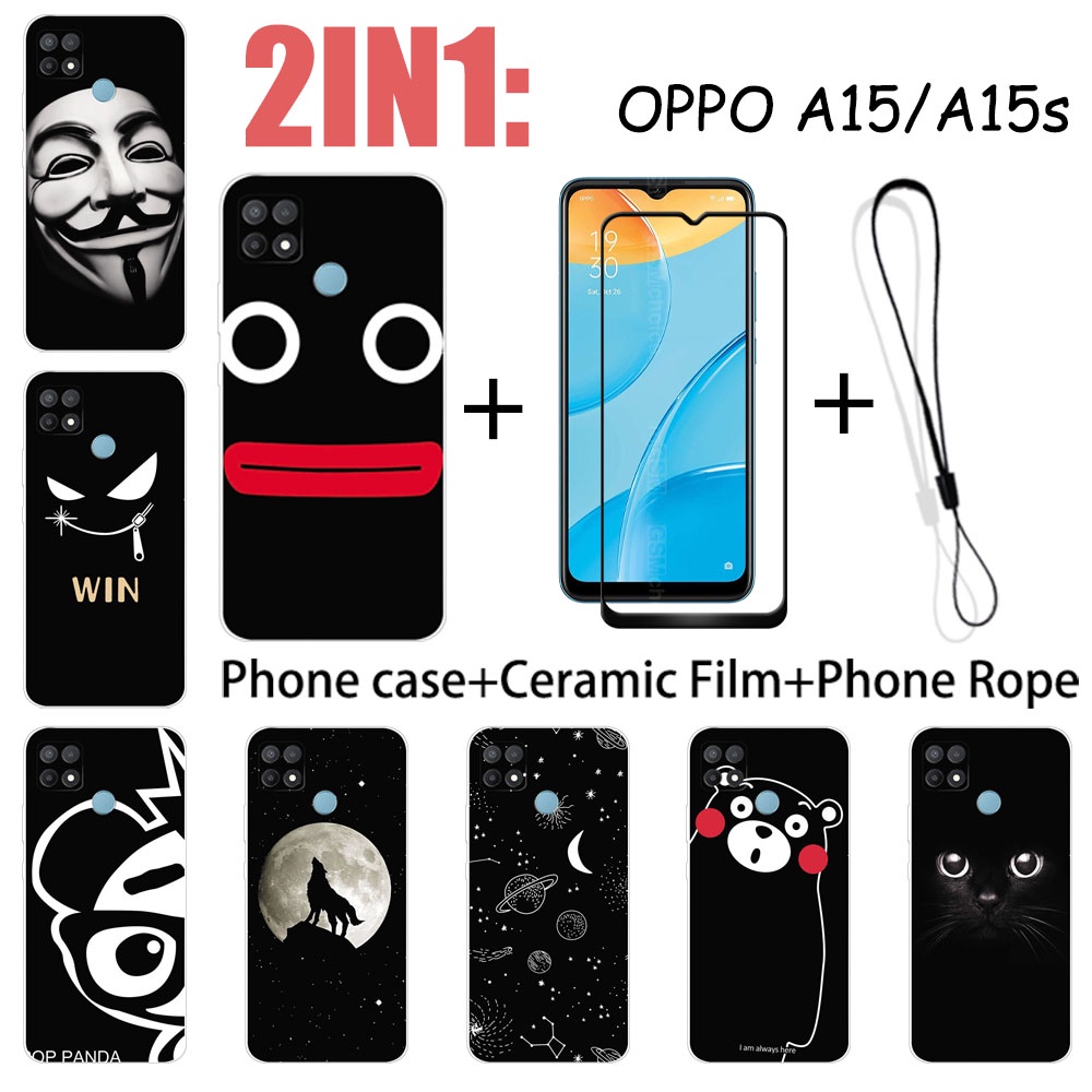 2 IN 1 OPPO A15 15s Case with Tempered Glass Ceramic Film Screen Protector Black Colour Series