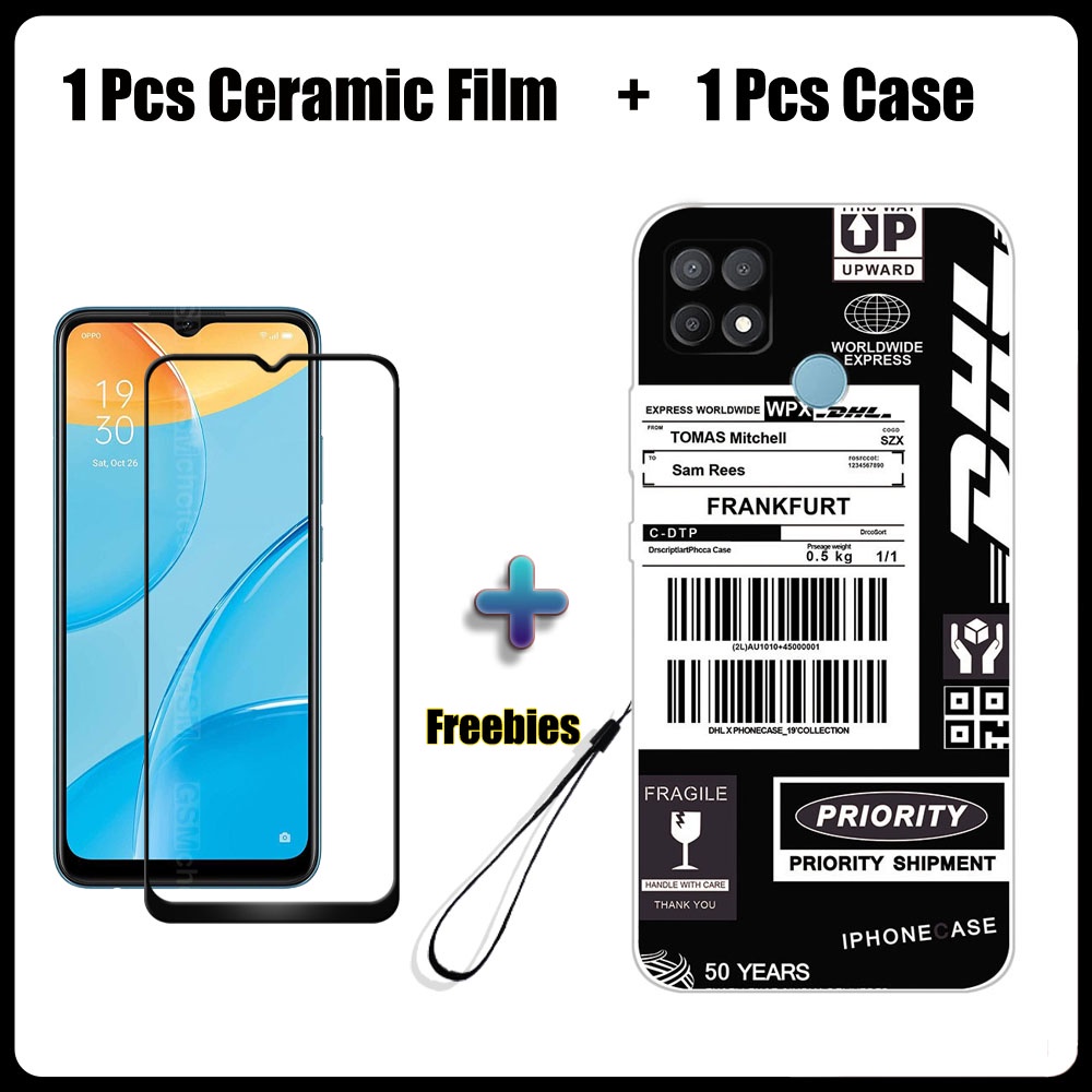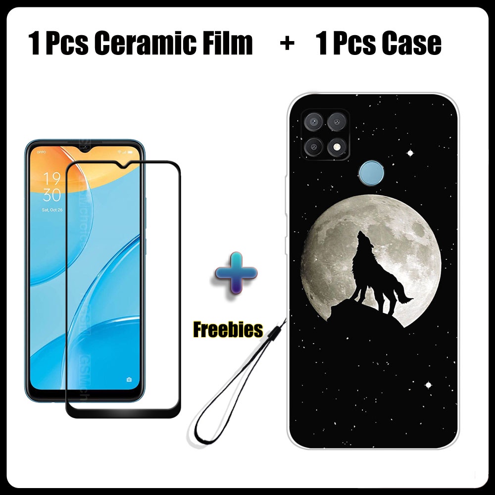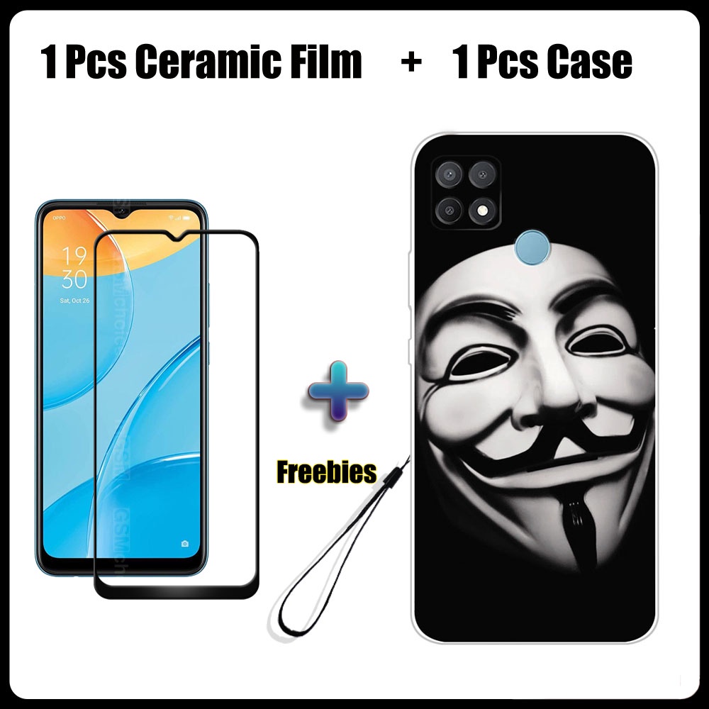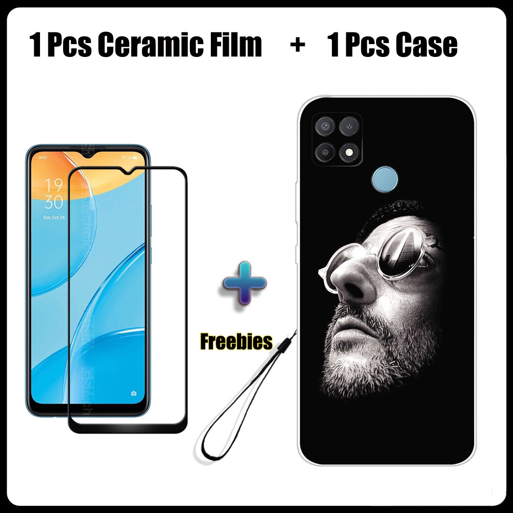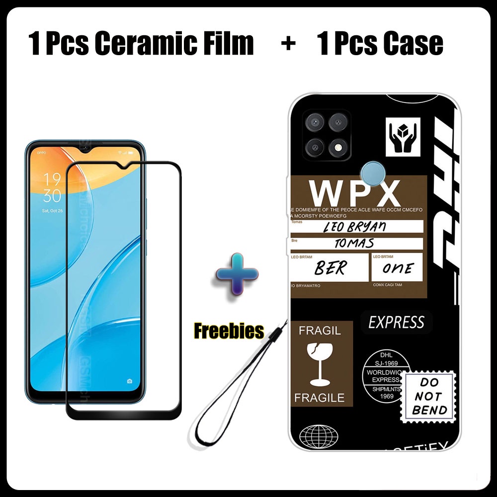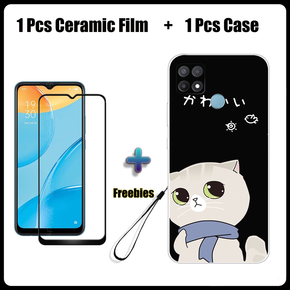 2 IN 1 OPPO A15 15s Case with Tempered Glass Ceramic Film Screen Protector Black Colour Series