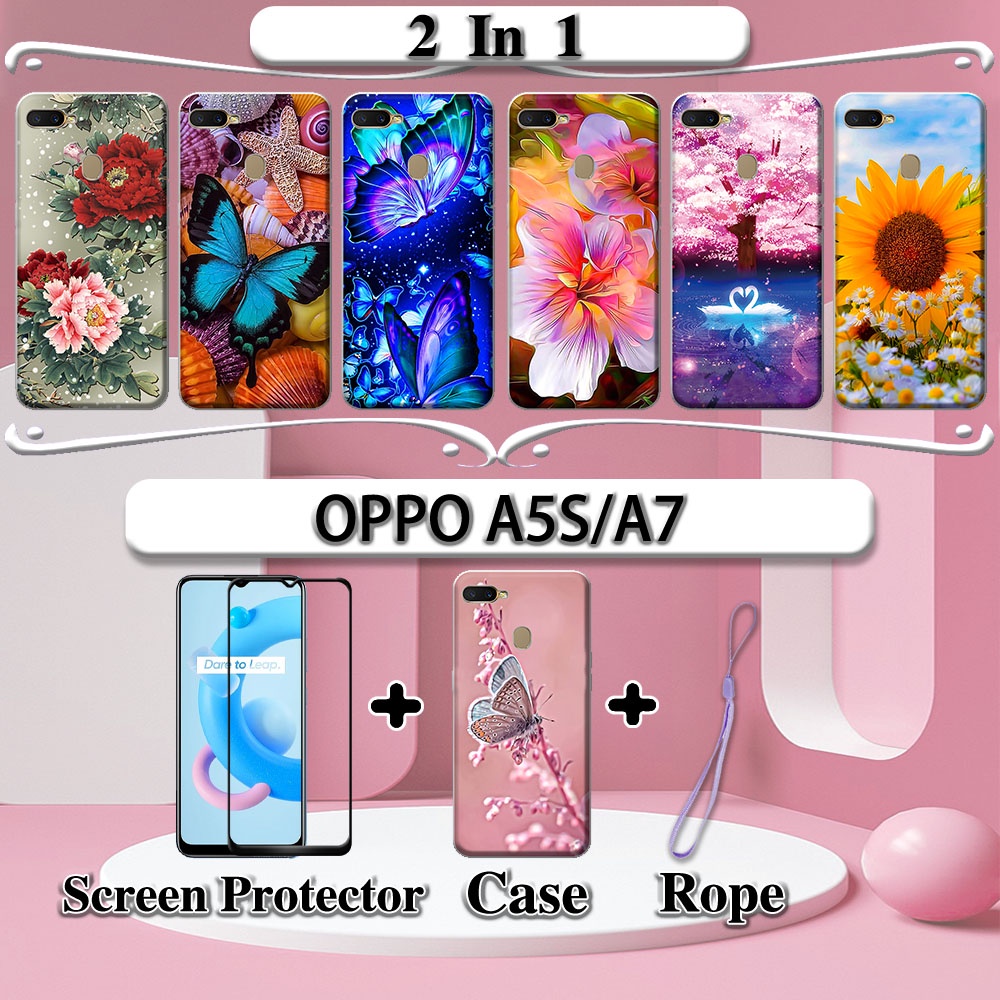 2 IN 1 OPPO A5S A7 Case with Ceramic Screen Protector Flowers