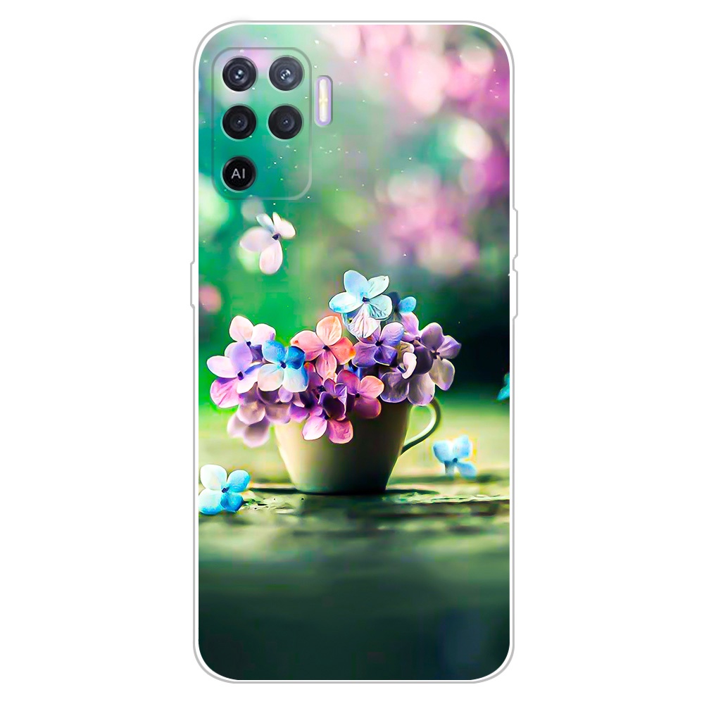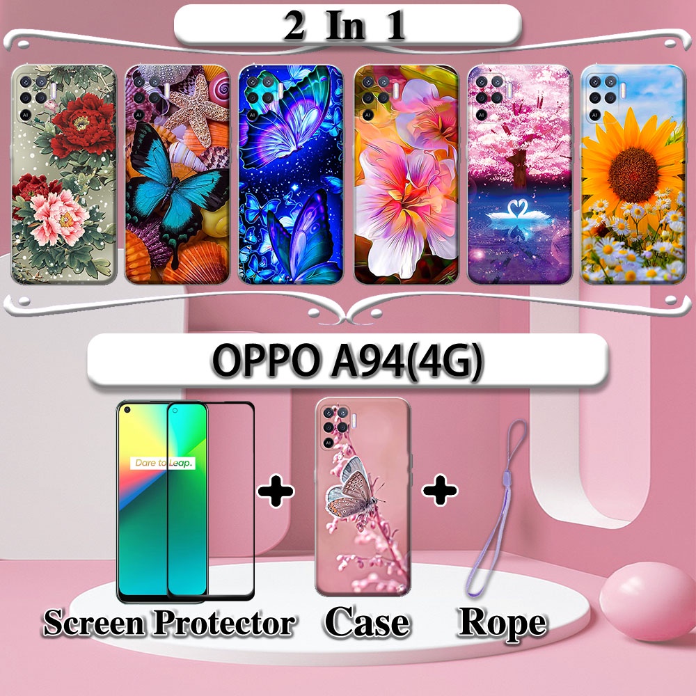 2 IN 1 OPPO A94(4G) Case with Tempered Glass Curved Ceramic Screen Protector Flowers