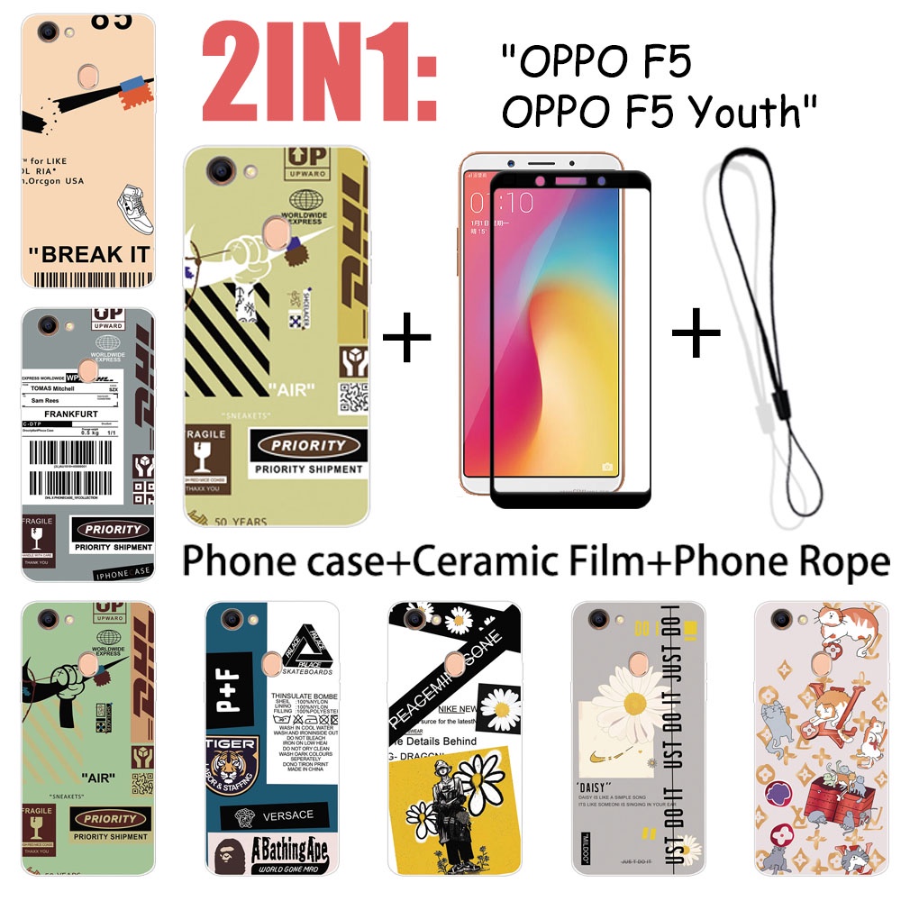 2 IN 1 OPPO F5 OPPO F5 Youth Case with Tempered Glass Ceramic Film Screen Protector Fashion Series