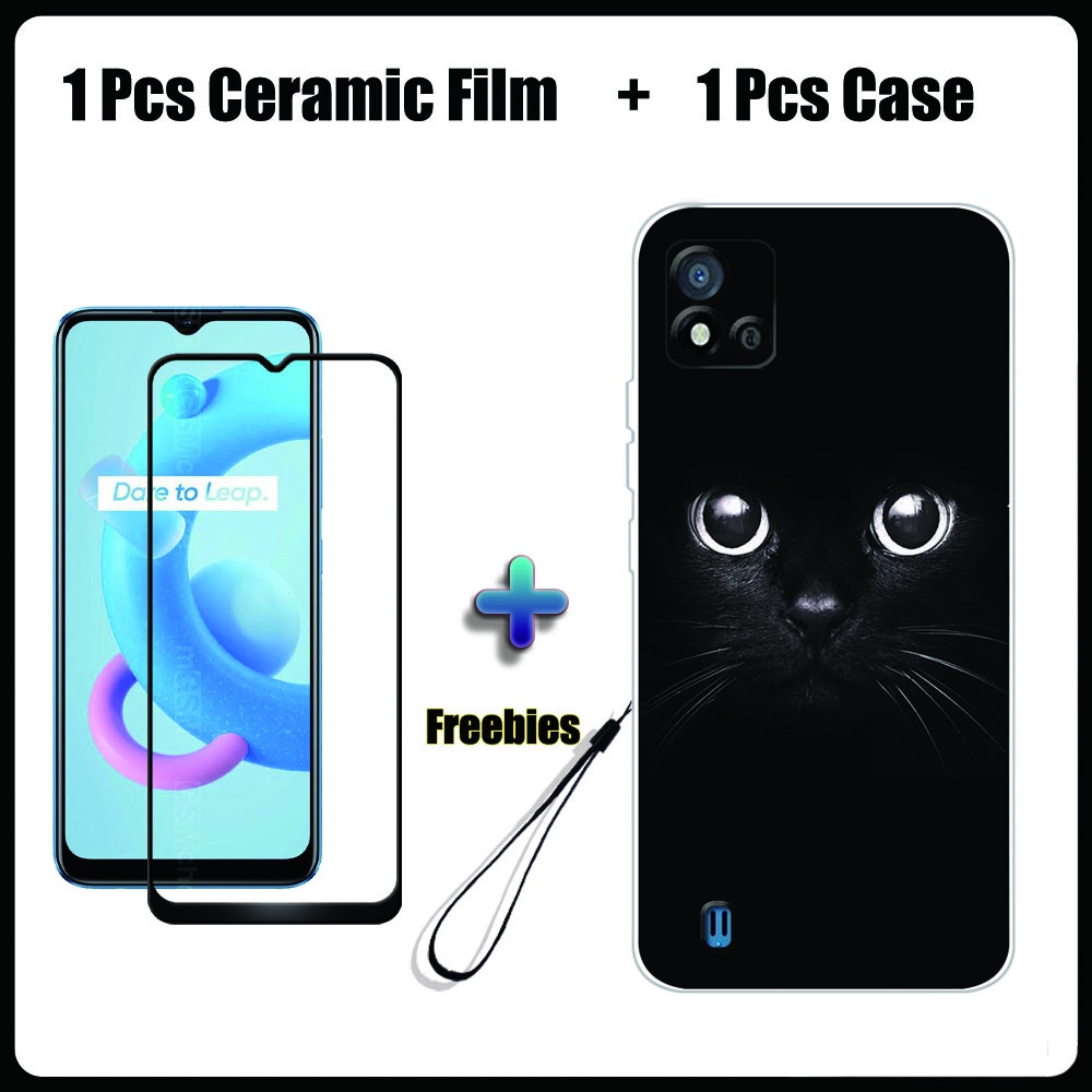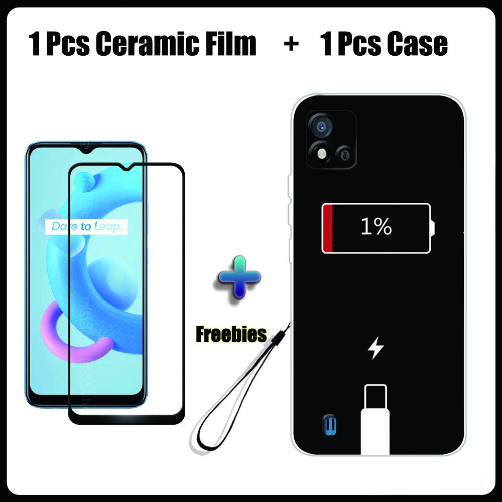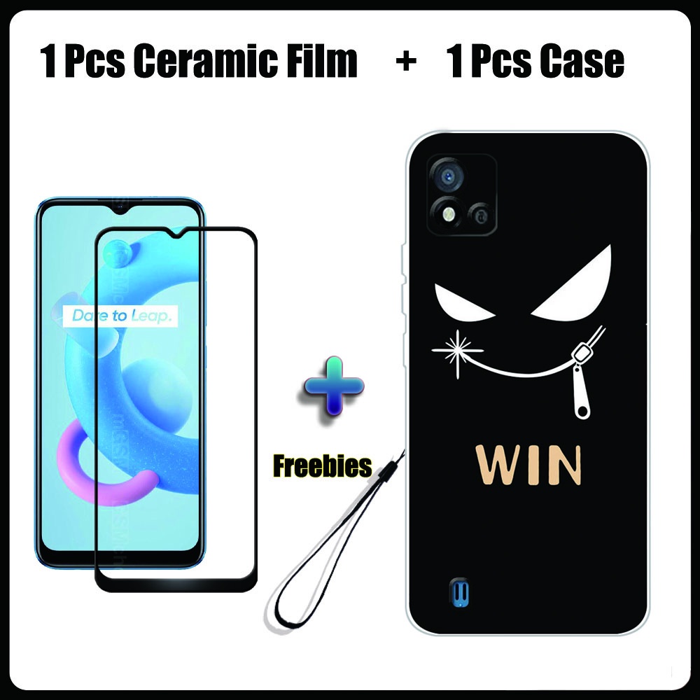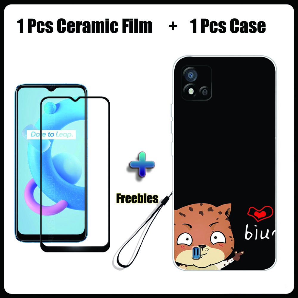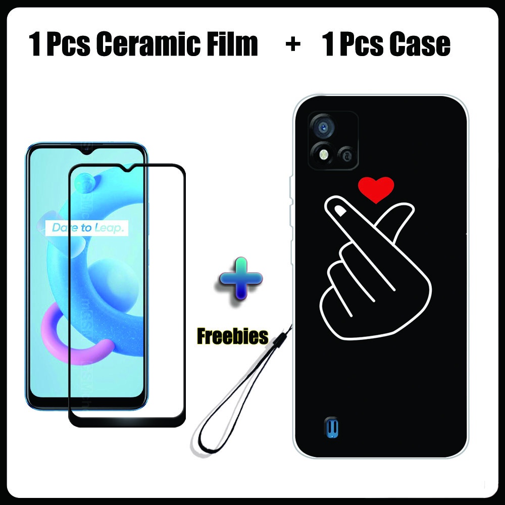 2 IN 1 Realme C11 2021 Case with Tempered Glass Ceramic Film Screen Protector Black Colour Series