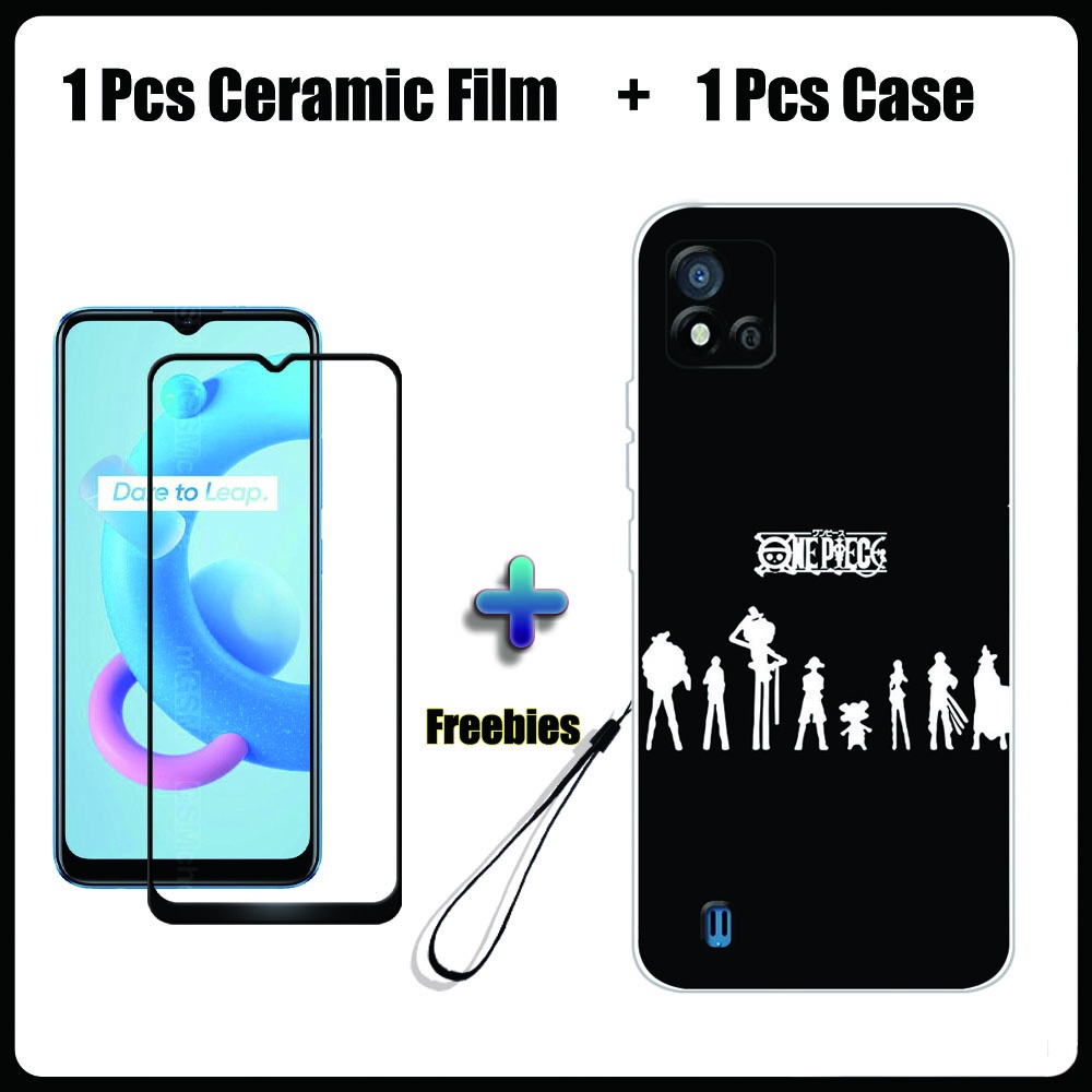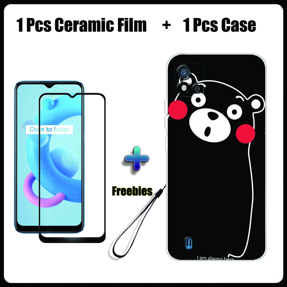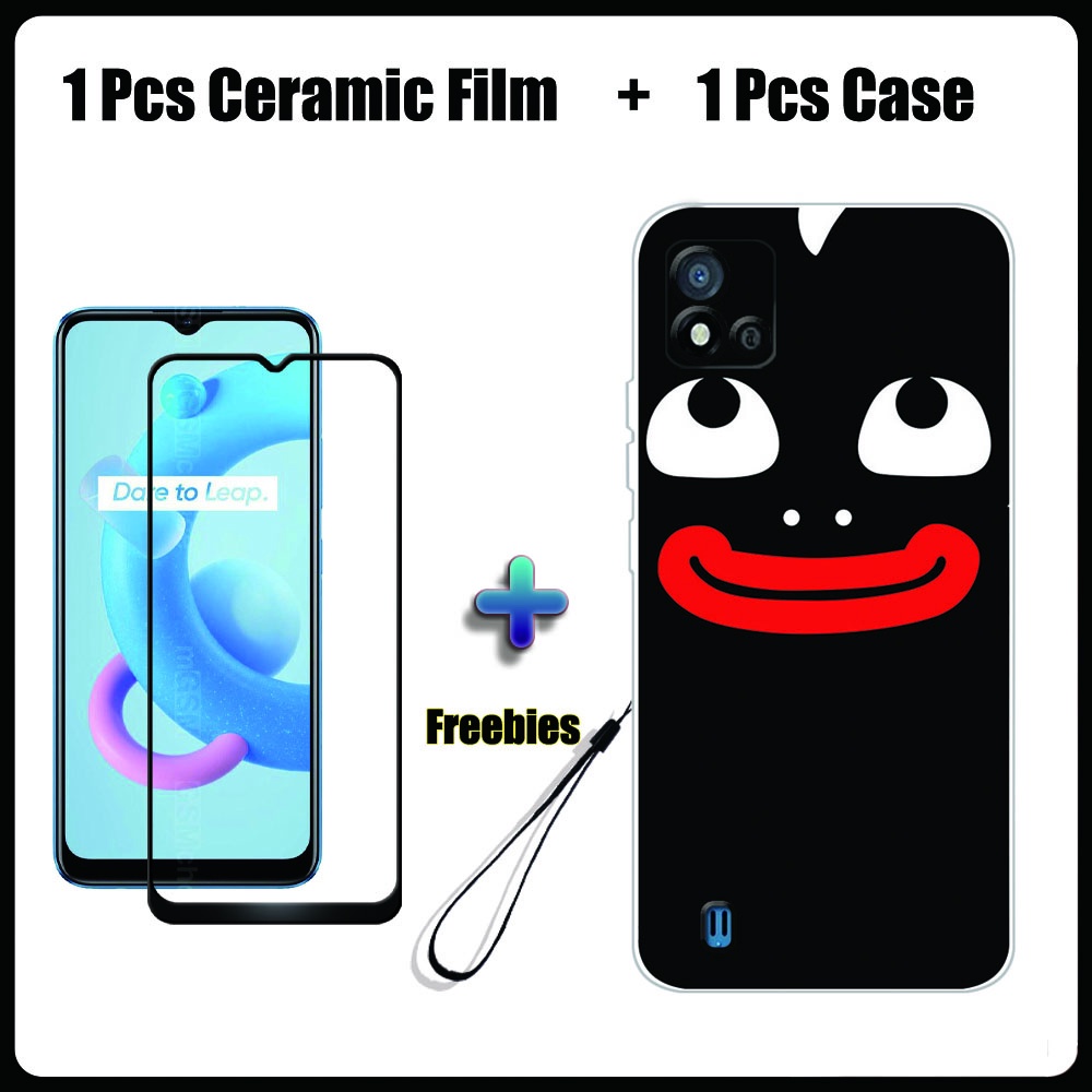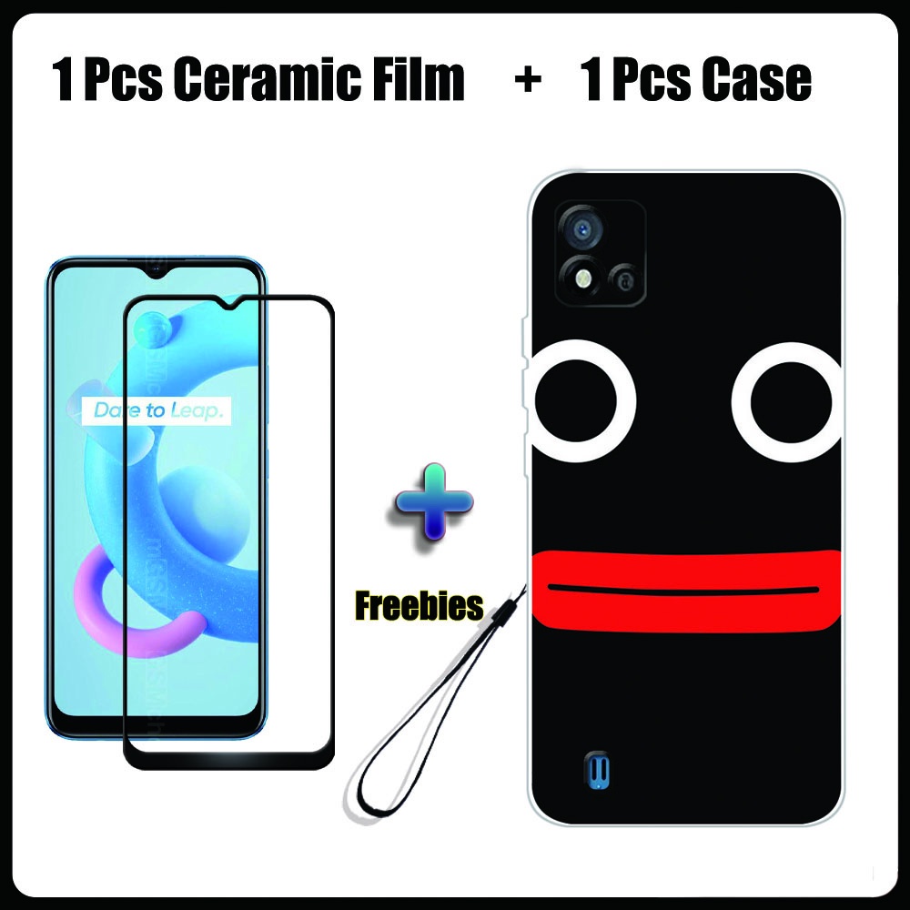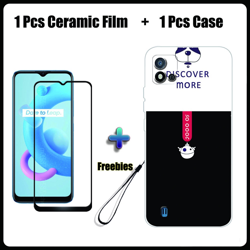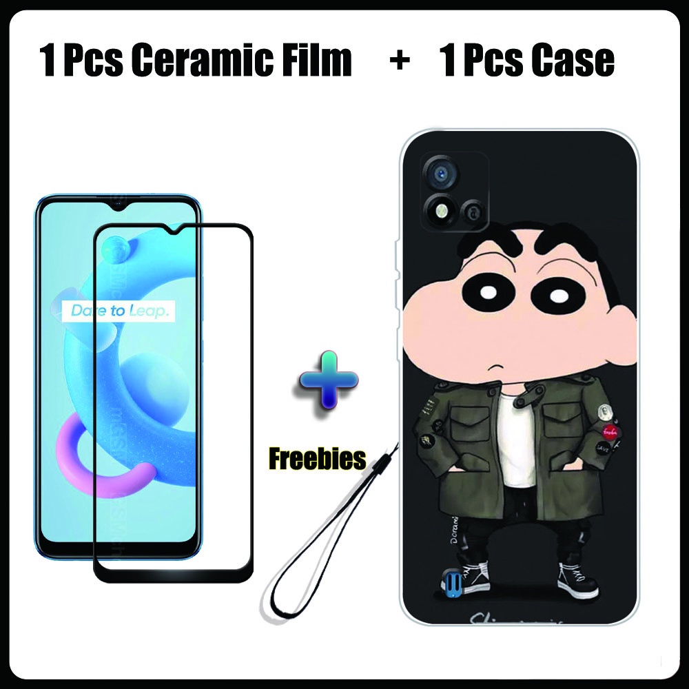 2 IN 1 Realme C11 2021 Case with Tempered Glass Ceramic Film Screen Protector Black Colour Series