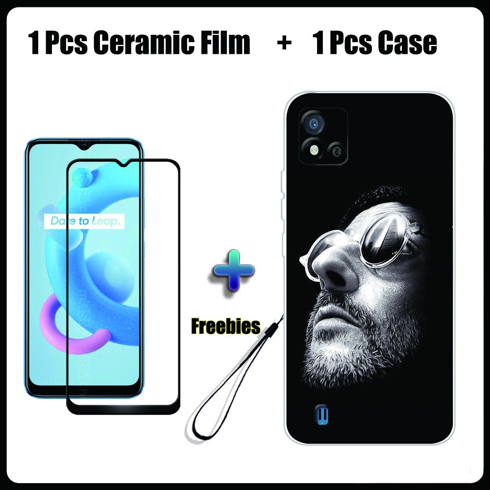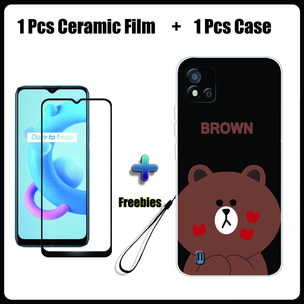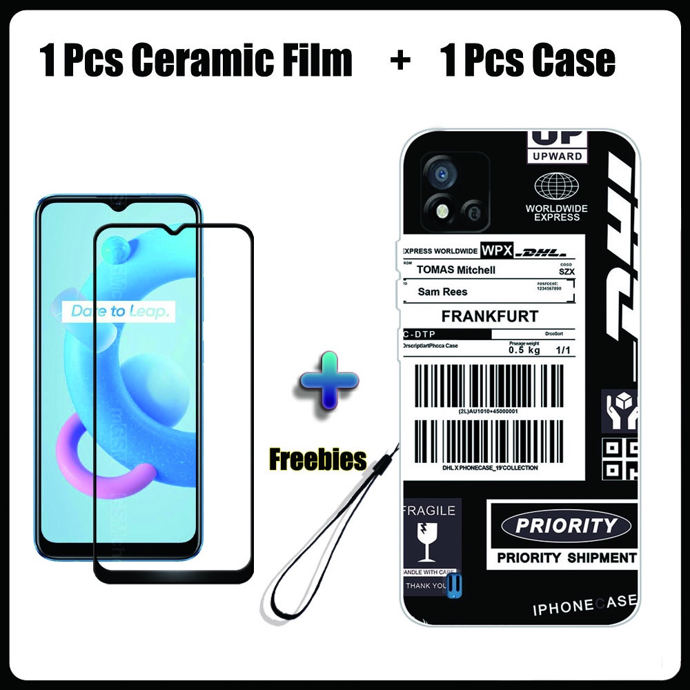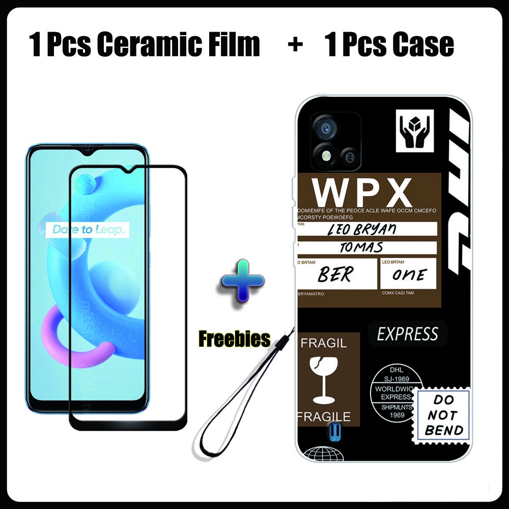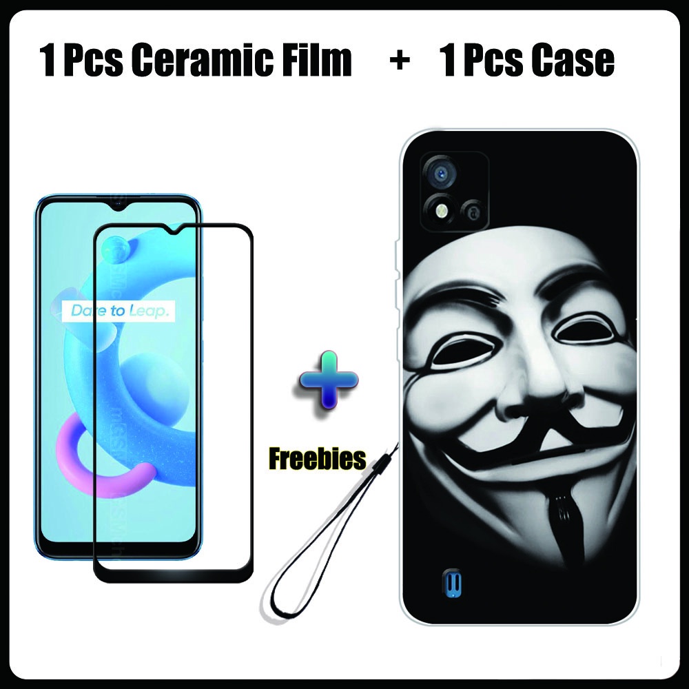 2 IN 1 Realme C11 2021 Case with Tempered Glass Ceramic Film Screen Protector Black Colour Series