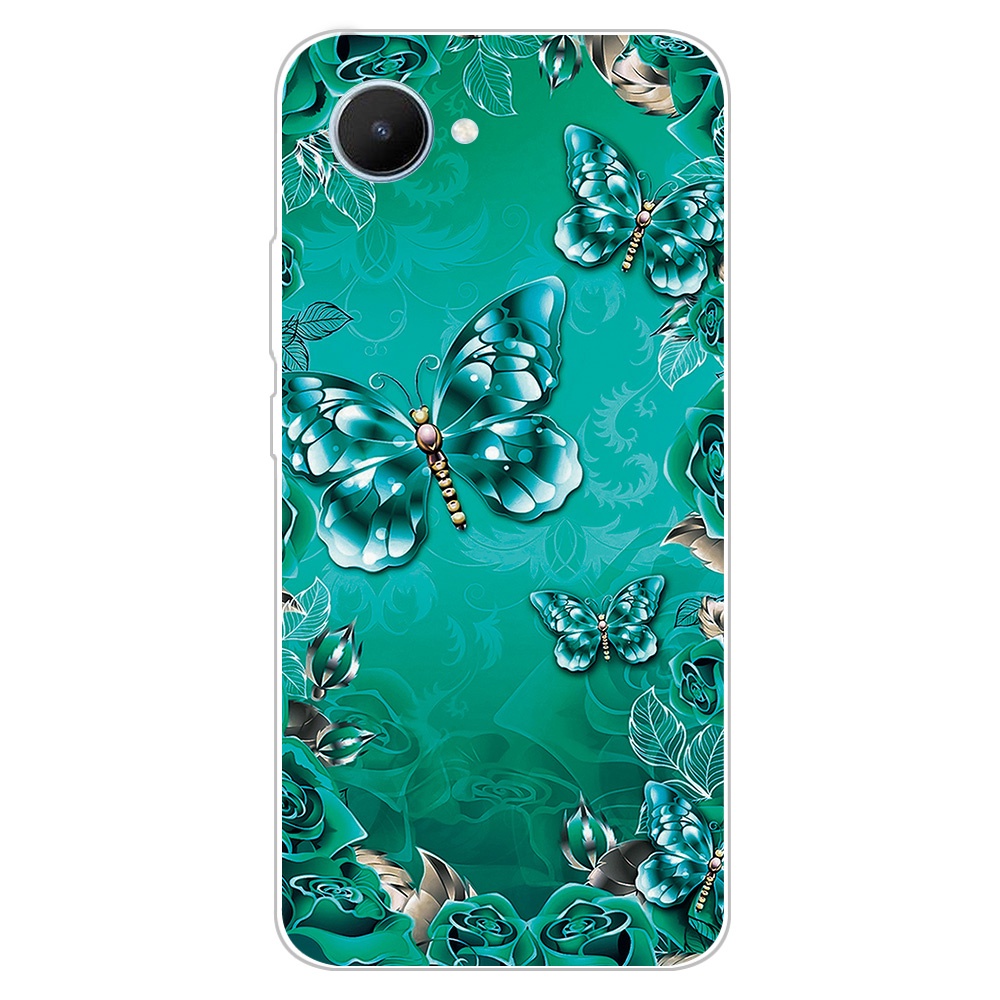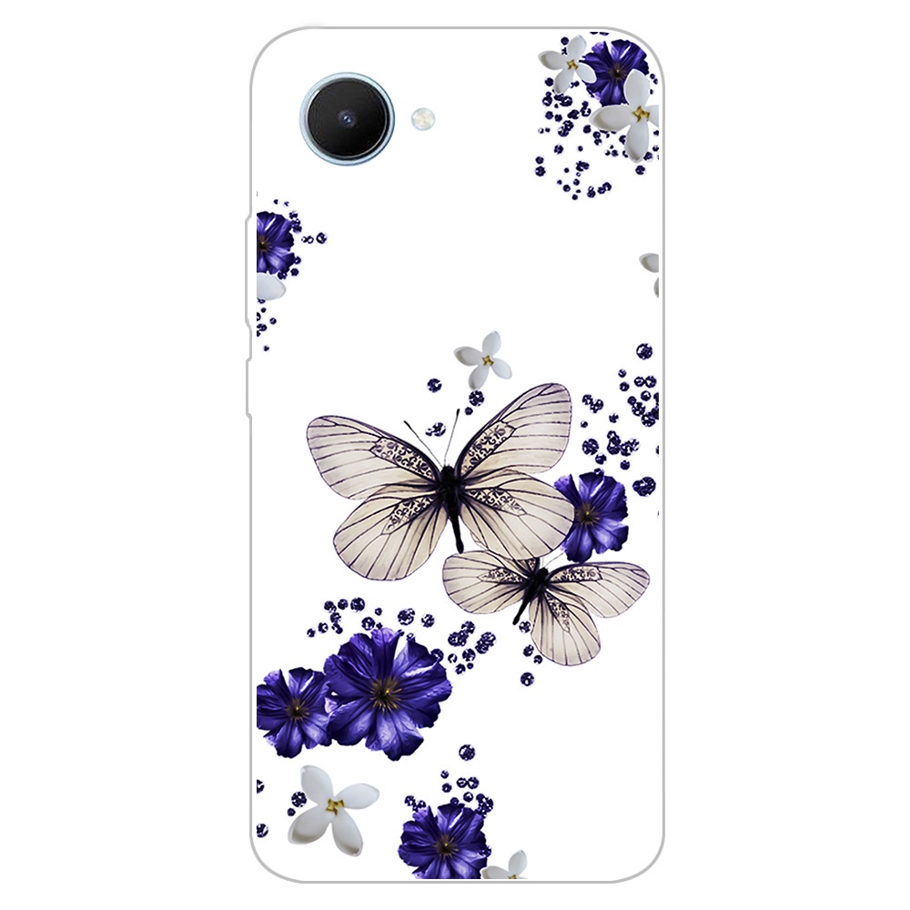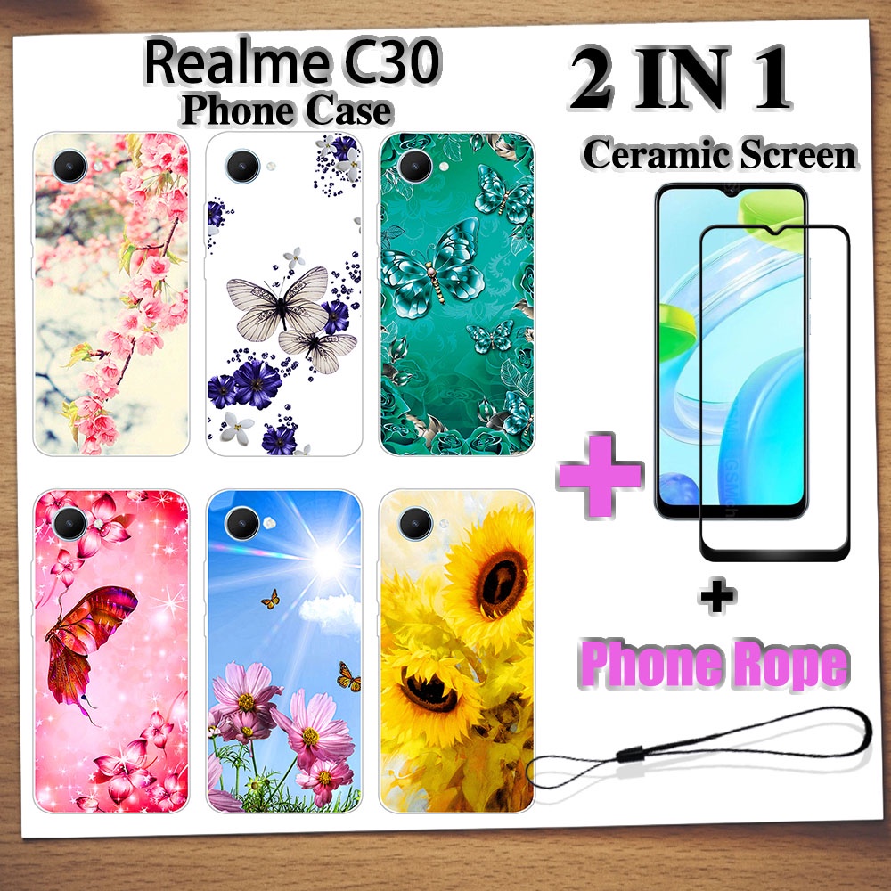 2 IN 1 Realme C30 Phone Case with Tempered Glass Ceramic Protector Screen Curved Tempered Film Butterfly