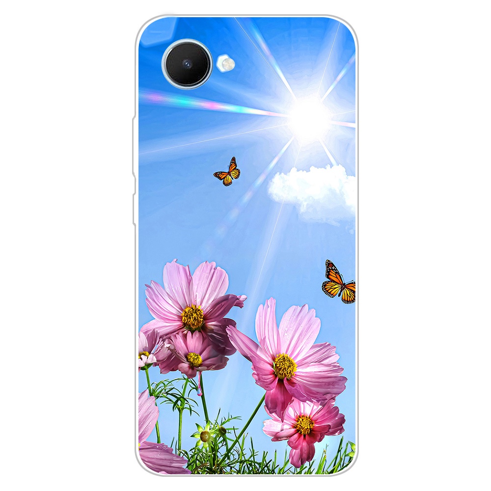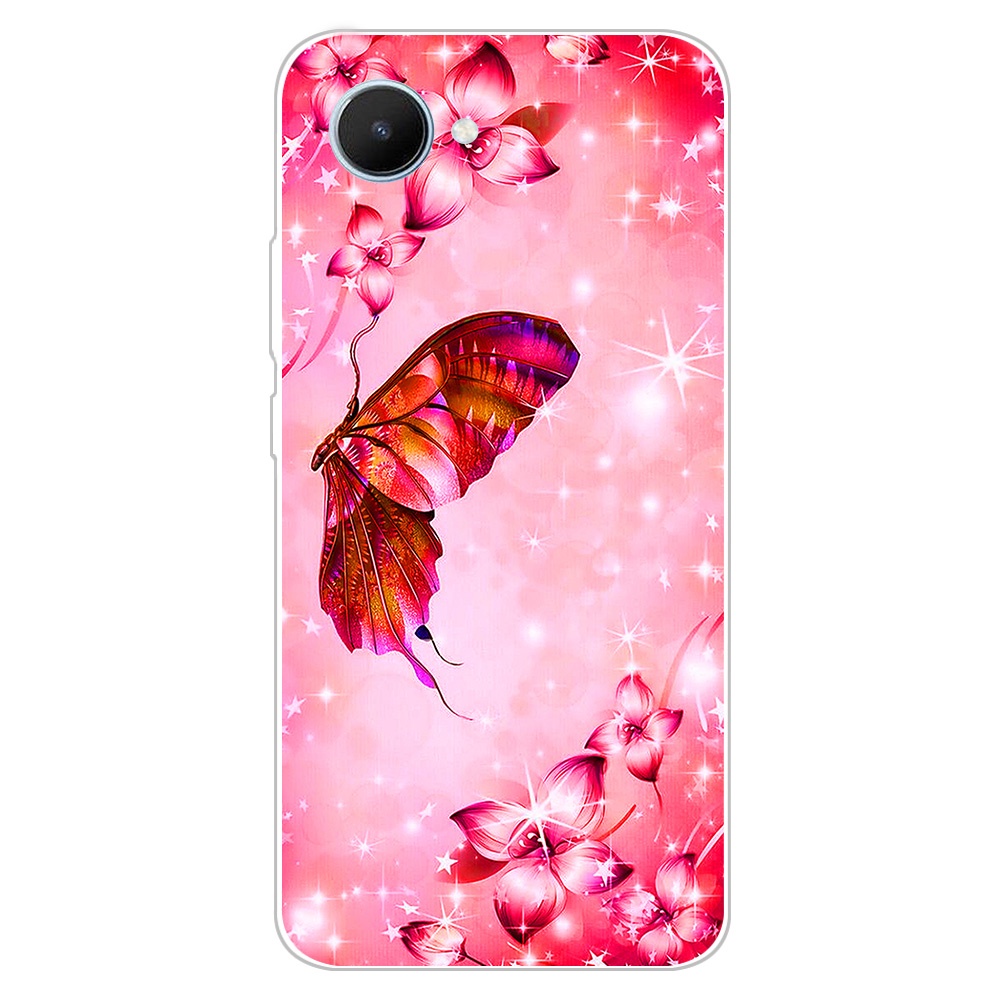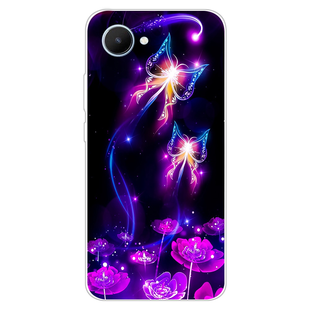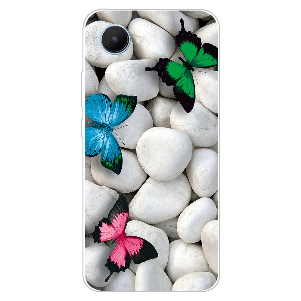 2 IN 1 Realme C30 Phone Case with Tempered Glass Ceramic Protector Screen Curved Tempered Film Butterfly