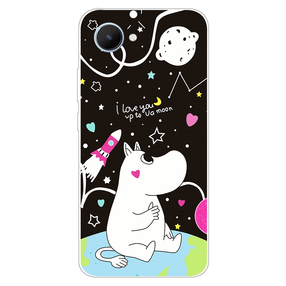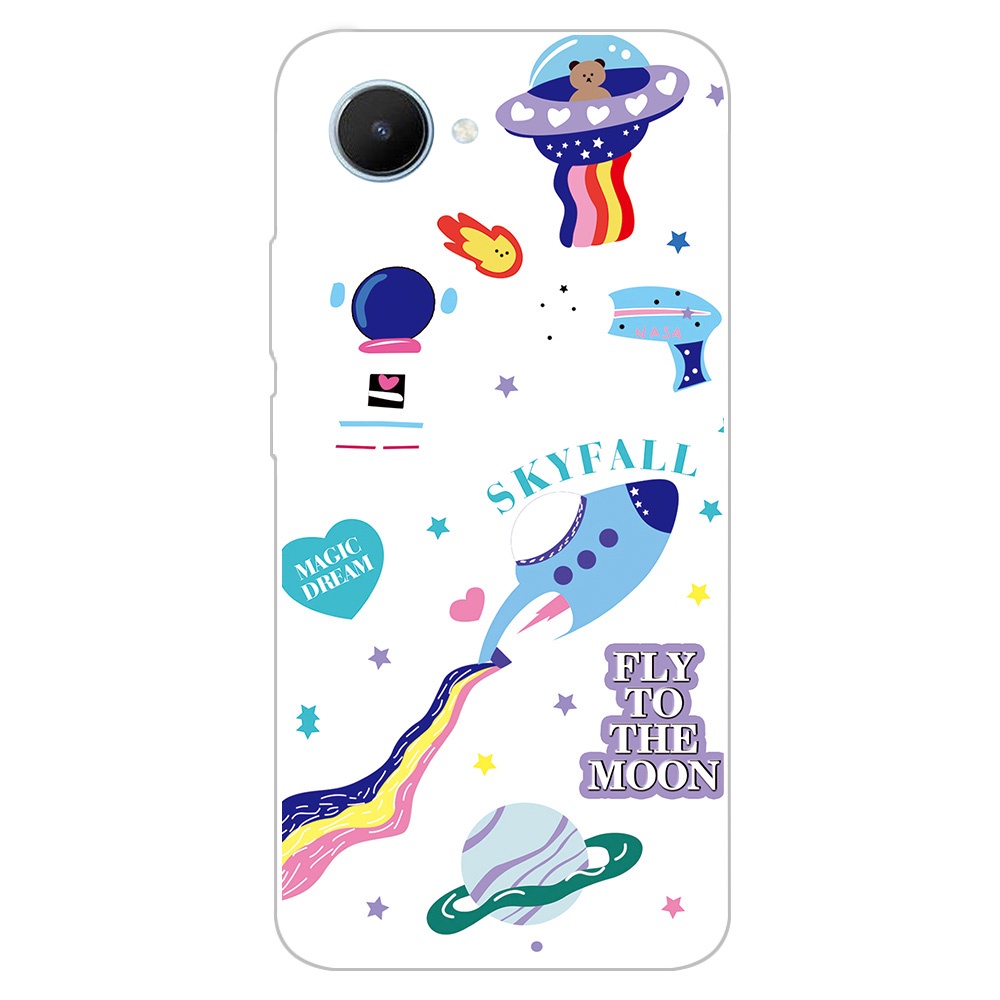 2 IN 1 Realme C30 Phone Case with Tempered Glass Ceramic Protector Screen Curved Tempered Film Cartoon