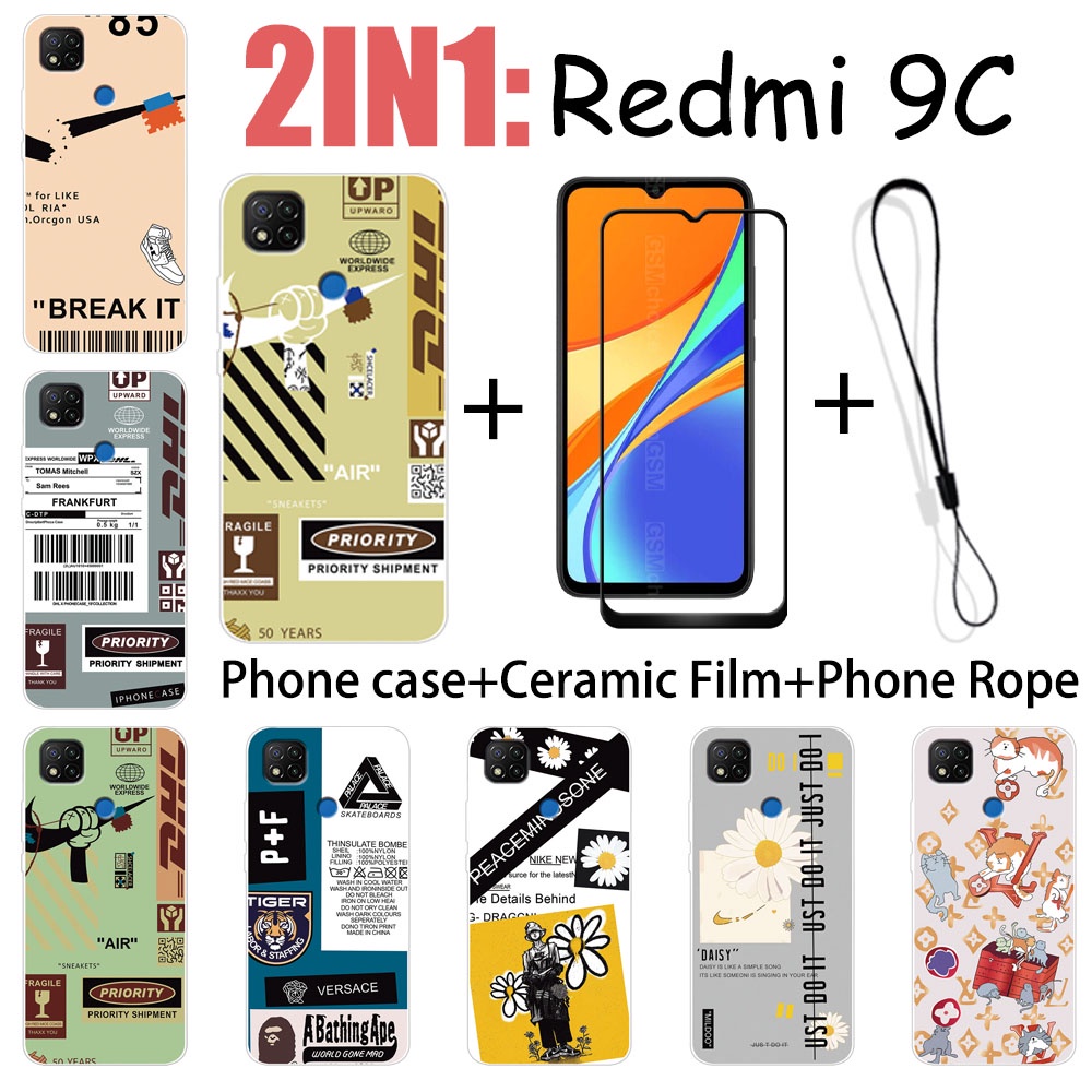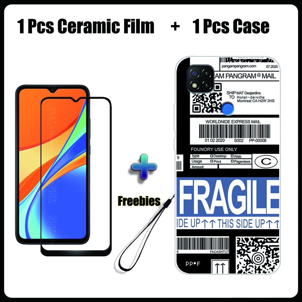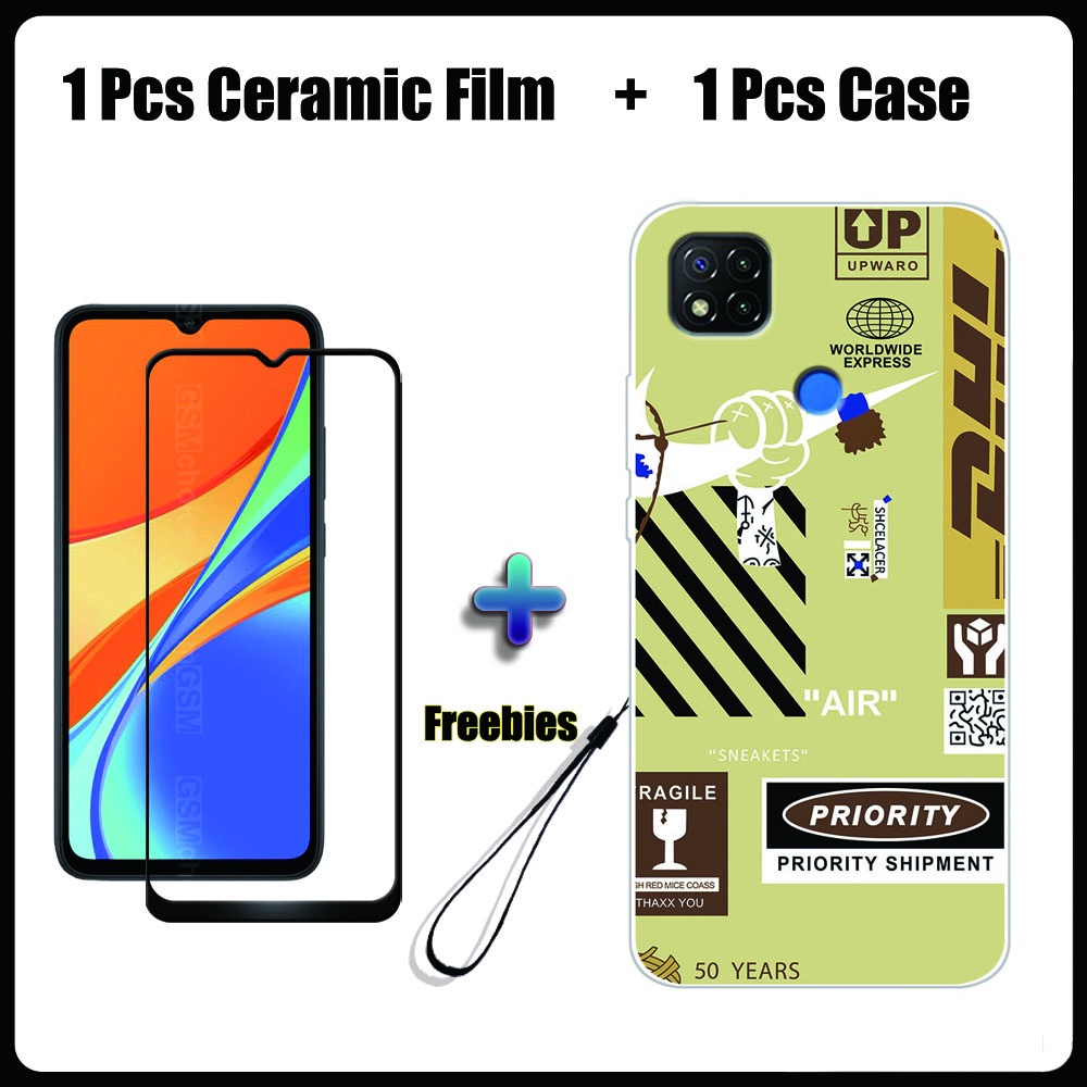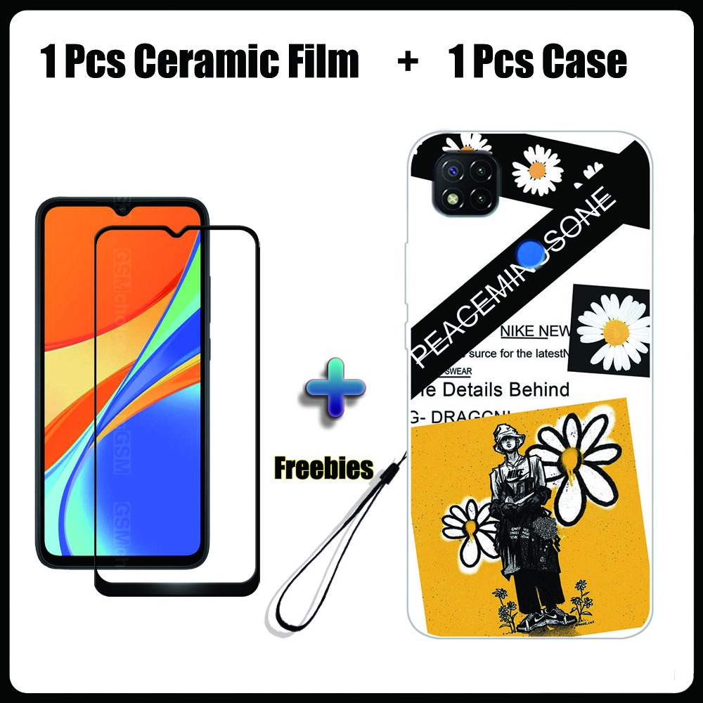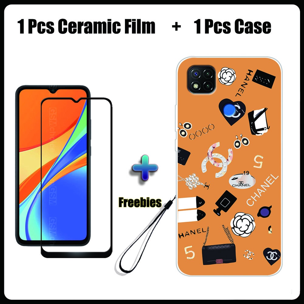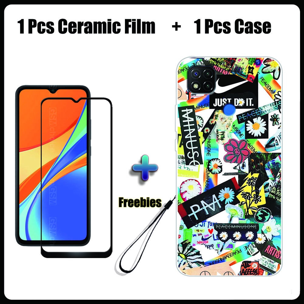 2 IN 1 Redmi 9C Case with Tempered Glass Ceramic Film Screen Protector Fashion Series