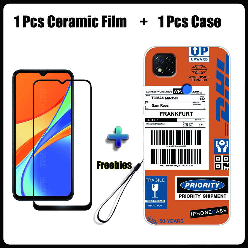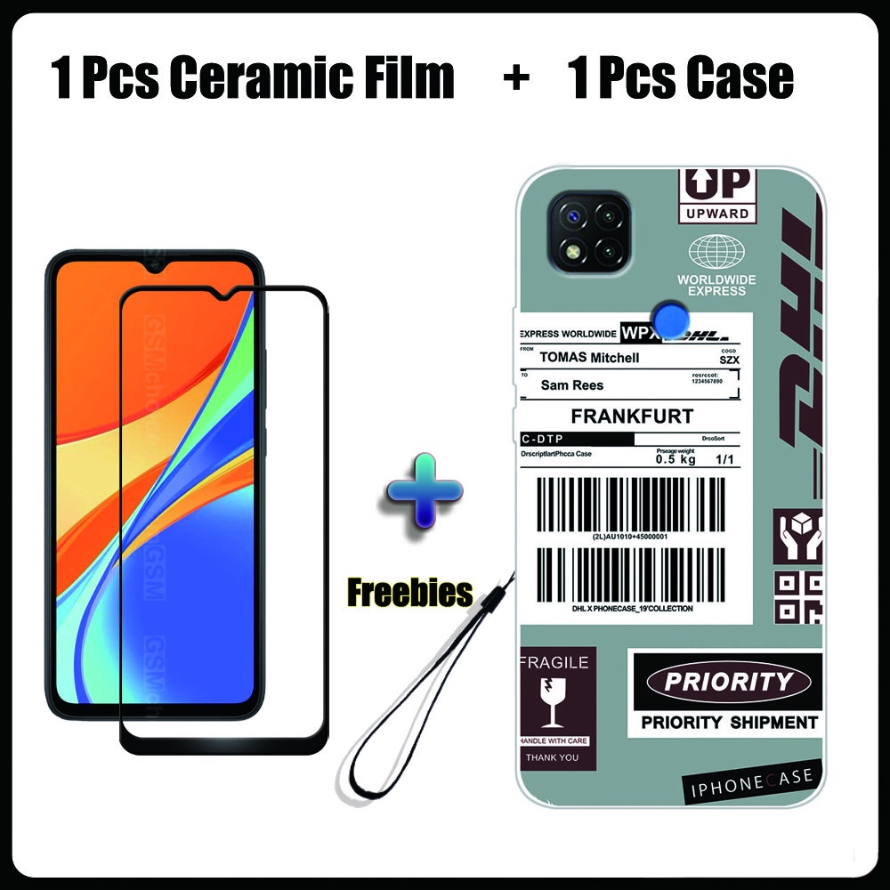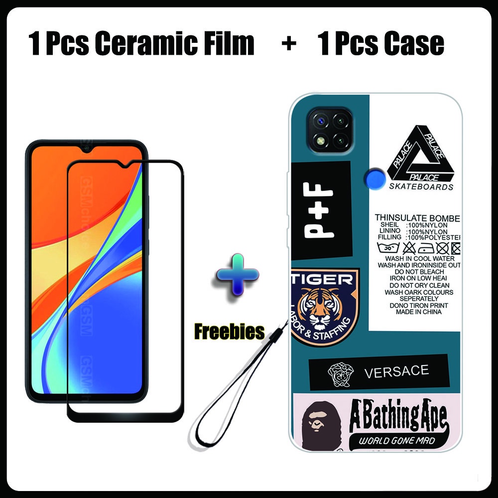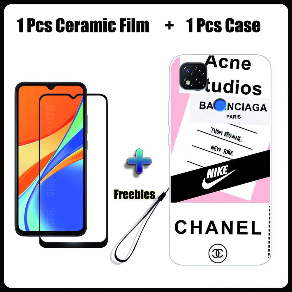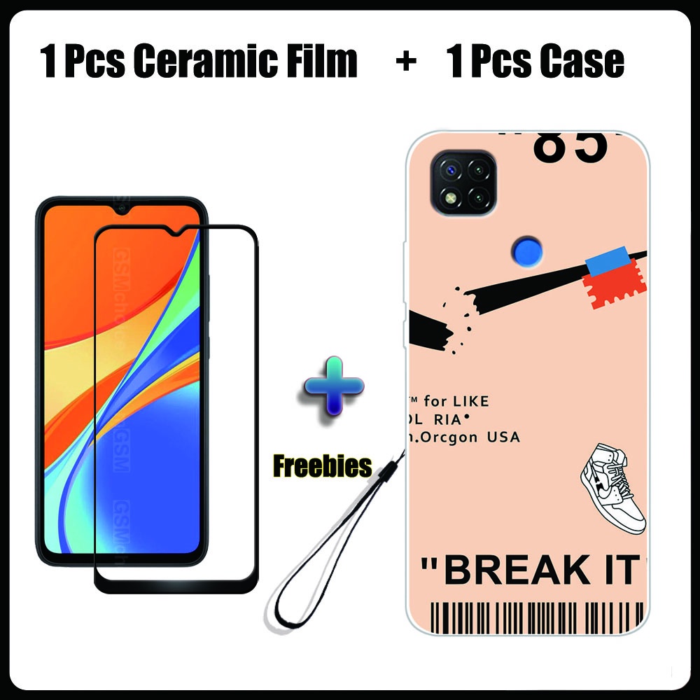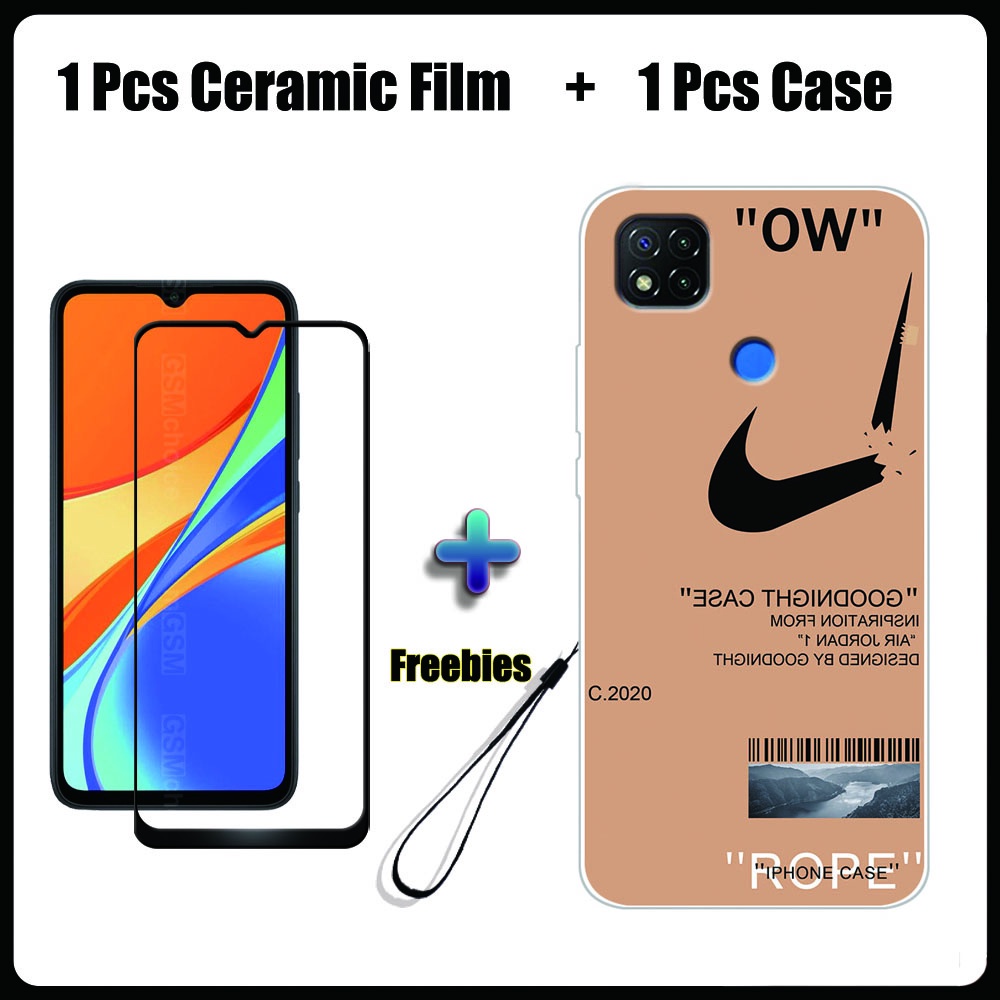 2 IN 1 Redmi 9C Case with Tempered Glass Ceramic Film Screen Protector Fashion Series