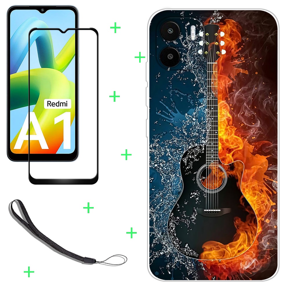 2 IN 1 Redmi A1 Case with Tempered Glass Curved Ceramic Screen Protector Music