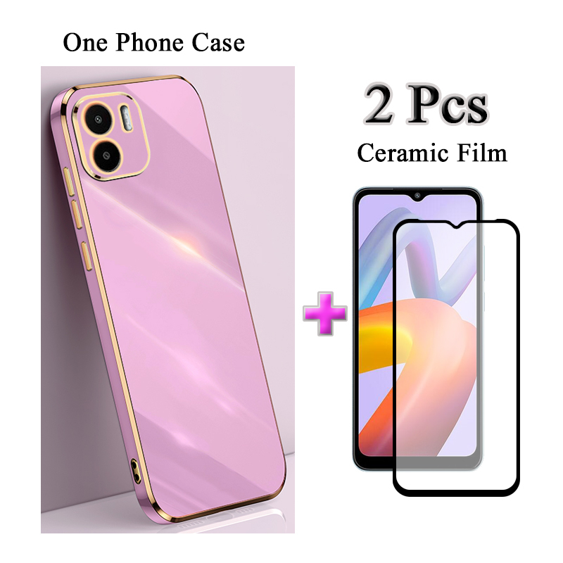 2 IN 1 Redmi A2 Plating Casing With Two Piece Ceramic Protector Screen Curved Tempered Film