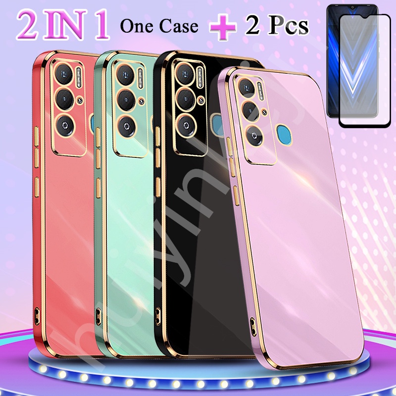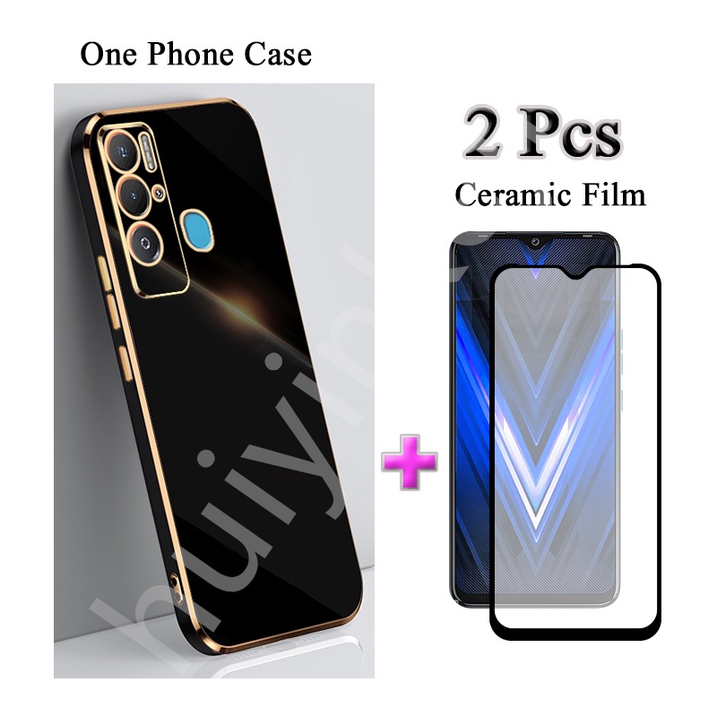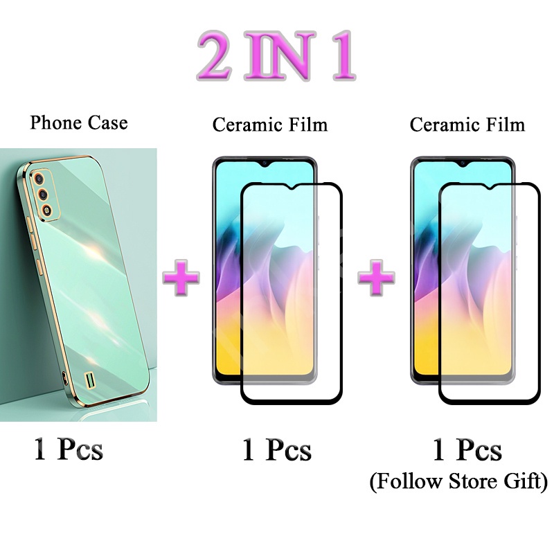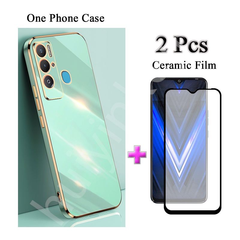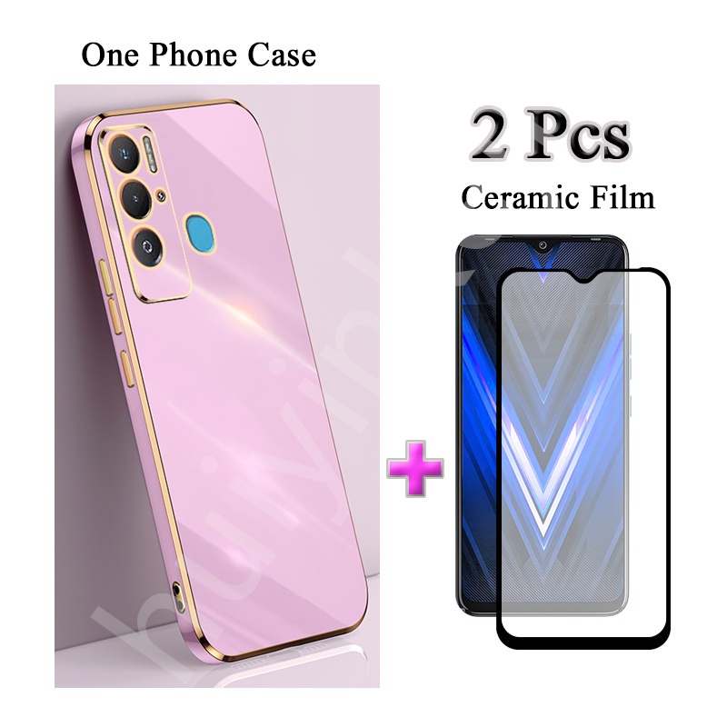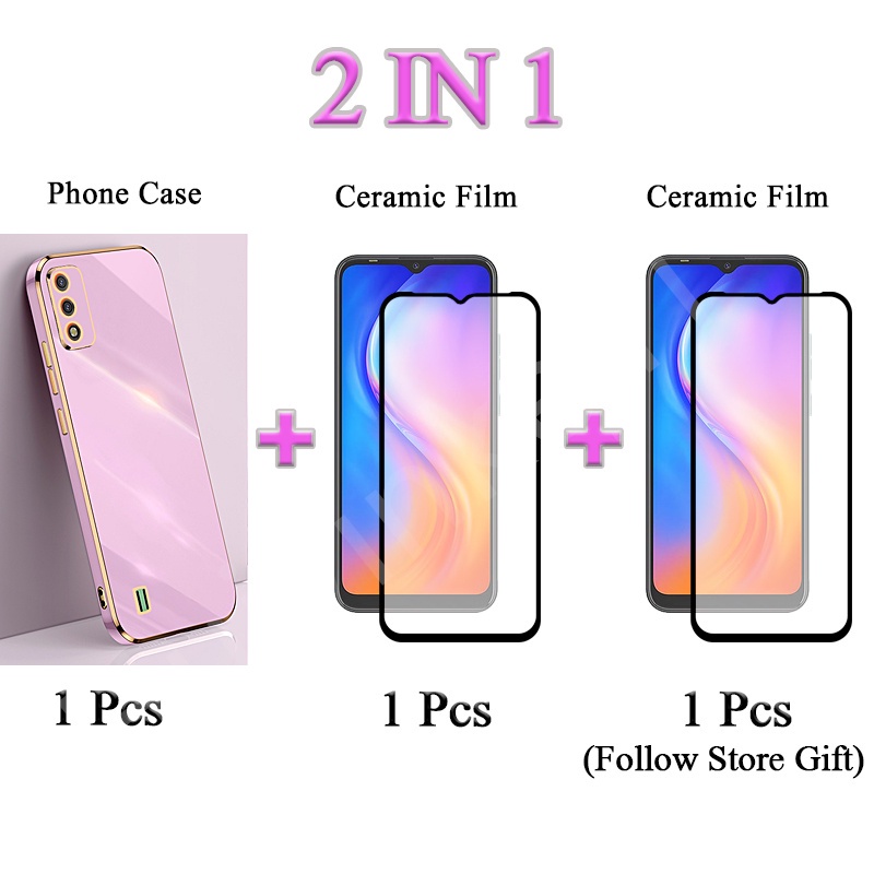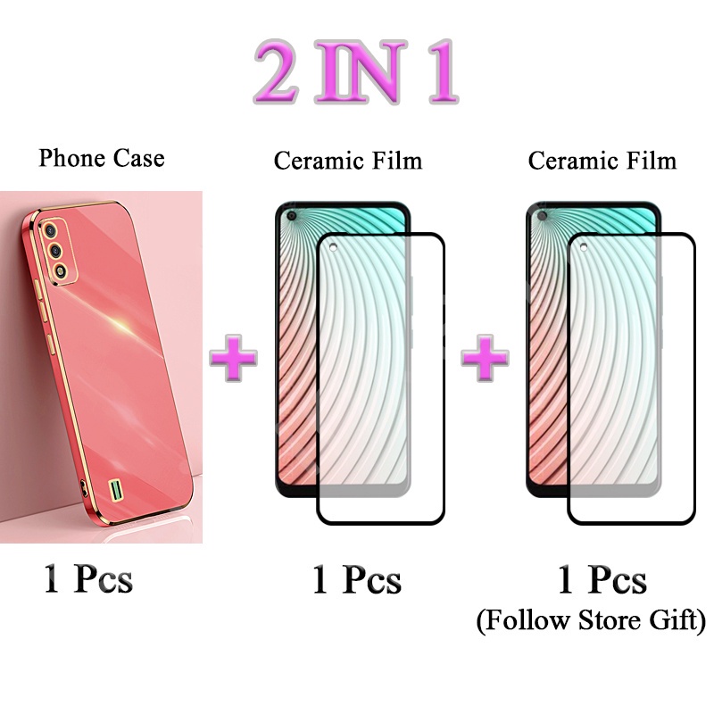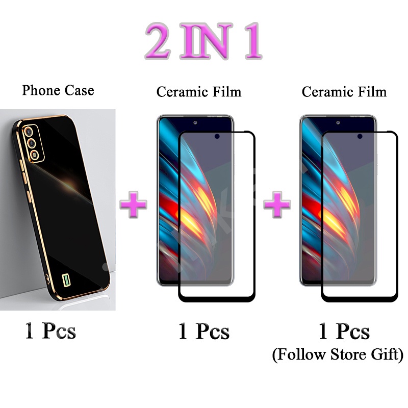 2 IN 1 Tecno Pova Neo Tecno LE6 Traight Edge Electroplated Case With Two Piece Ceramic Protector Screen