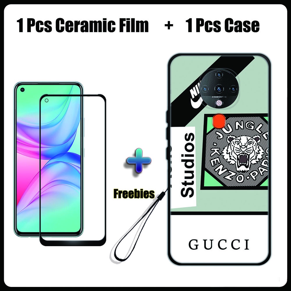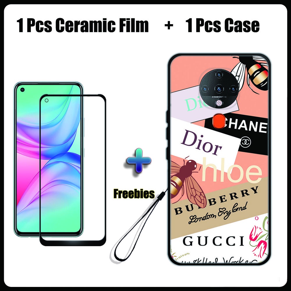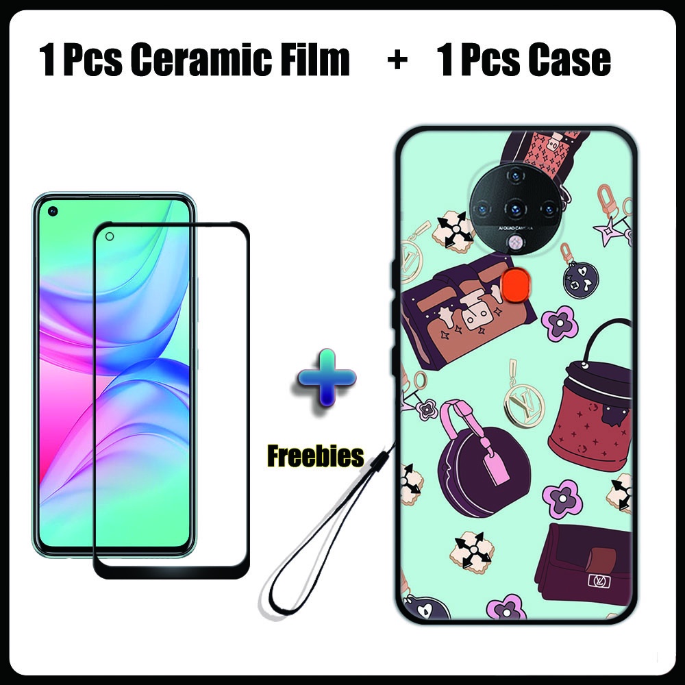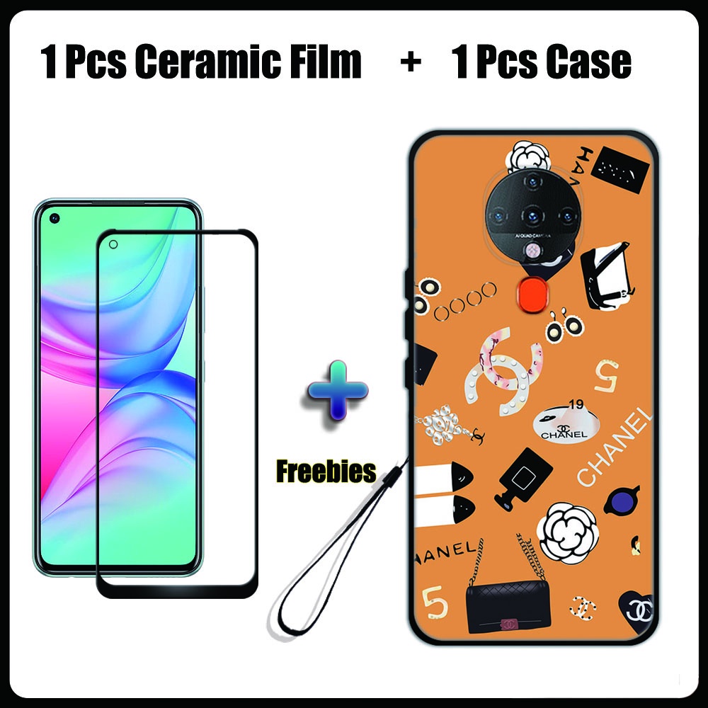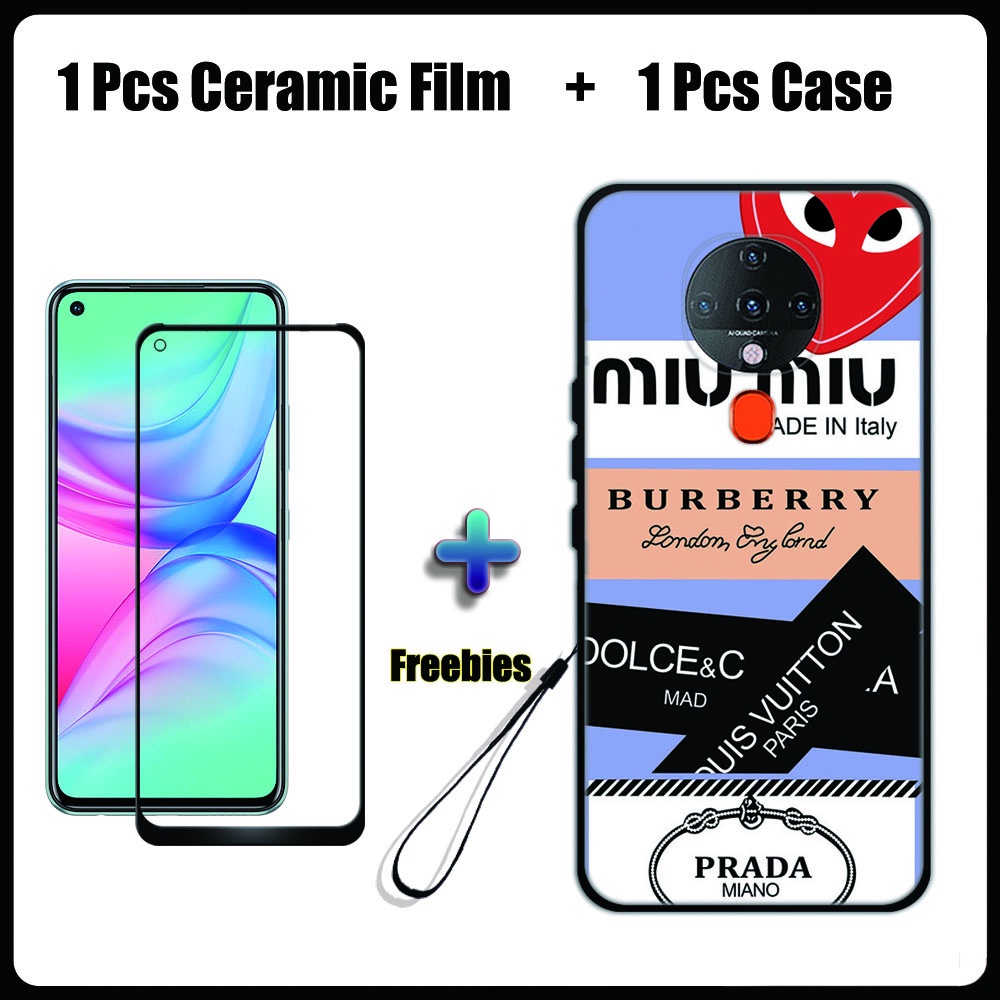2 IN 1 Tecno Spark 6 Case with Tempered Glass Ceramic Film Screen Protector Fashion Series