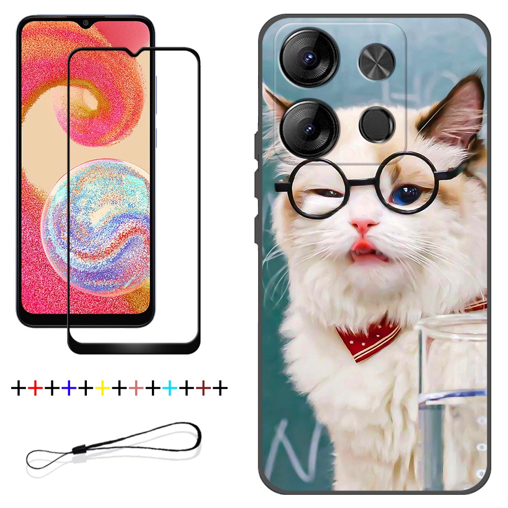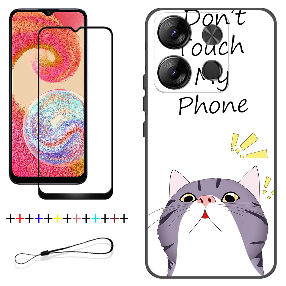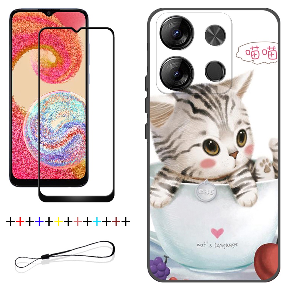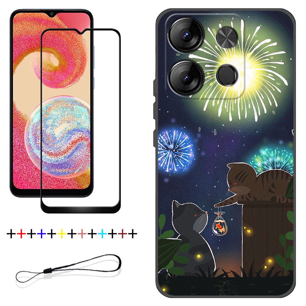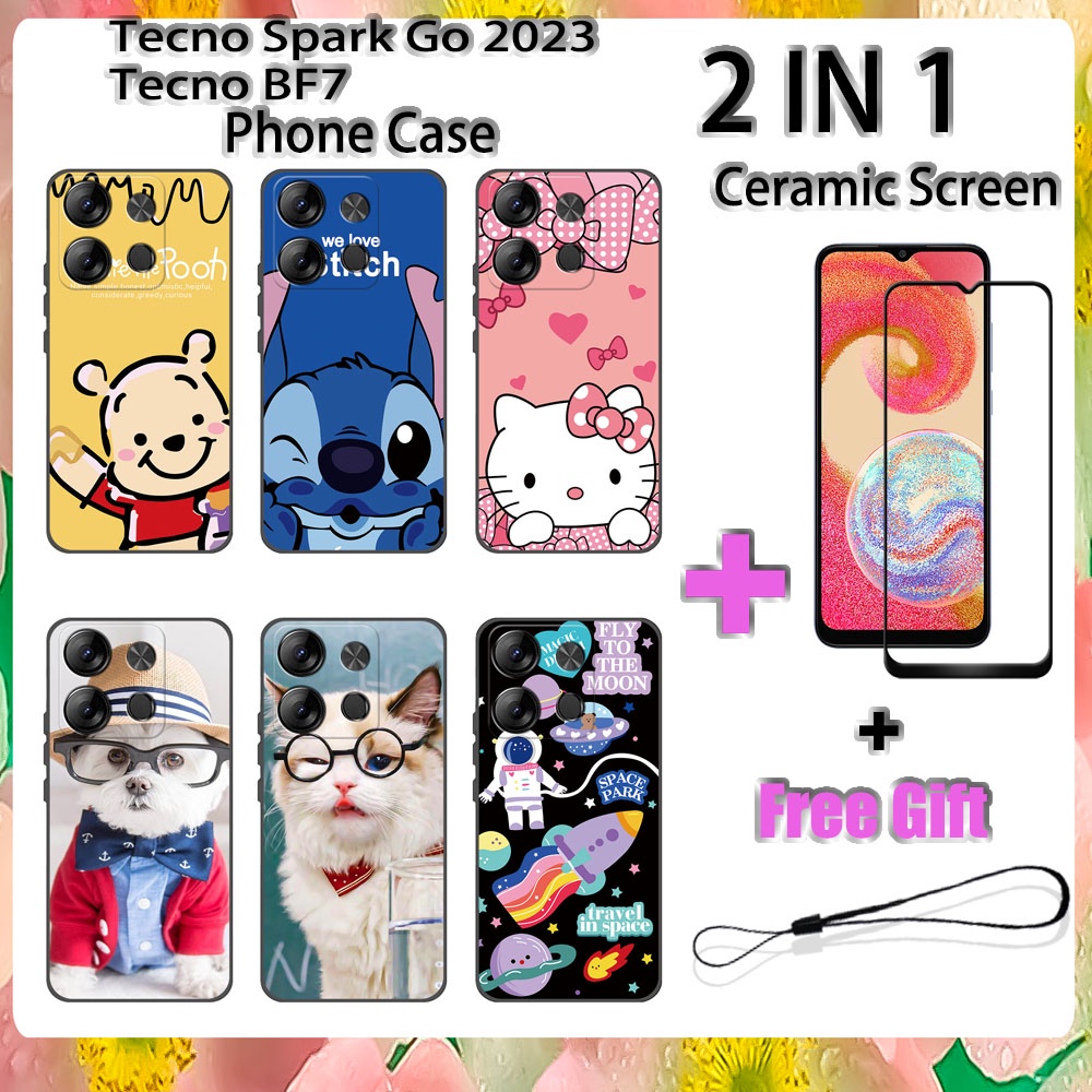 2 IN 1 Tecno Spark Go 2023 BF7 Phone Case with Tempered Glass Ceramic Protector Screen Curved Tempered Film Cartoon
