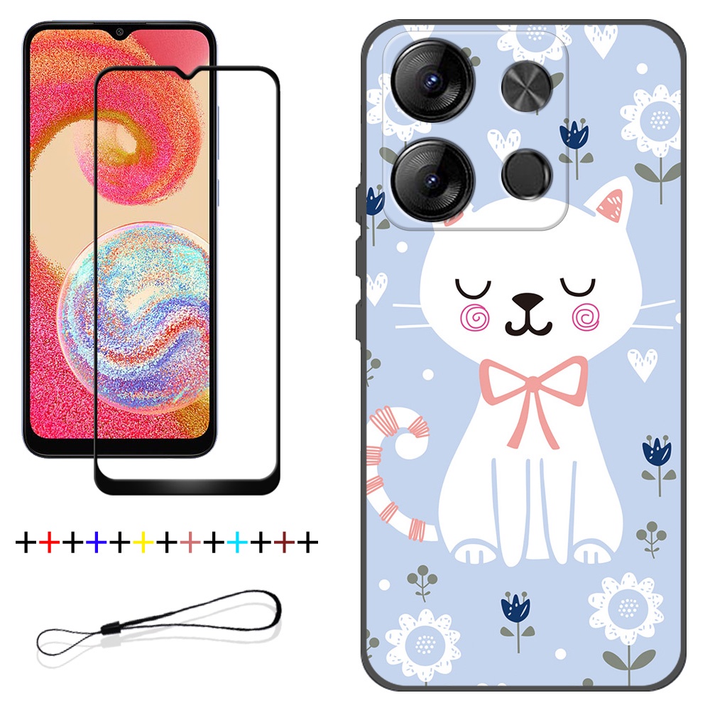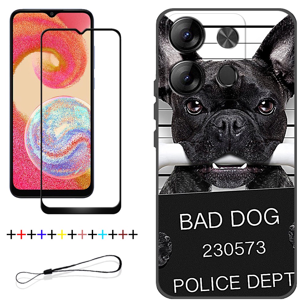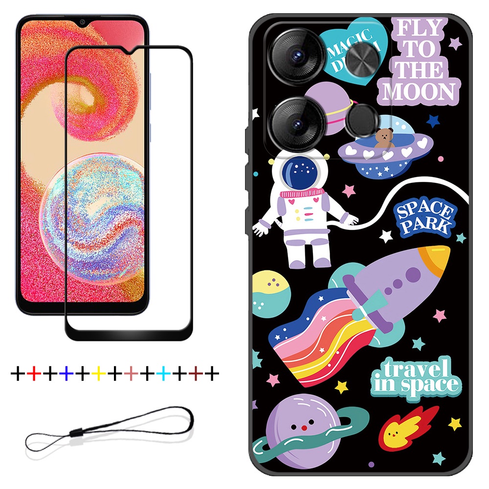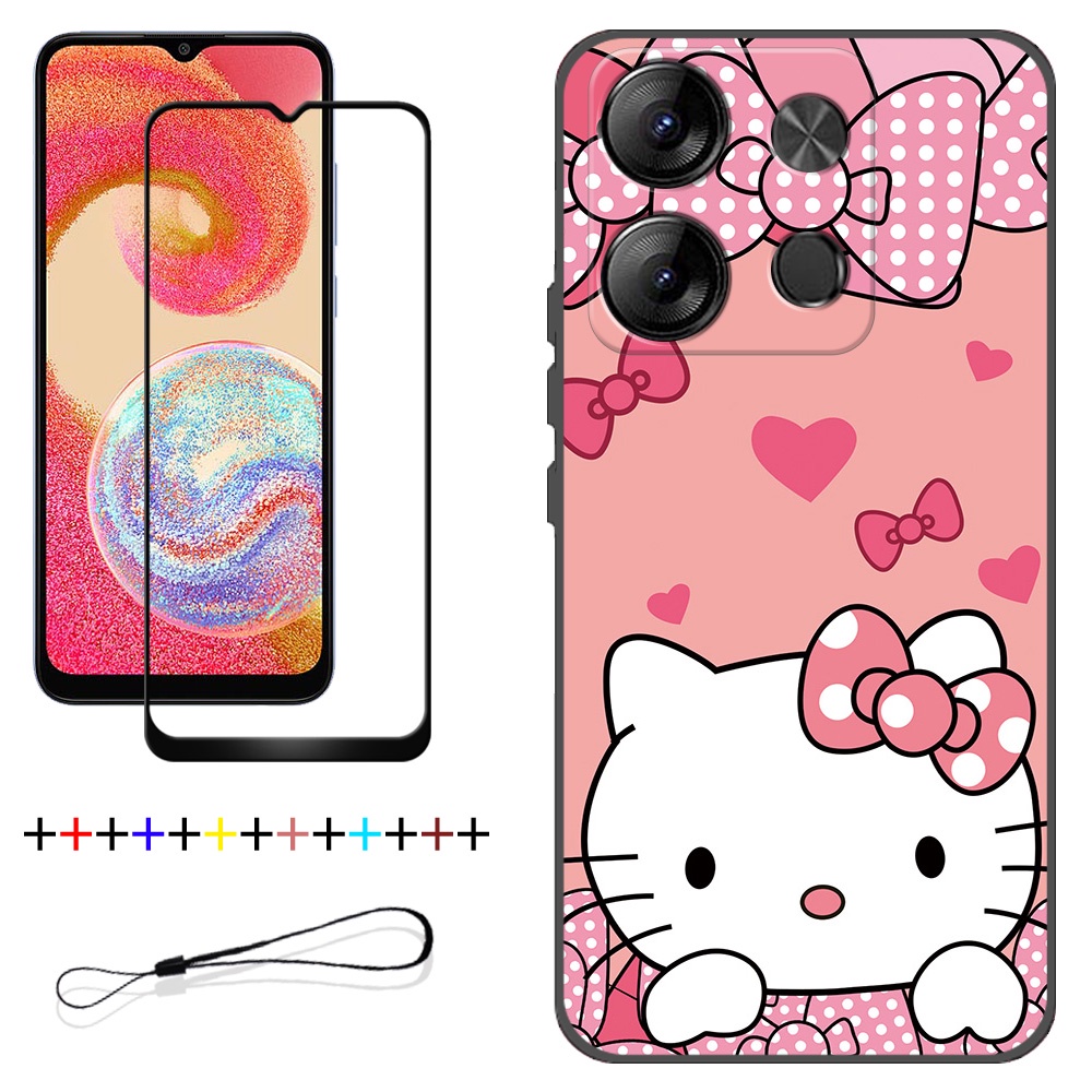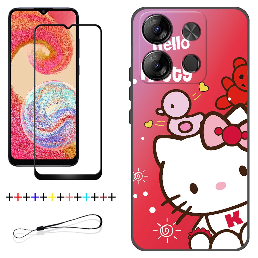 2 IN 1 Tecno Spark Go 2023 BF7 Phone Case with Tempered Glass Ceramic Protector Screen Curved Tempered Film Cartoon
