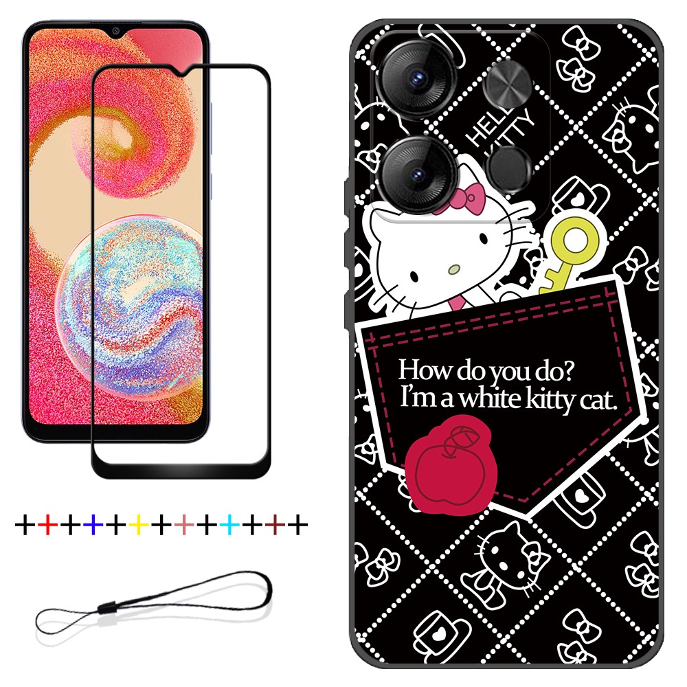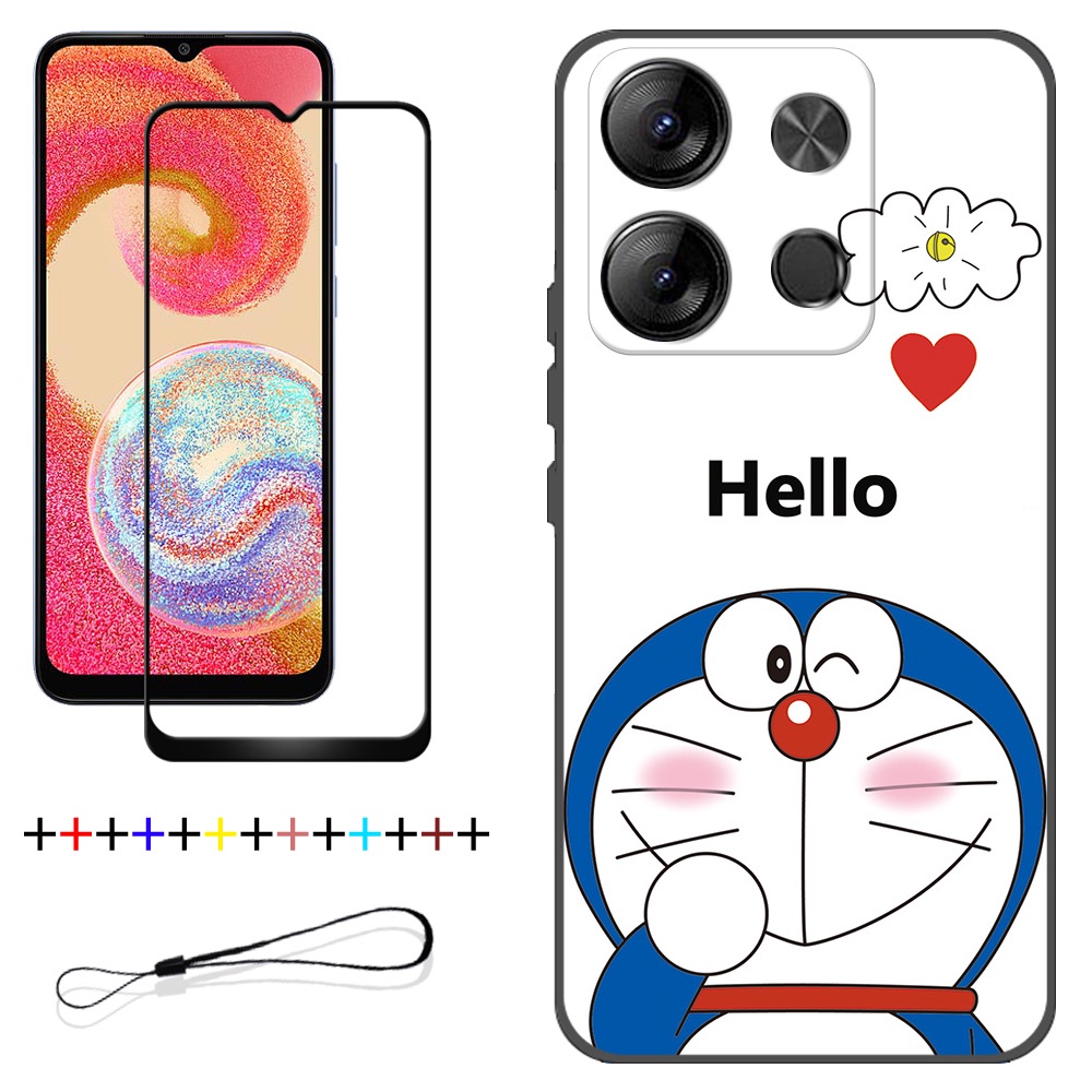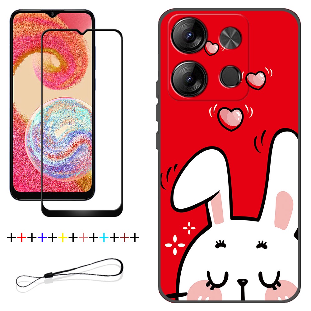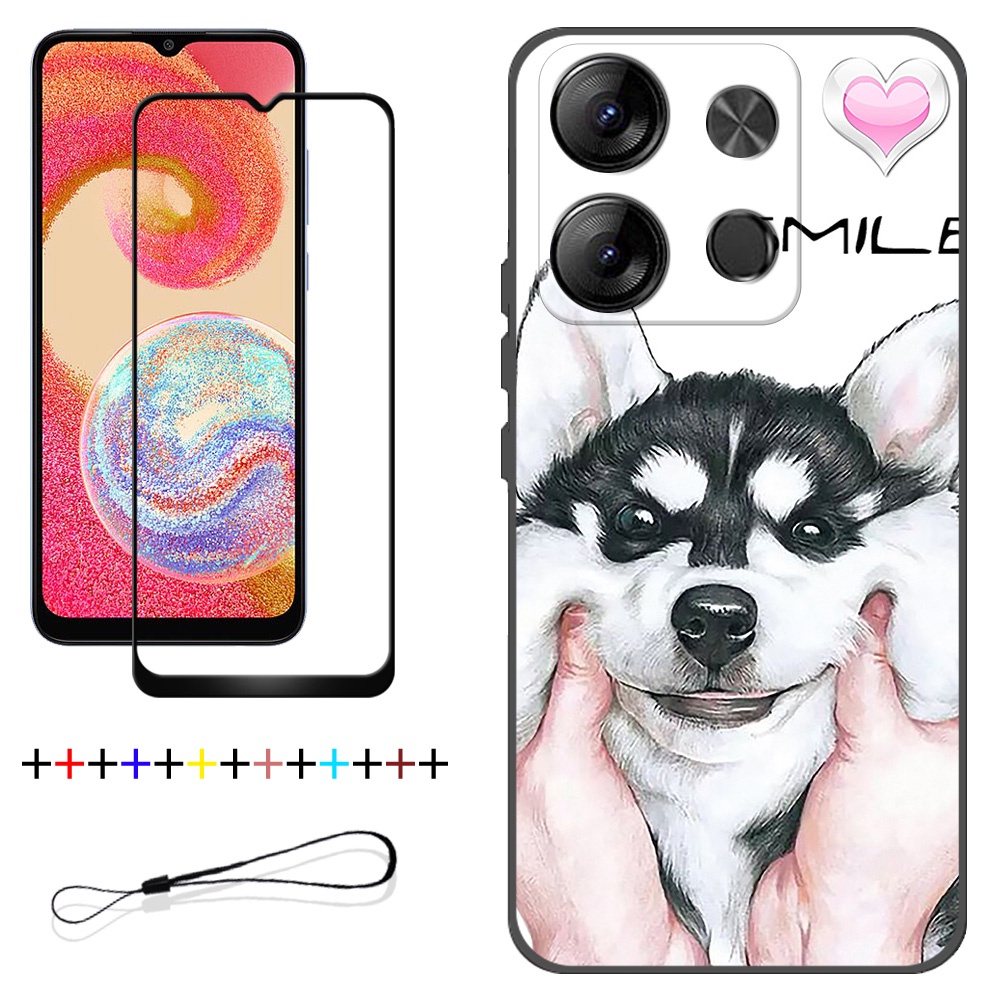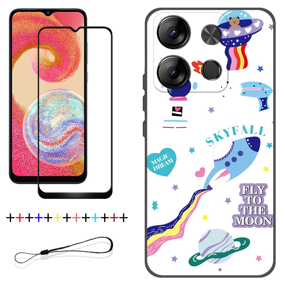 2 IN 1 Tecno Spark Go 2023 BF7 Phone Case with Tempered Glass Ceramic Protector Screen Curved Tempered Film Cartoon