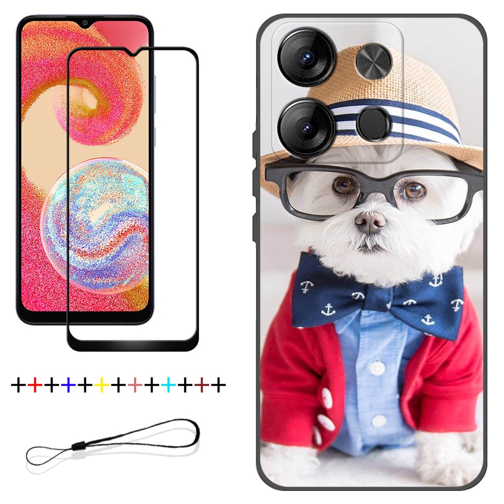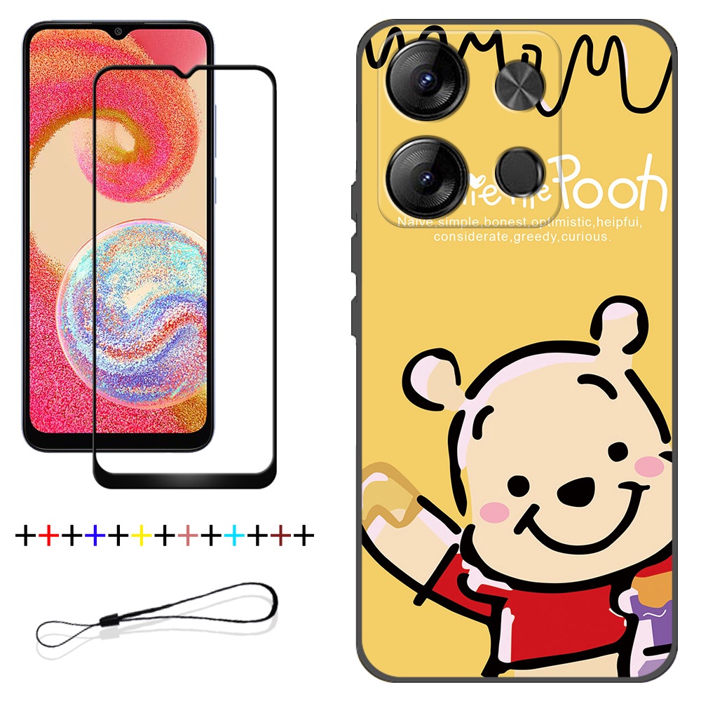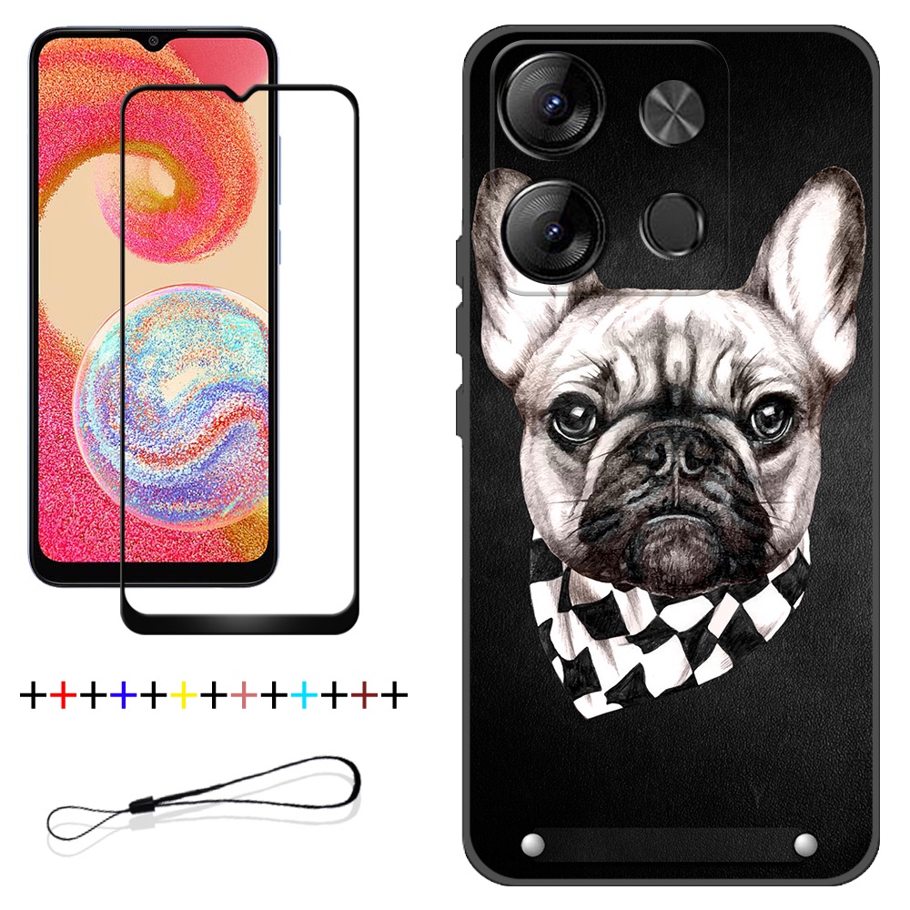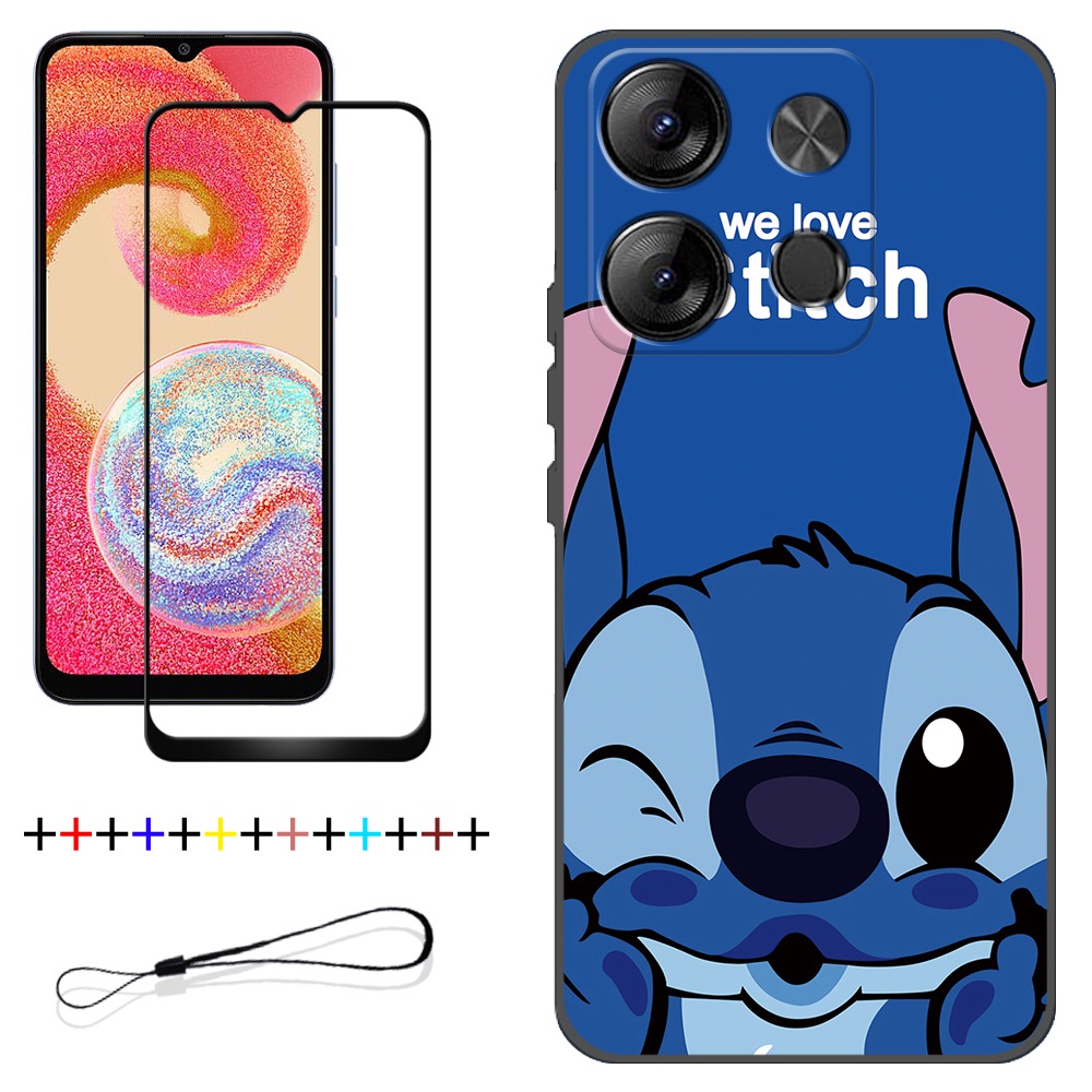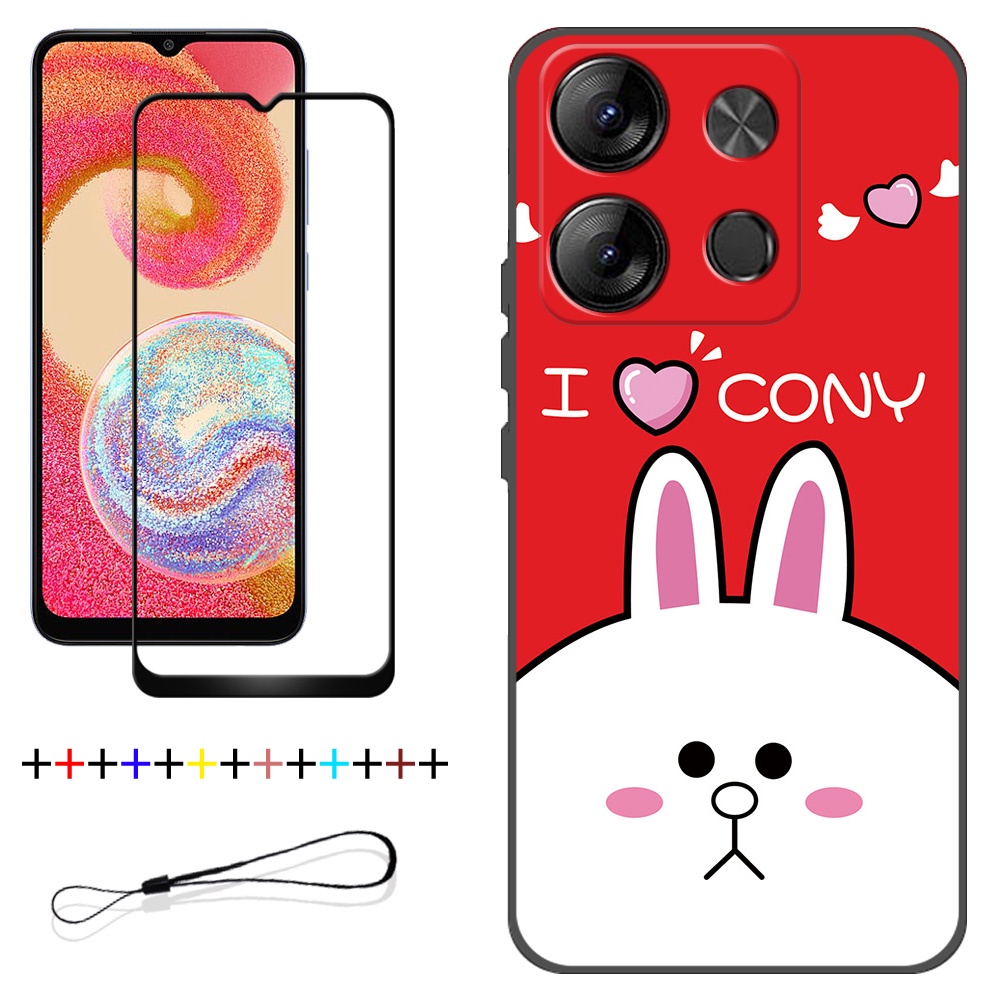 2 IN 1 Tecno Spark Go 2023 BF7 Phone Case with Tempered Glass Ceramic Protector Screen Curved Tempered Film Cartoon
